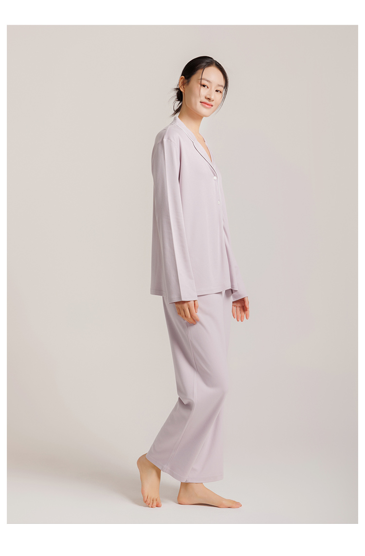 weyo秋季新品女士舒感棉西服领廓形开衫舒适家居服套装睡衣50701 商品图0