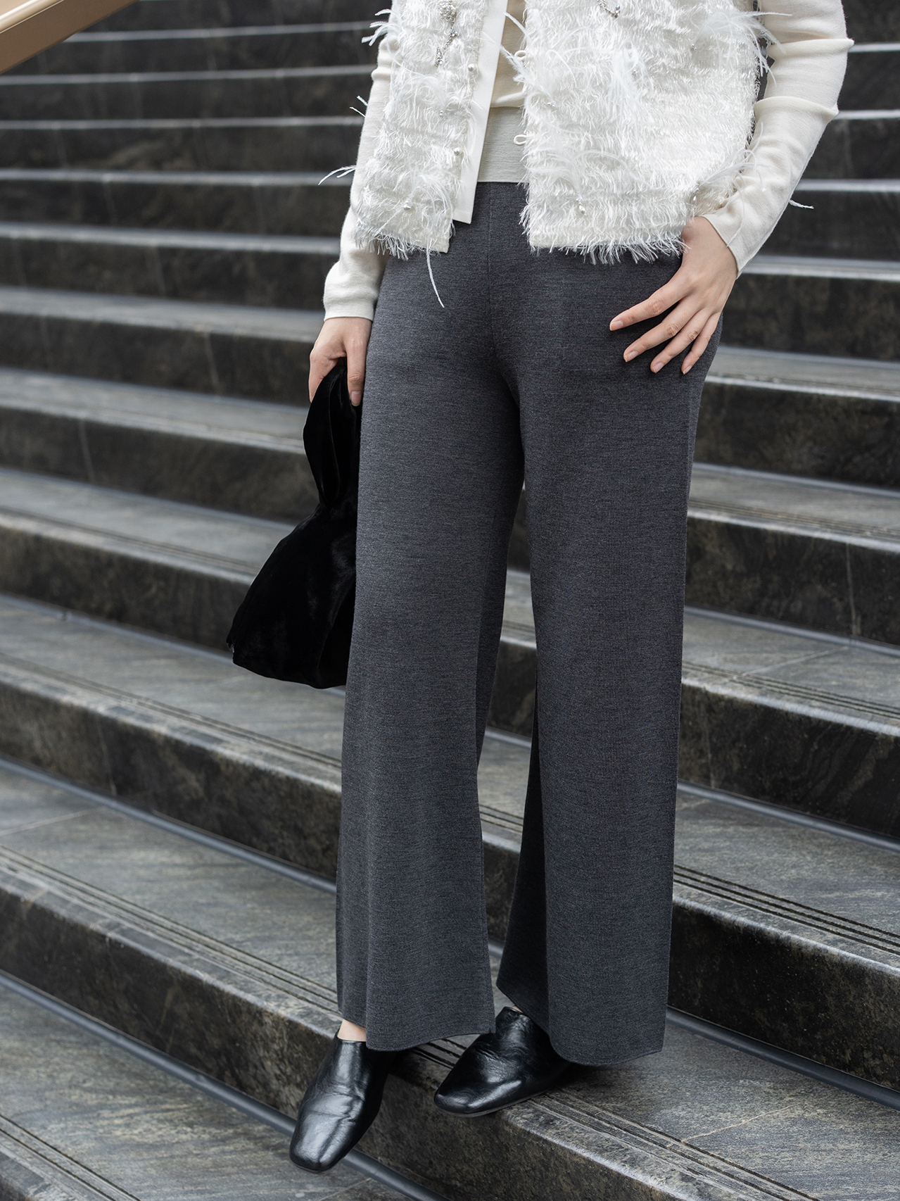 盛唐婧 | 重磅精纺羊毛针织阔腿裤-灰(尺码偏小 拍大一码)