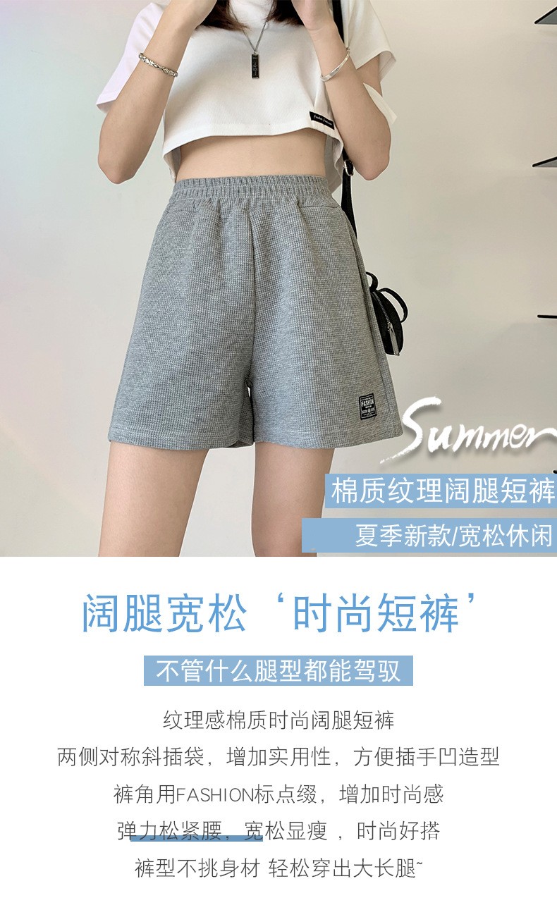 【穿上就是“小妖精”❗️华夫格休闲运动短裤】弹力松紧腰宽松显瘦,时尚感百搭好看,显瘦显高恰当裤长,穿出纤细大长腿,新款夏季女潮显瘦直筒宽松阔腿短裤女粉丝专属
