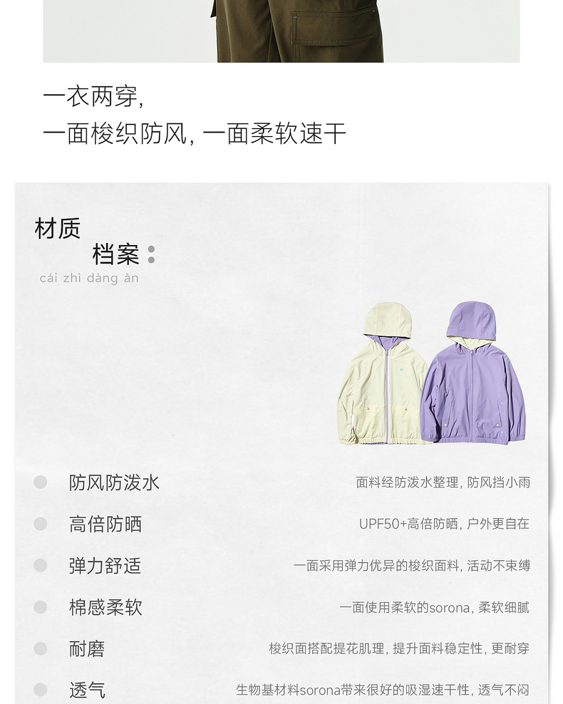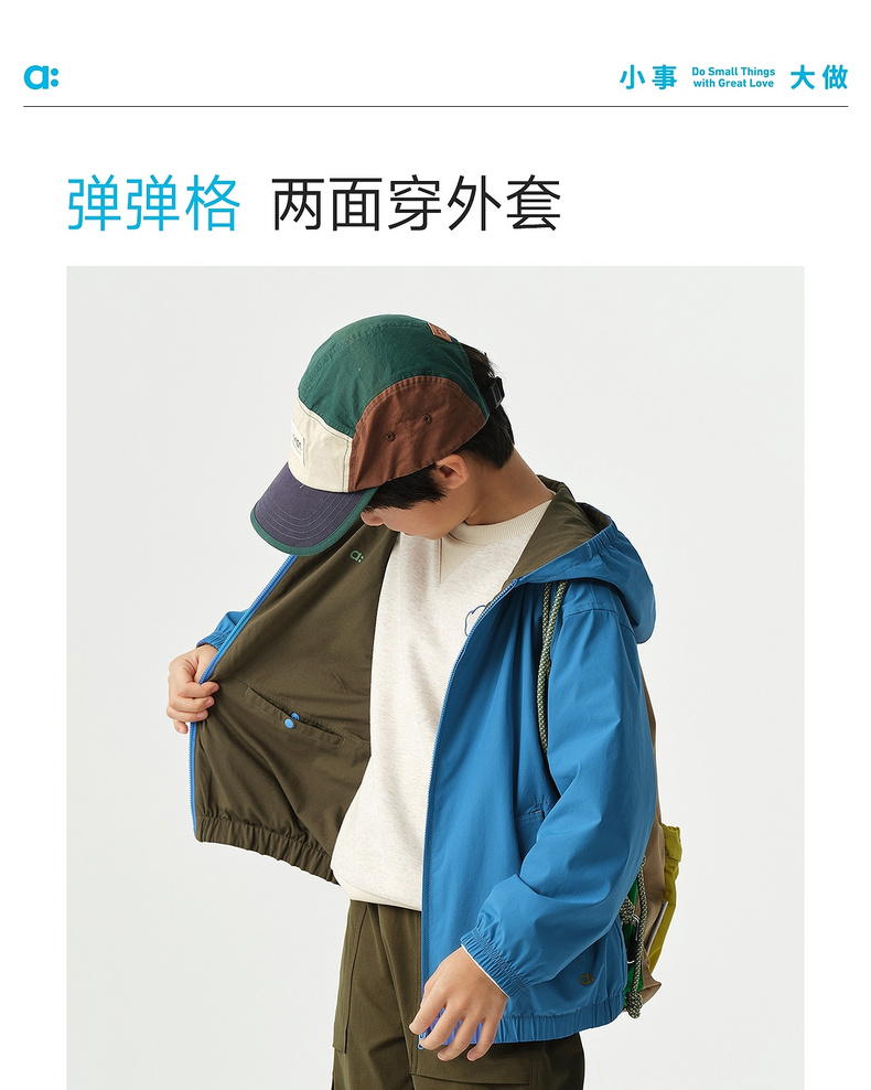 allblu幼岚【弹弹格防泼水两面穿外套】儿童外套26春新品UPF50+