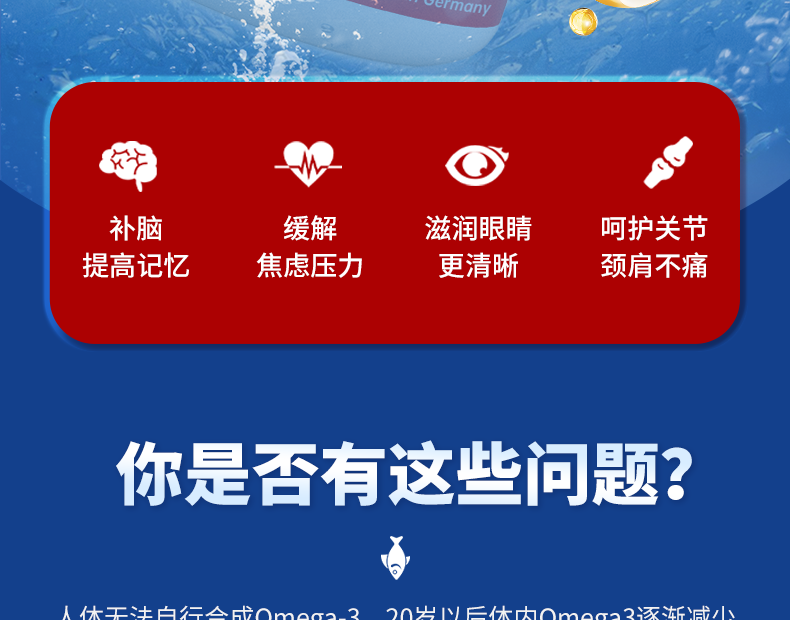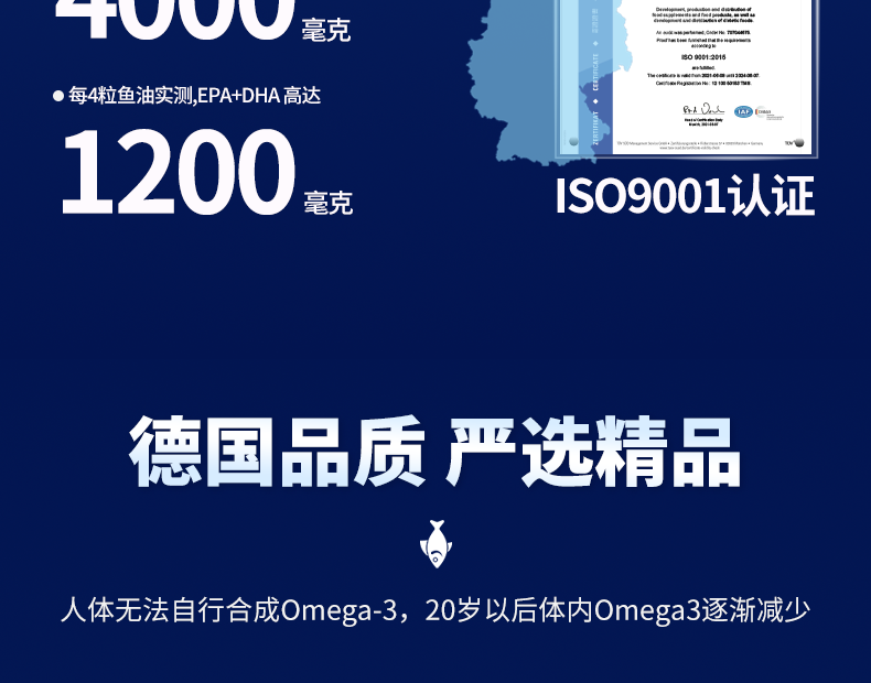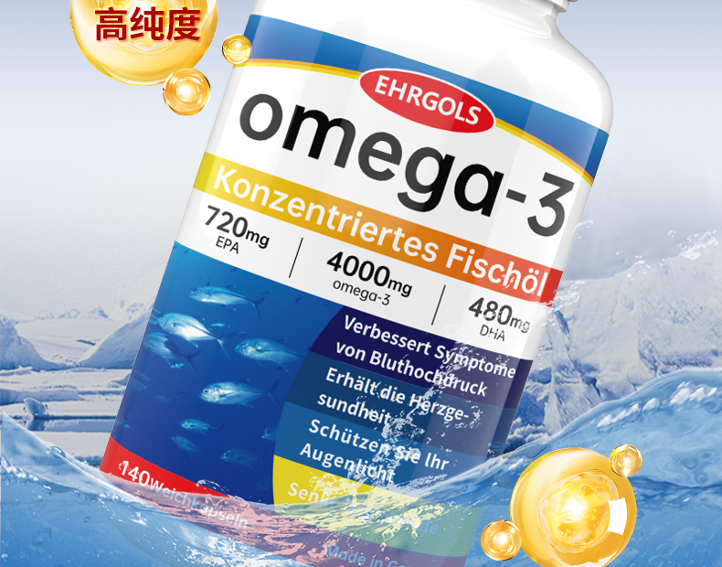 健耐德EHRGOLS高纯度含量omega3深海鱼油欧米伽鱼油软胶囊 140粒