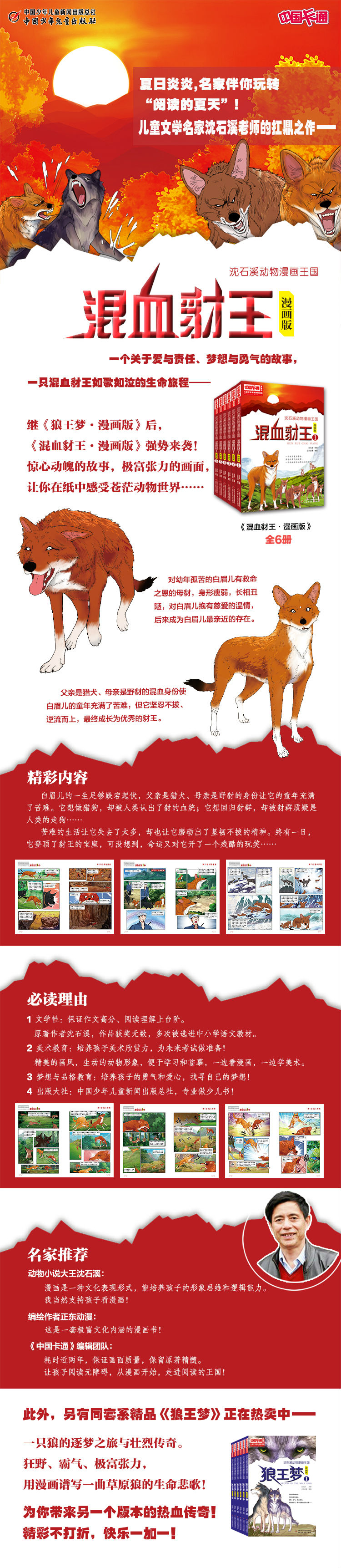 儿童文学名家典藏漫画·沈石溪动物漫画王国——混血豺王6册漫画版 适读年龄6-15岁