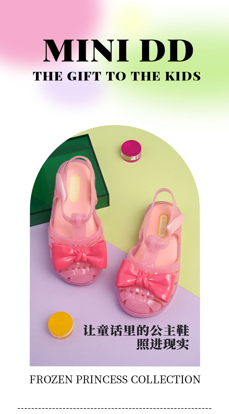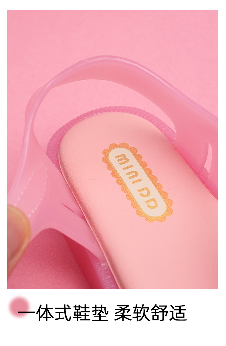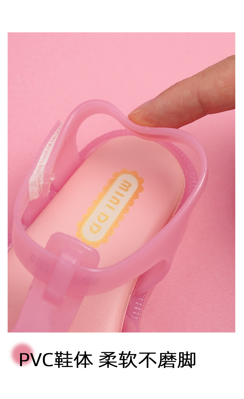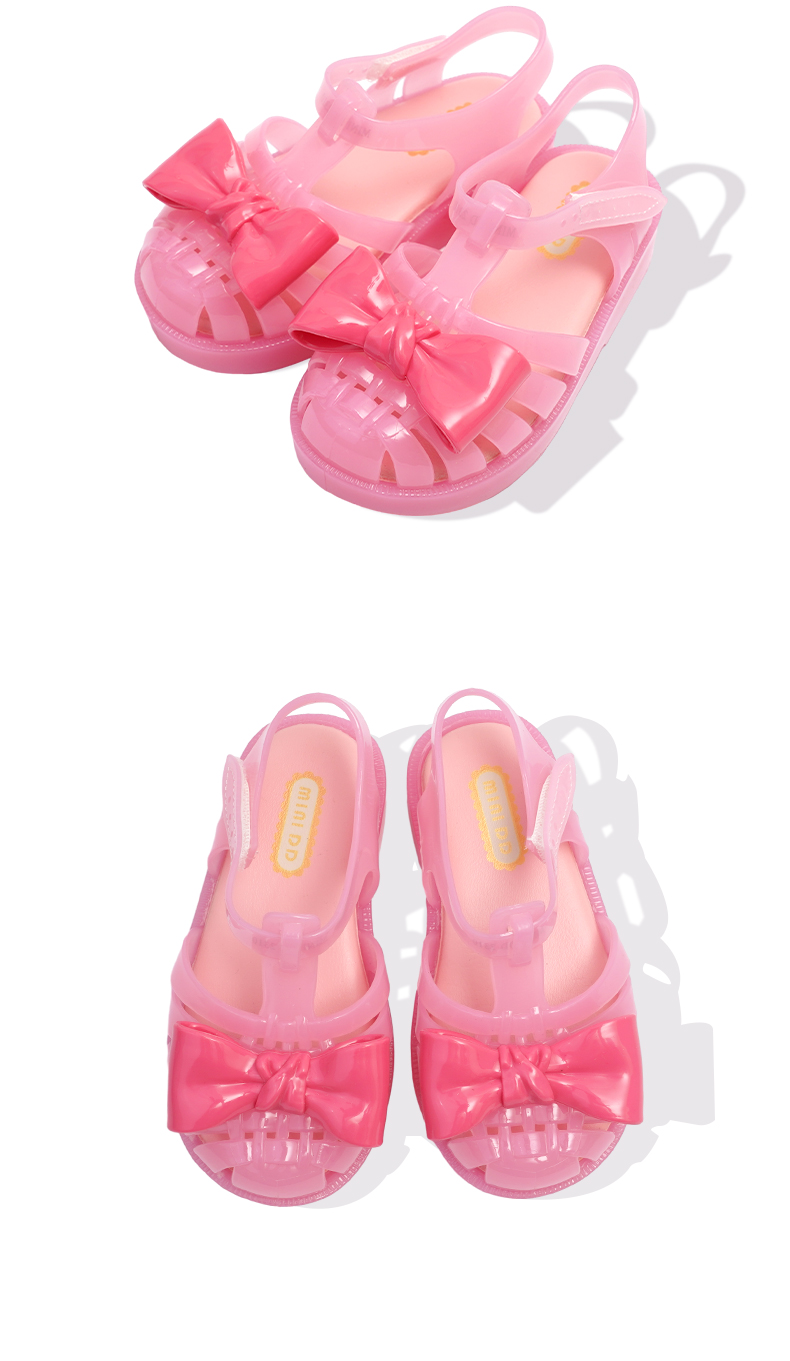 MINIDD儿童猪笼鞋魔术贴女童沙滩凉鞋粉色蝴蝶结罗马鞋MNDD24-10