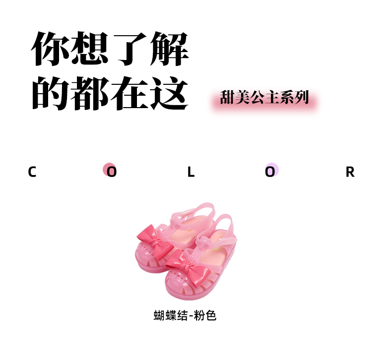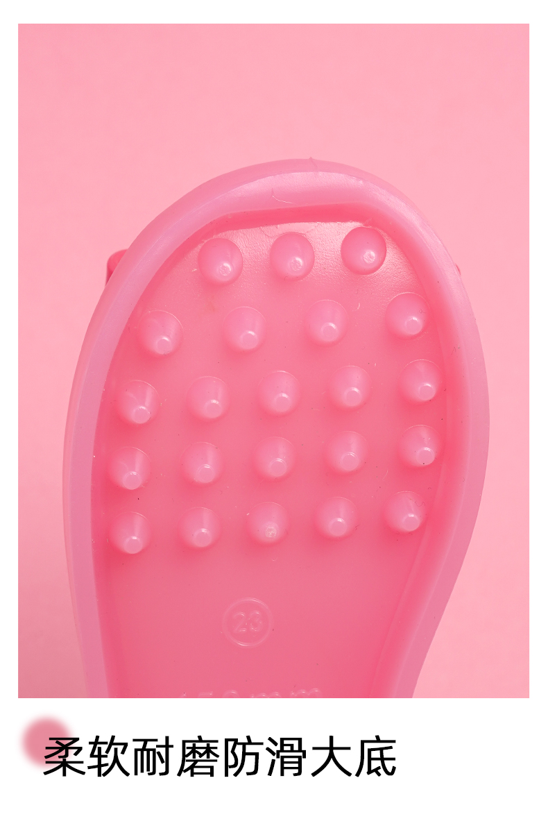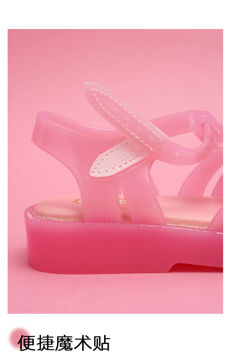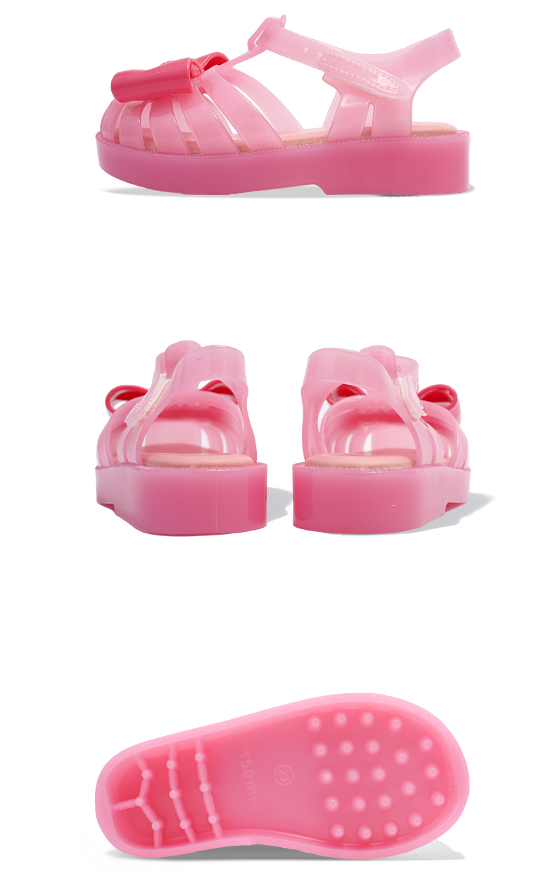 MINIDD儿童猪笼鞋魔术贴女童沙滩凉鞋粉色蝴蝶结罗马鞋MNDD24-10