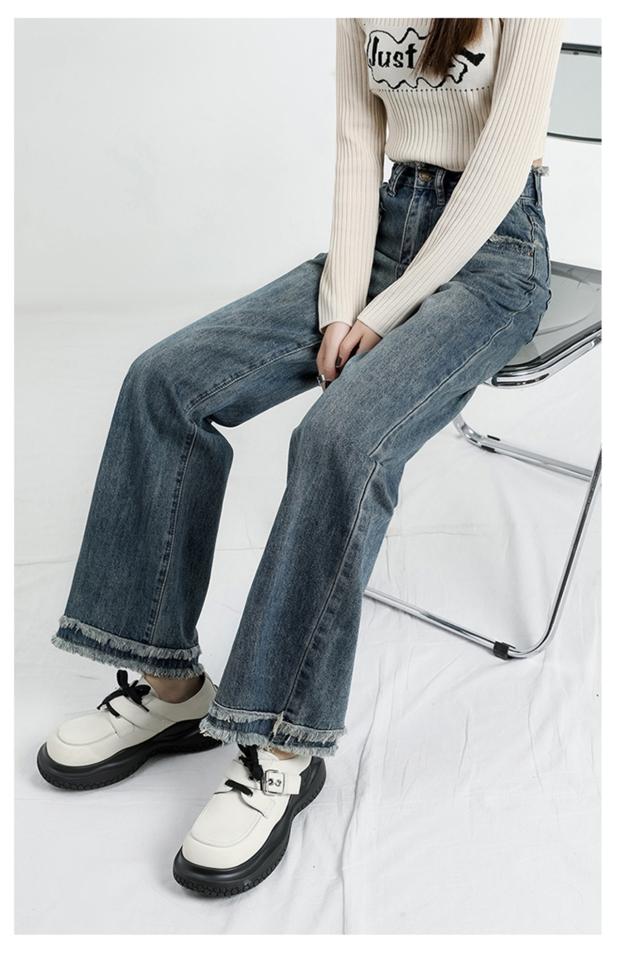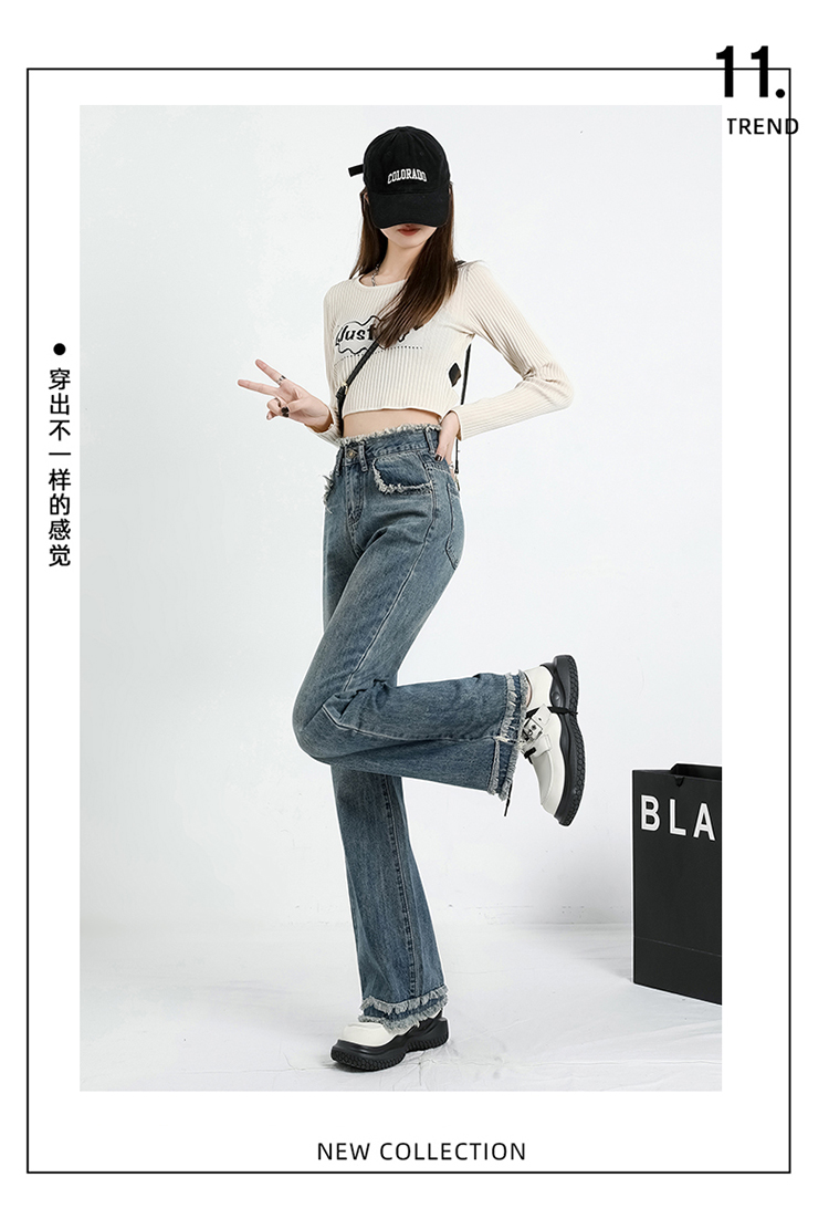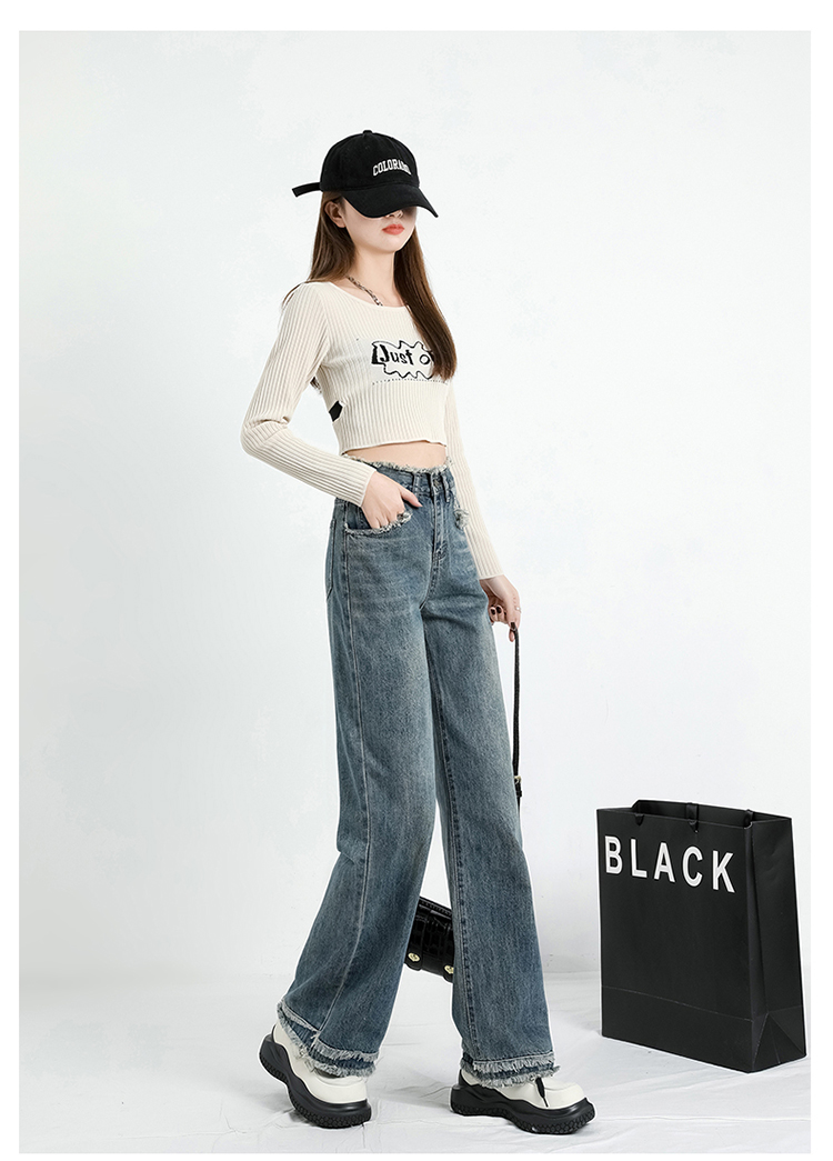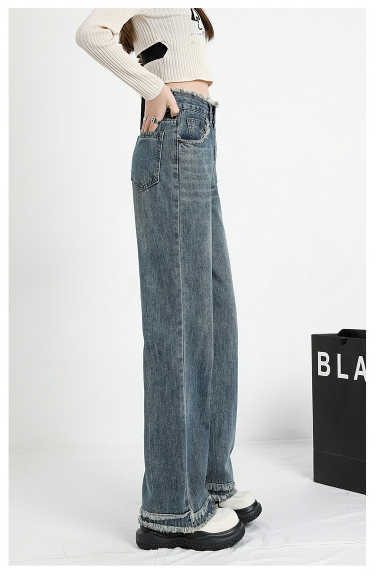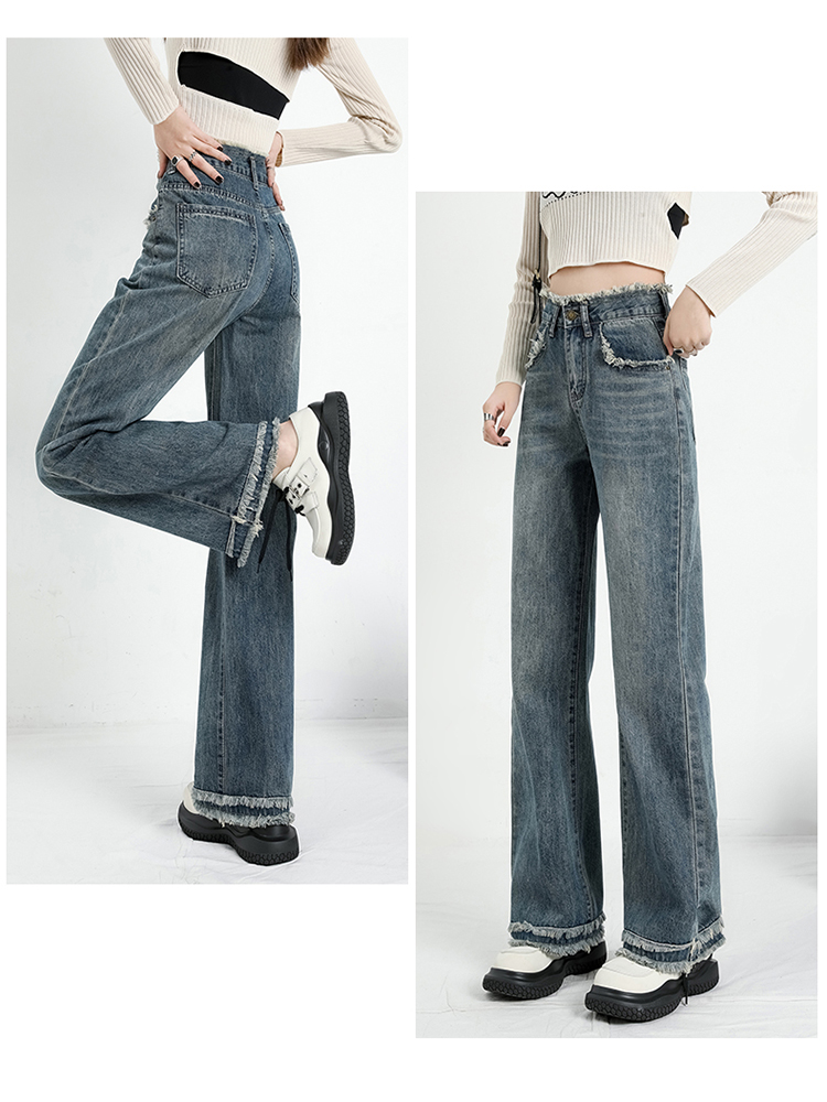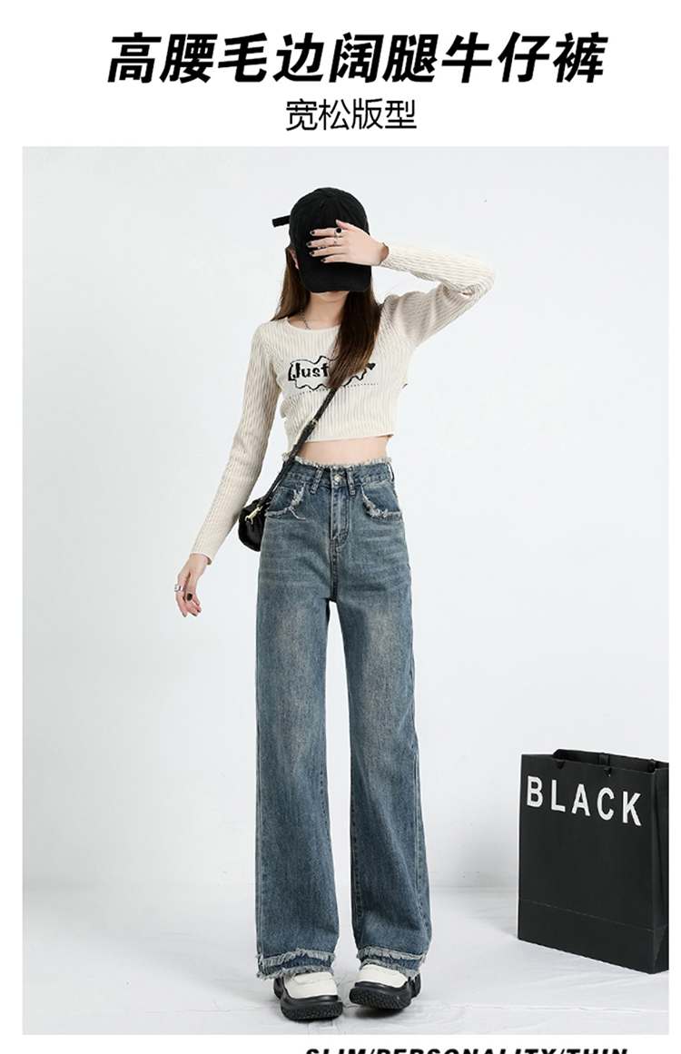 【复古烟管直筒牛仔裤】春秋款翻边高腰设计女 直筒宽松版型 显瘦显高牛仔长裤
