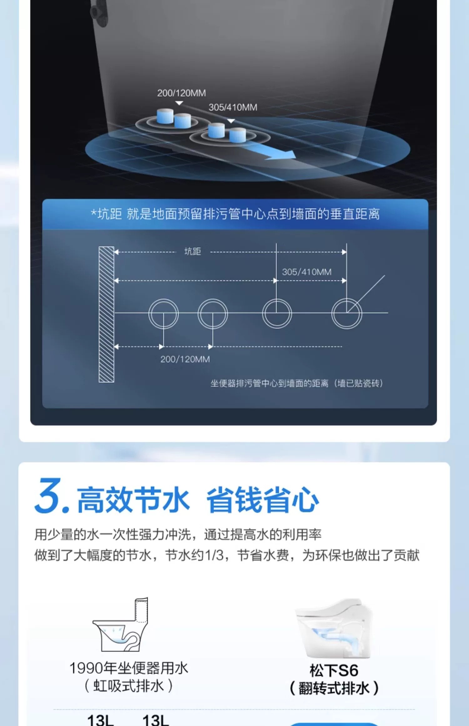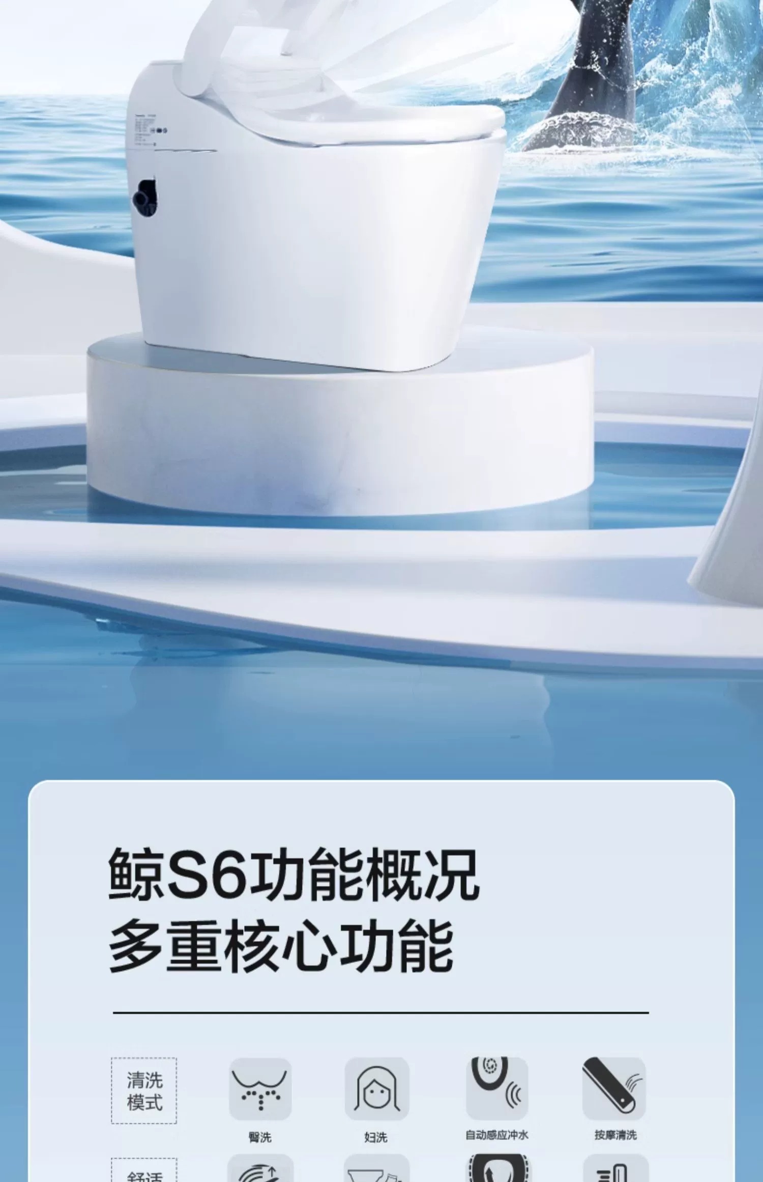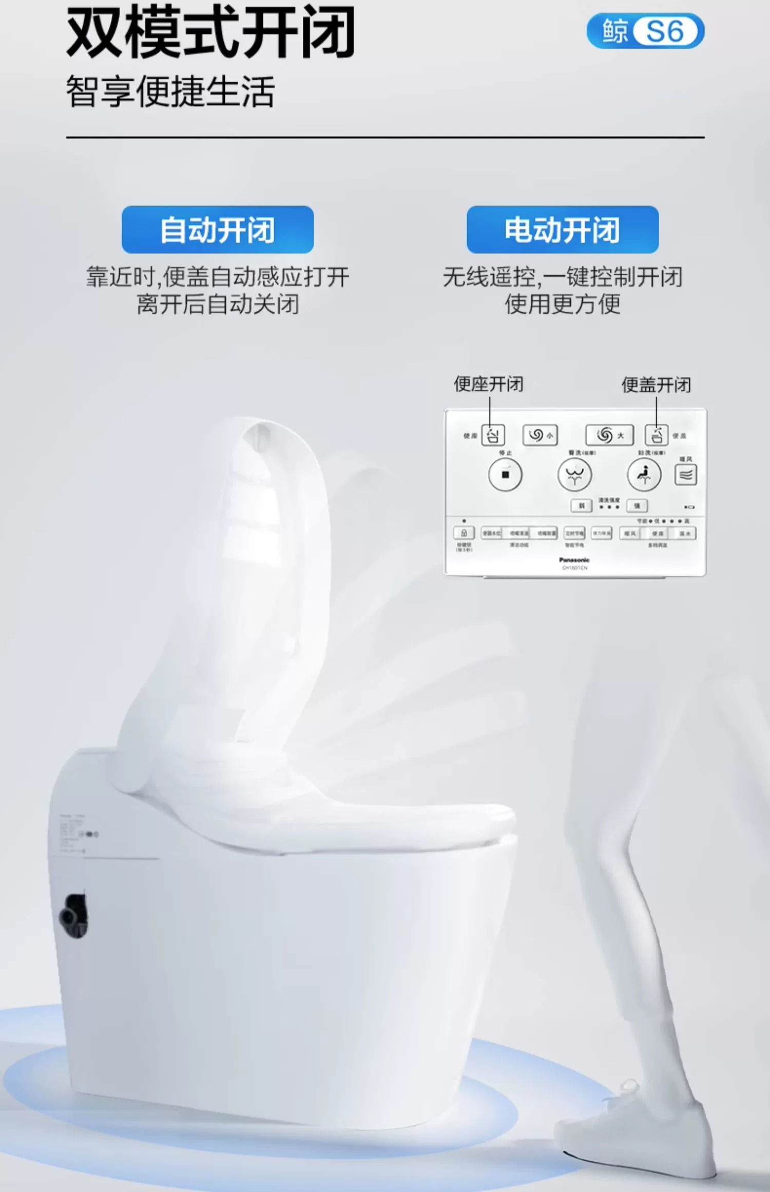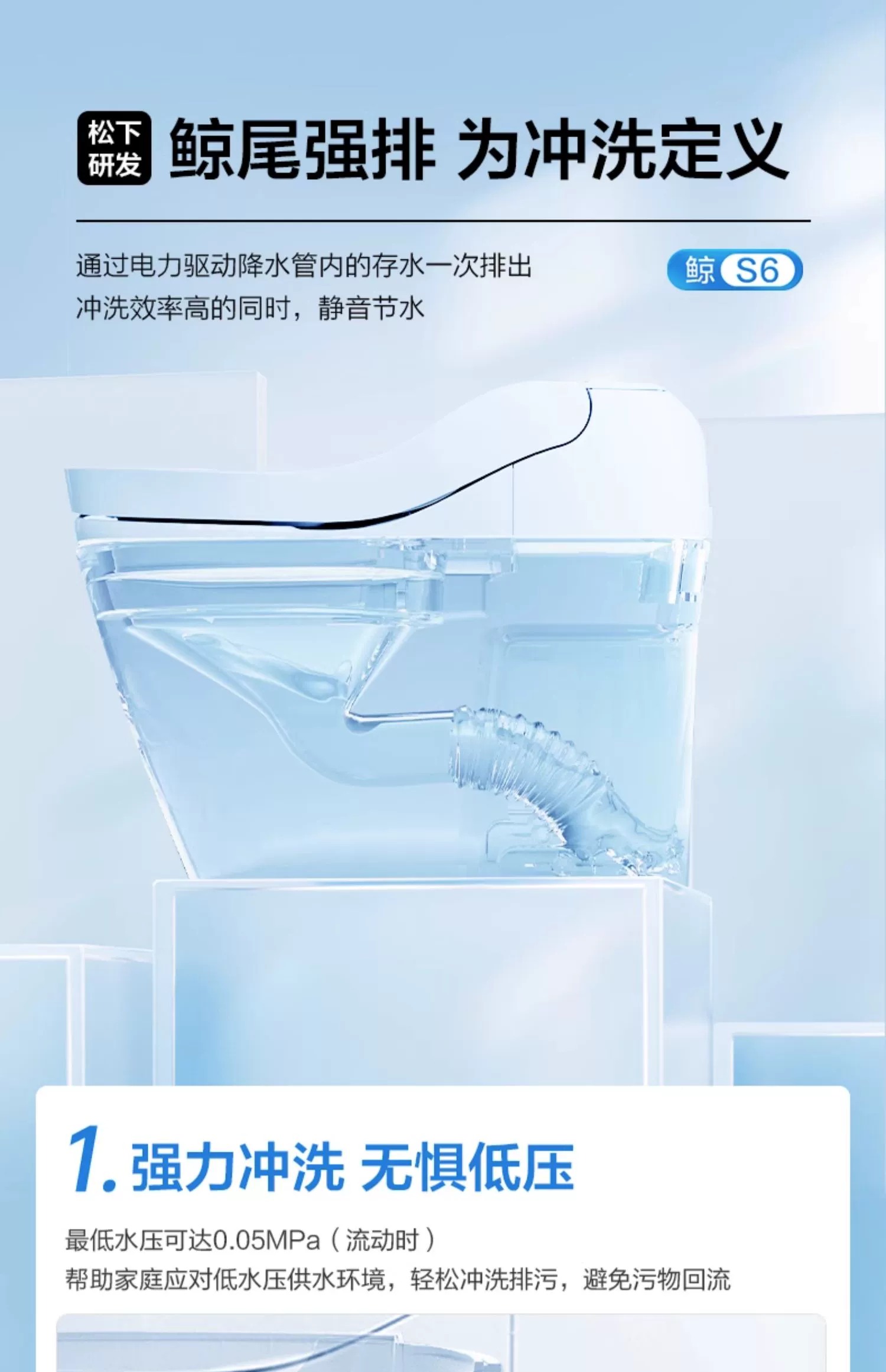 松下智能马桶一体机智能坐便器多功能泡沫盾洁净低水压翻转排水 鲸S6