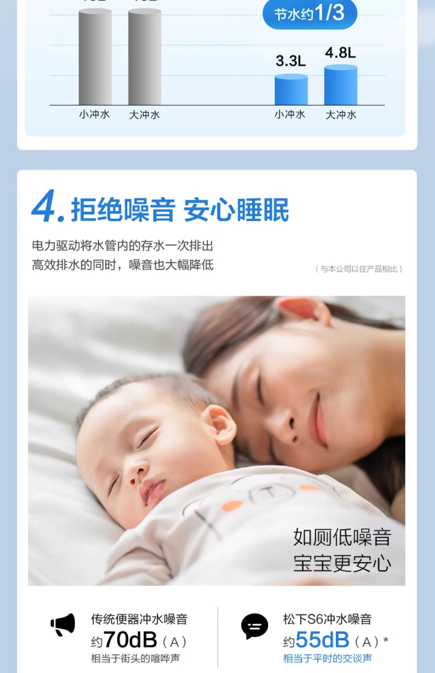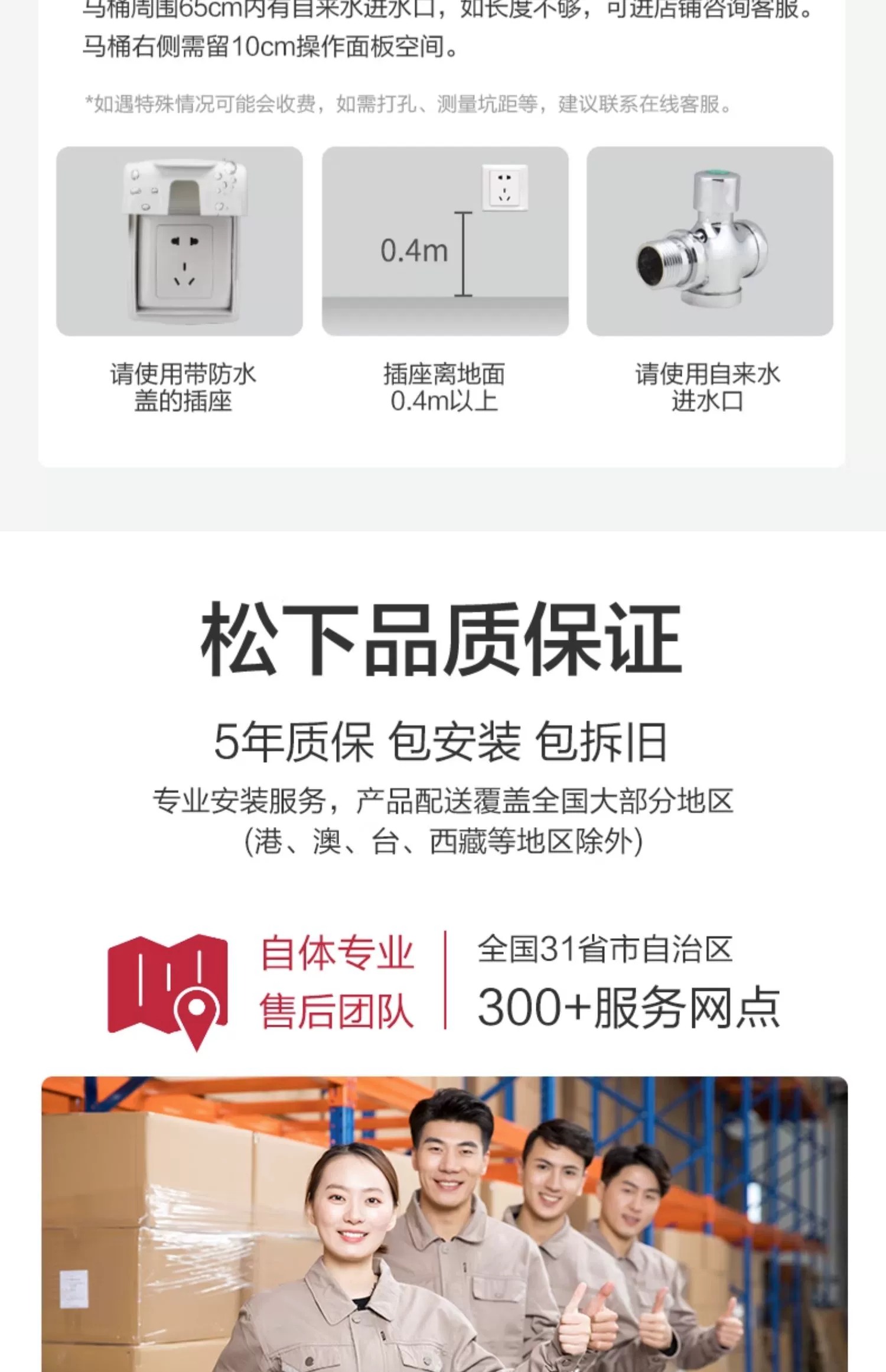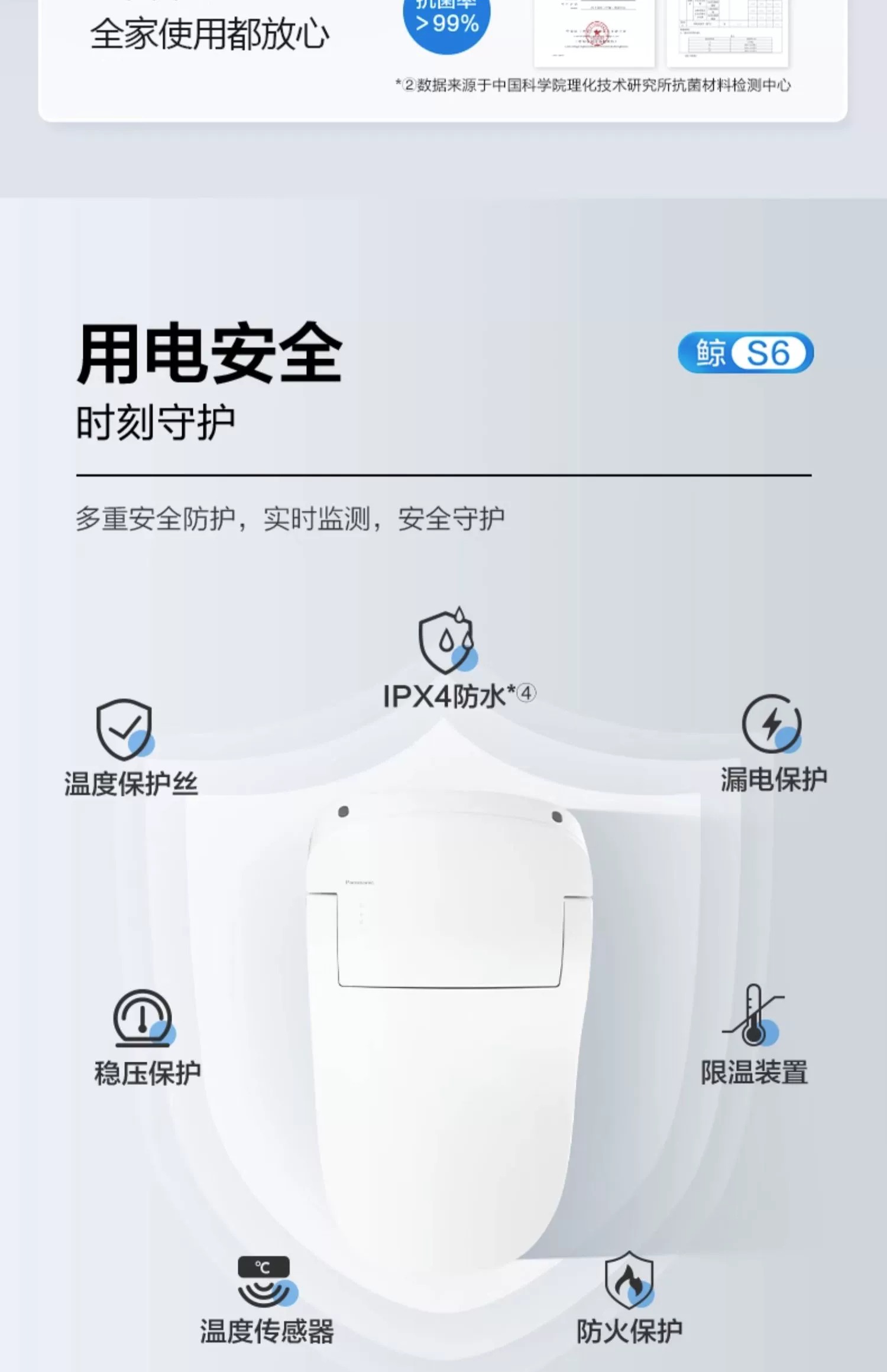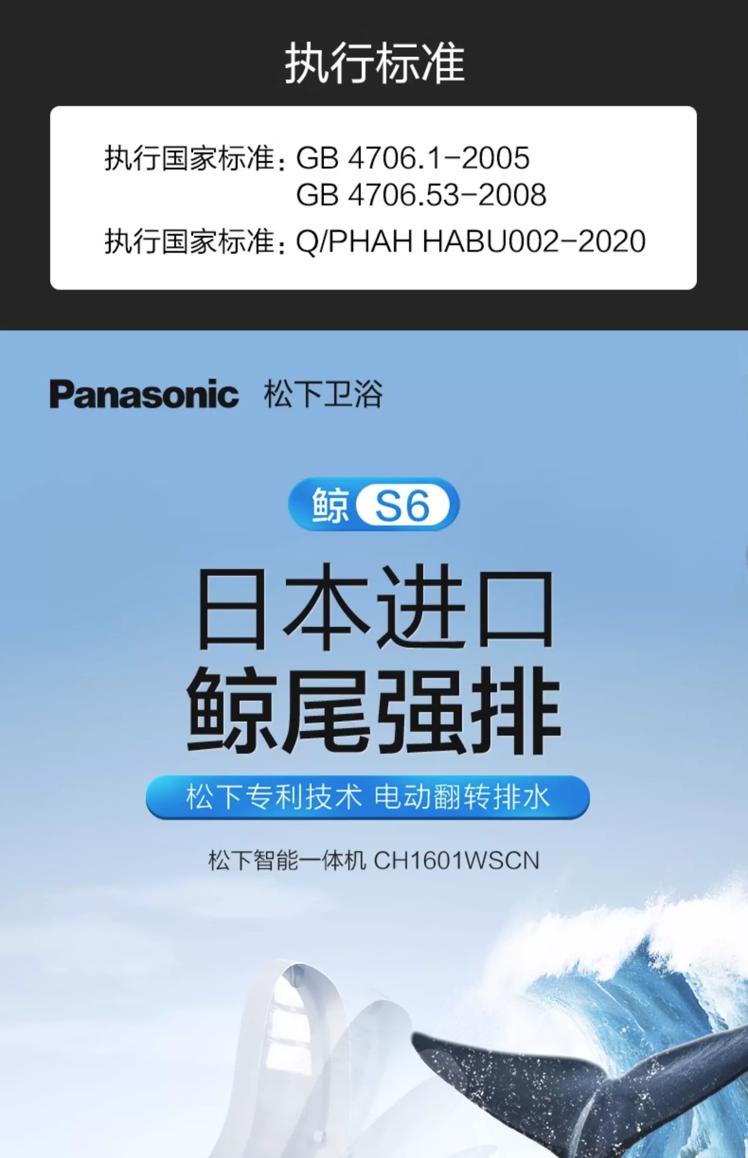 松下智能马桶一体机智能坐便器多功能泡沫盾洁净低水压翻转排水 鲸S6