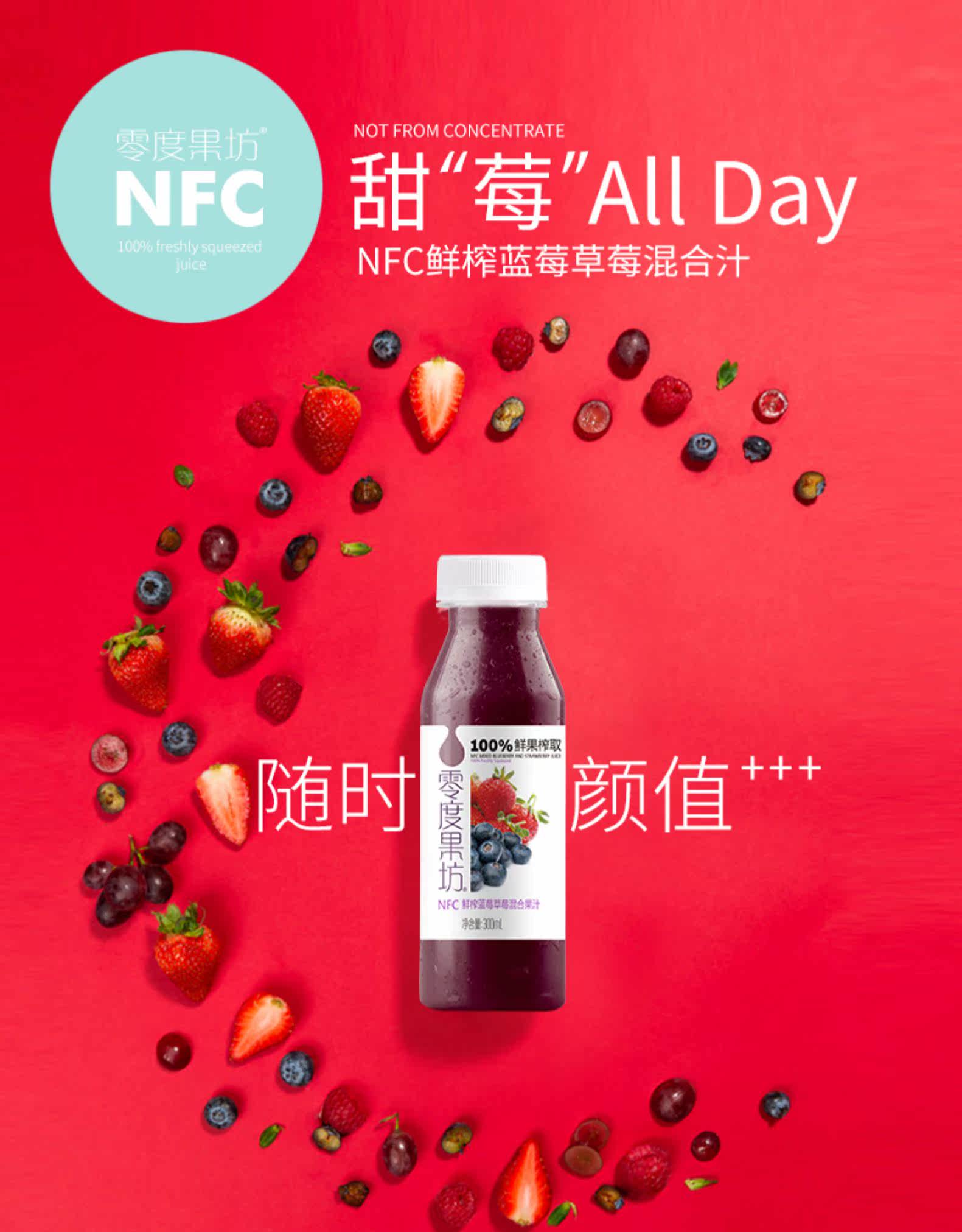 【BF】零度果坊NFC鲜榨蓝莓草莓混合果汁300ml
