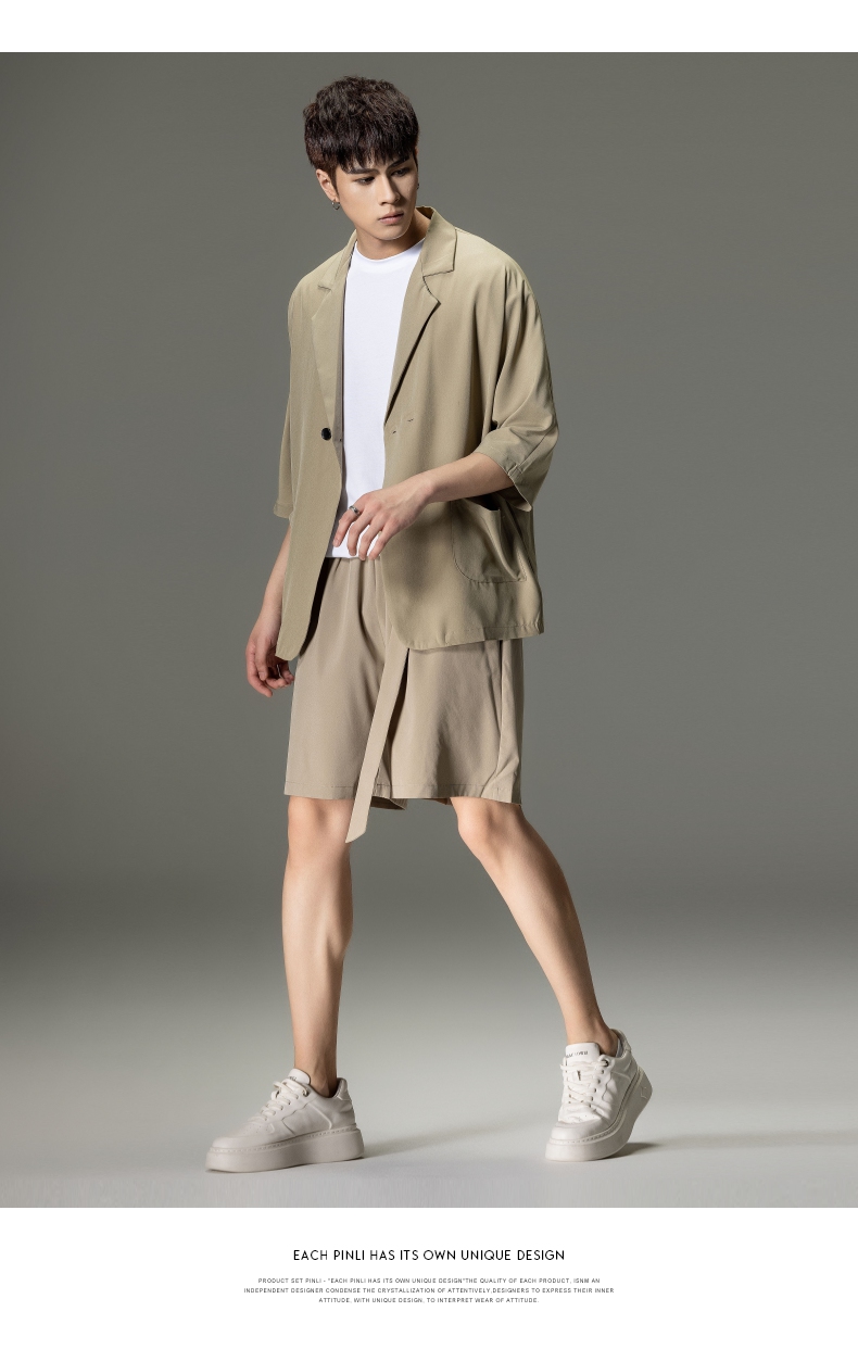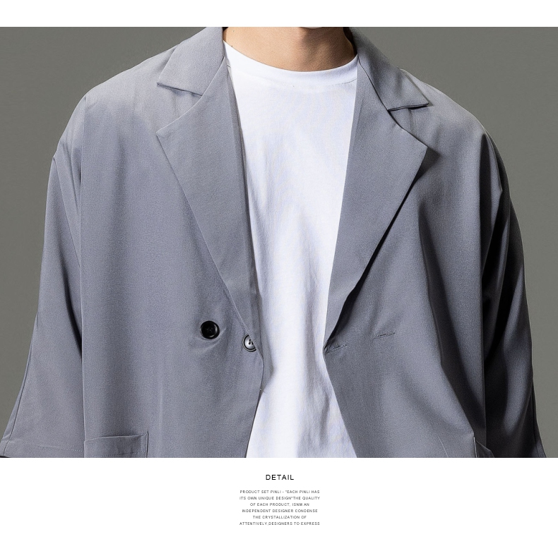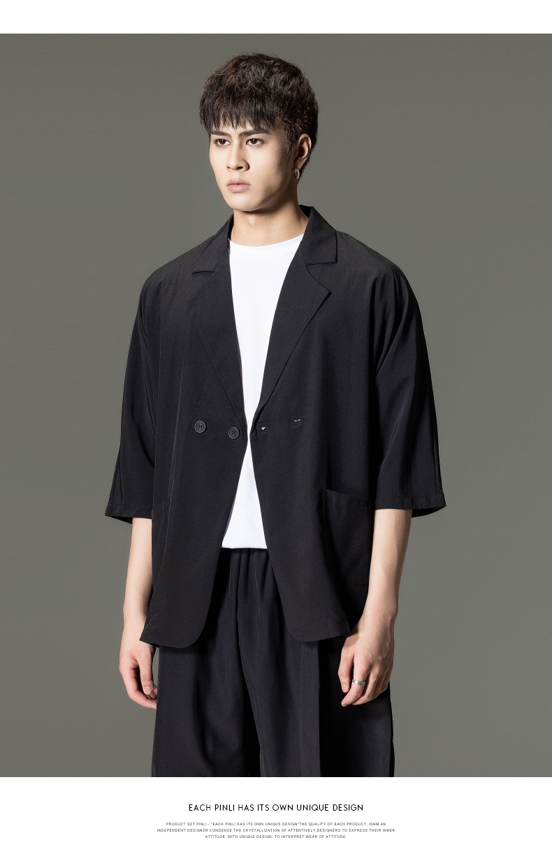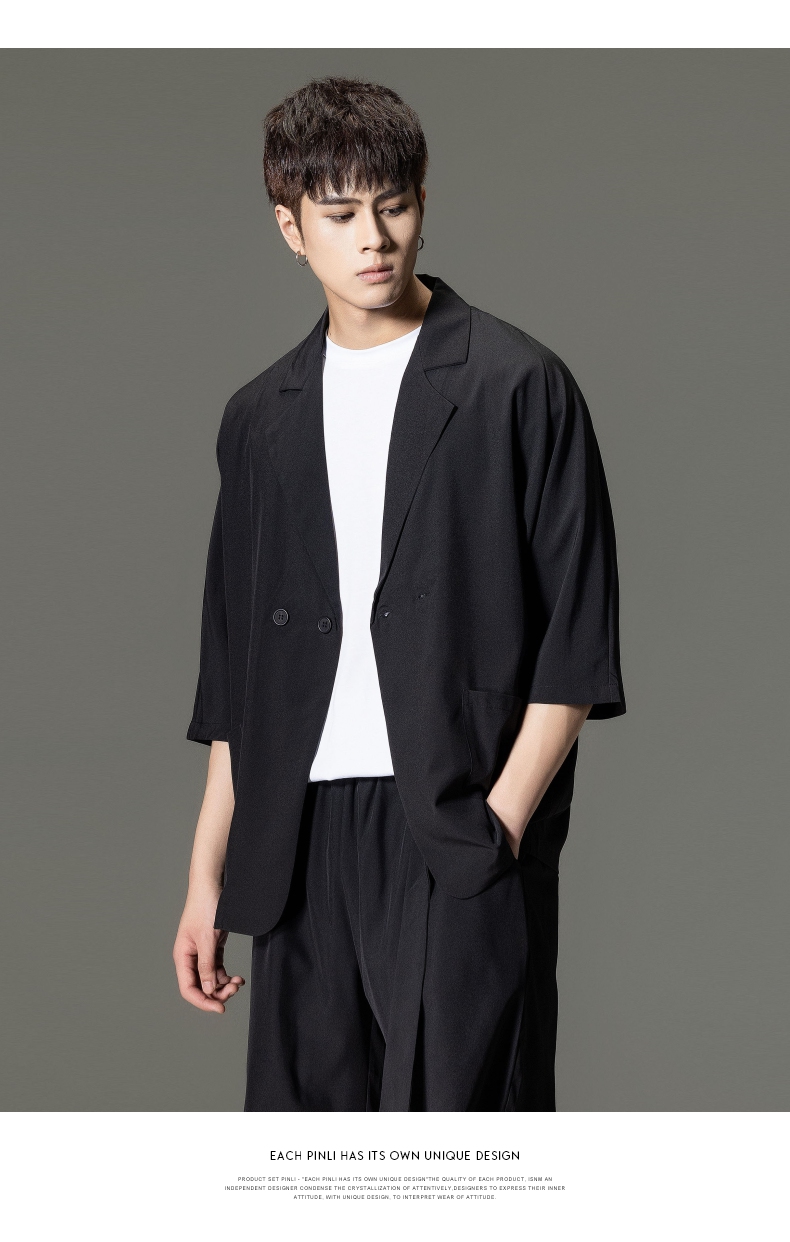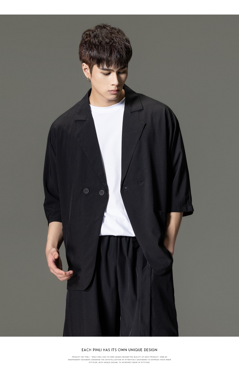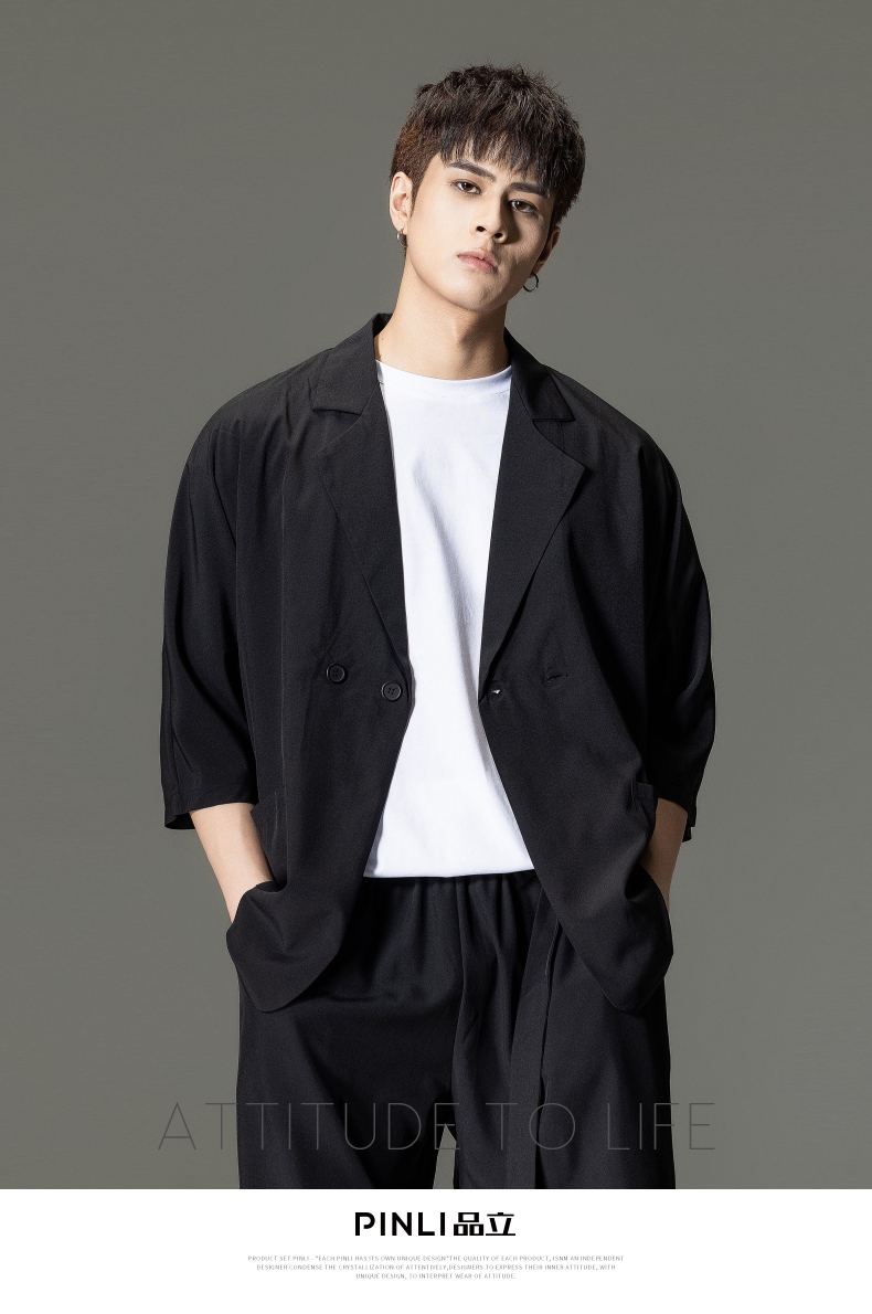 PINLI品立男装夏季薄款宽松七分袖小西装ins西服外套凉感防晒服潮B203106331