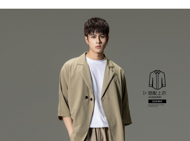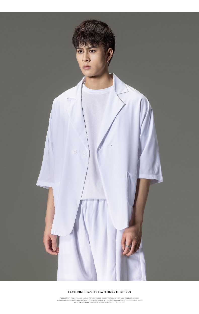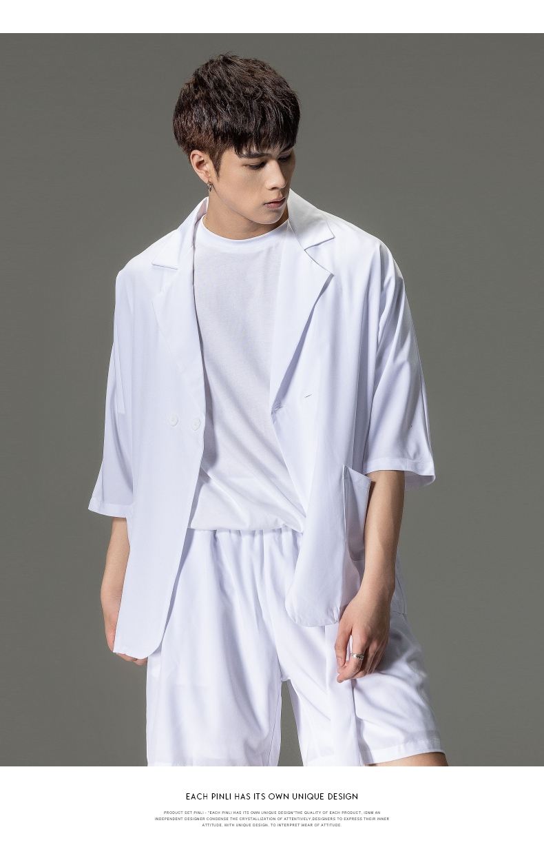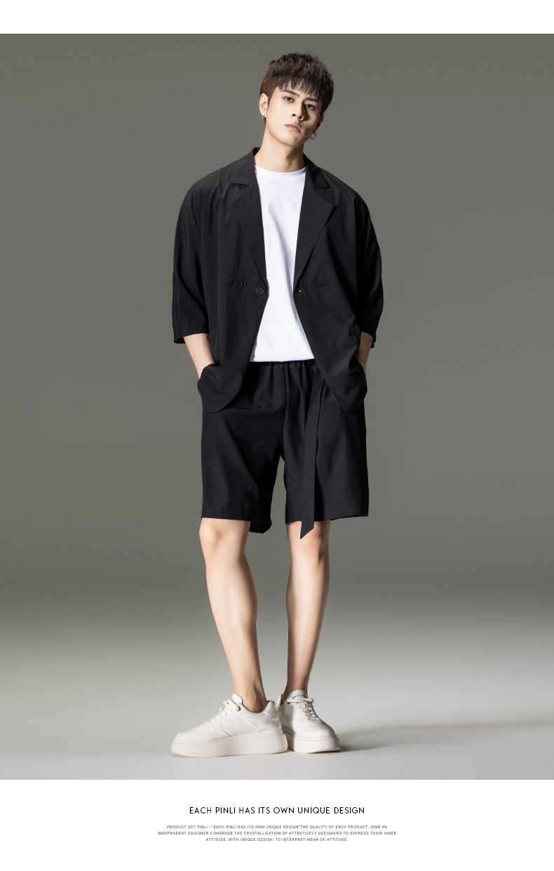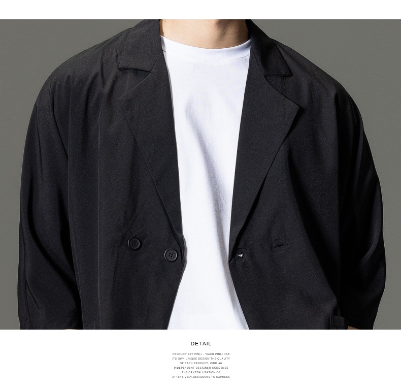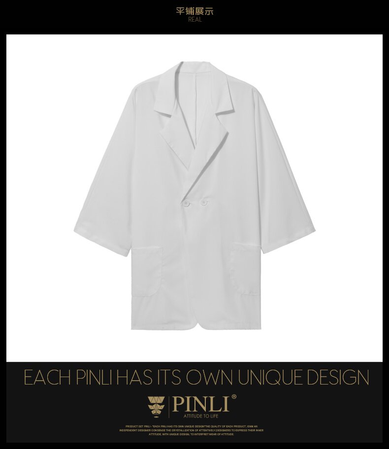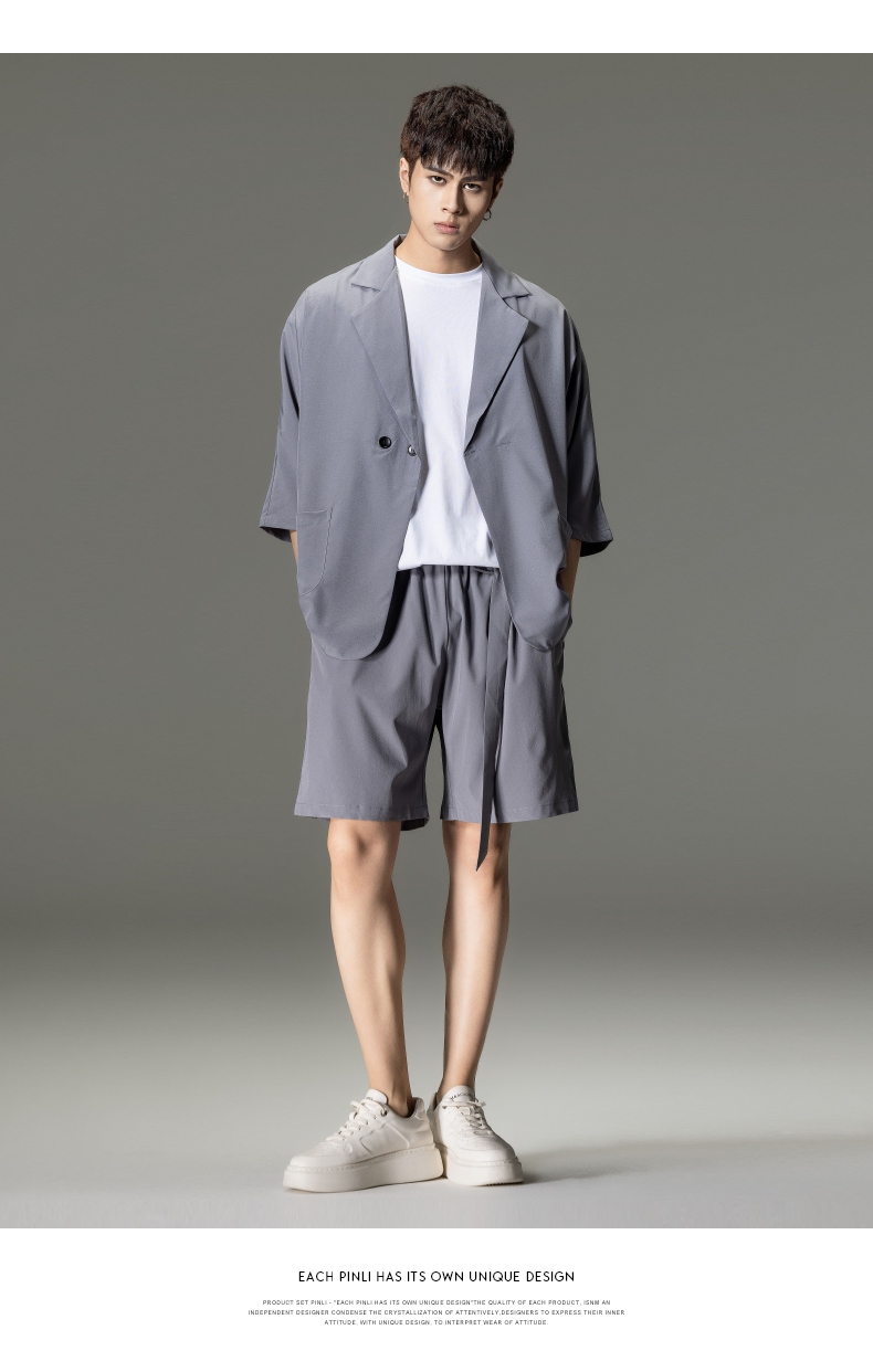 PINLI品立男装夏季薄款宽松七分袖小西装ins西服外套凉感防晒服潮B203106331