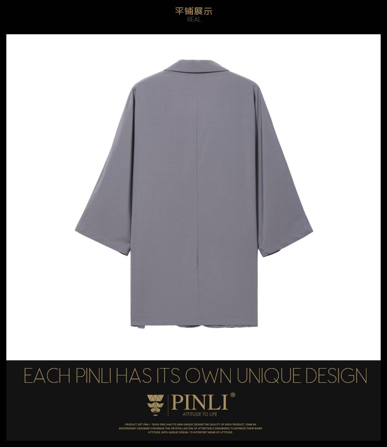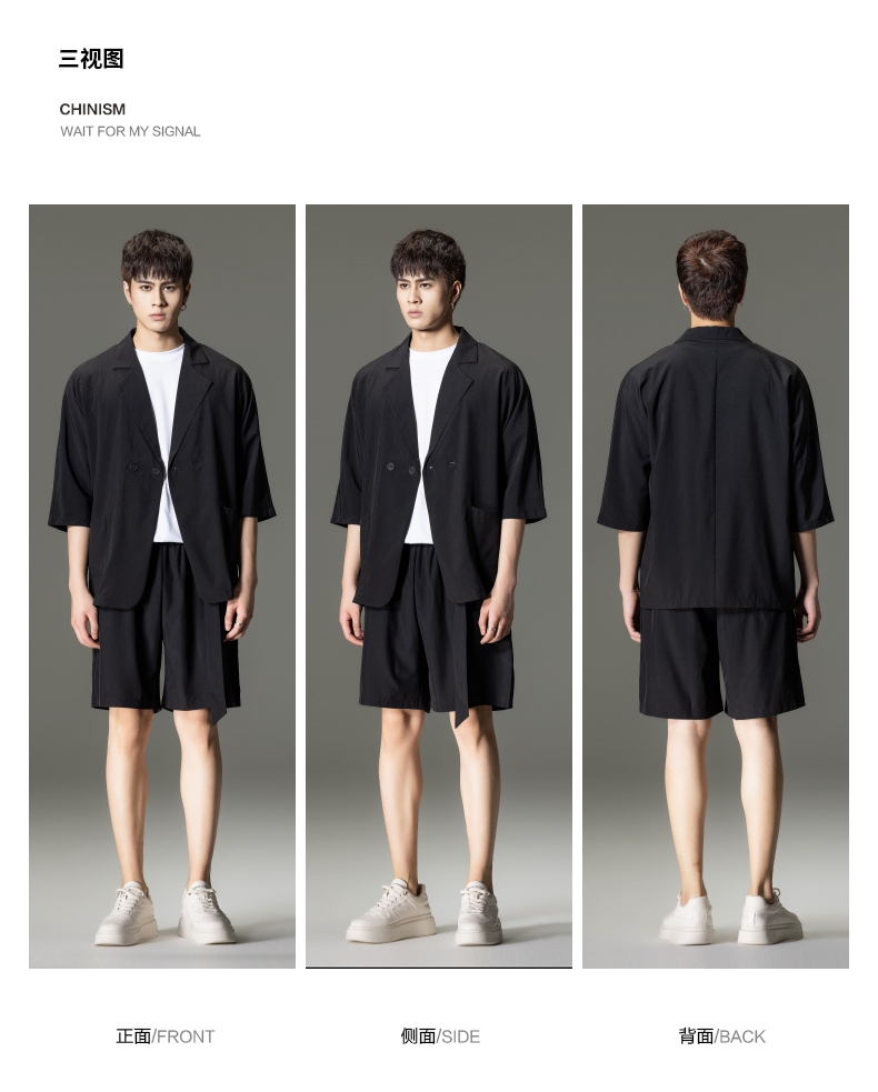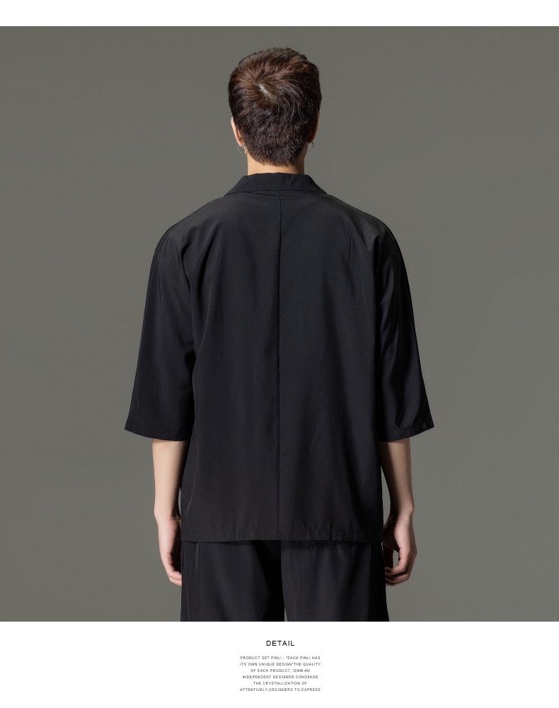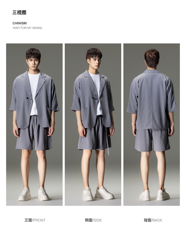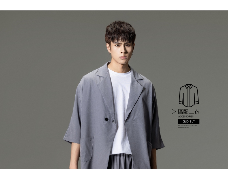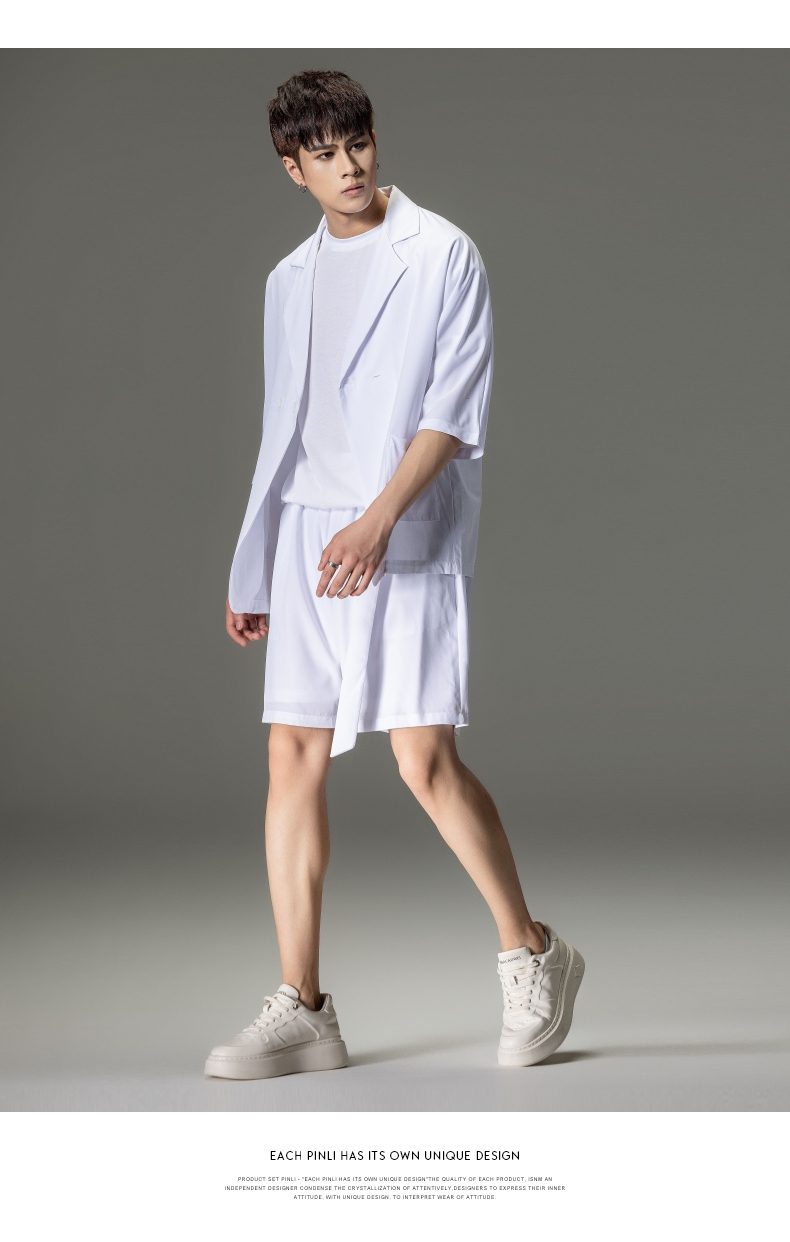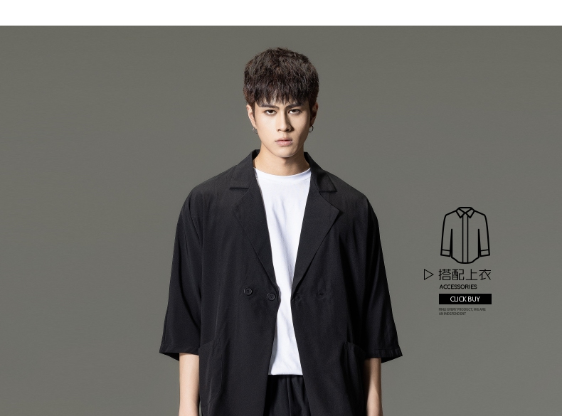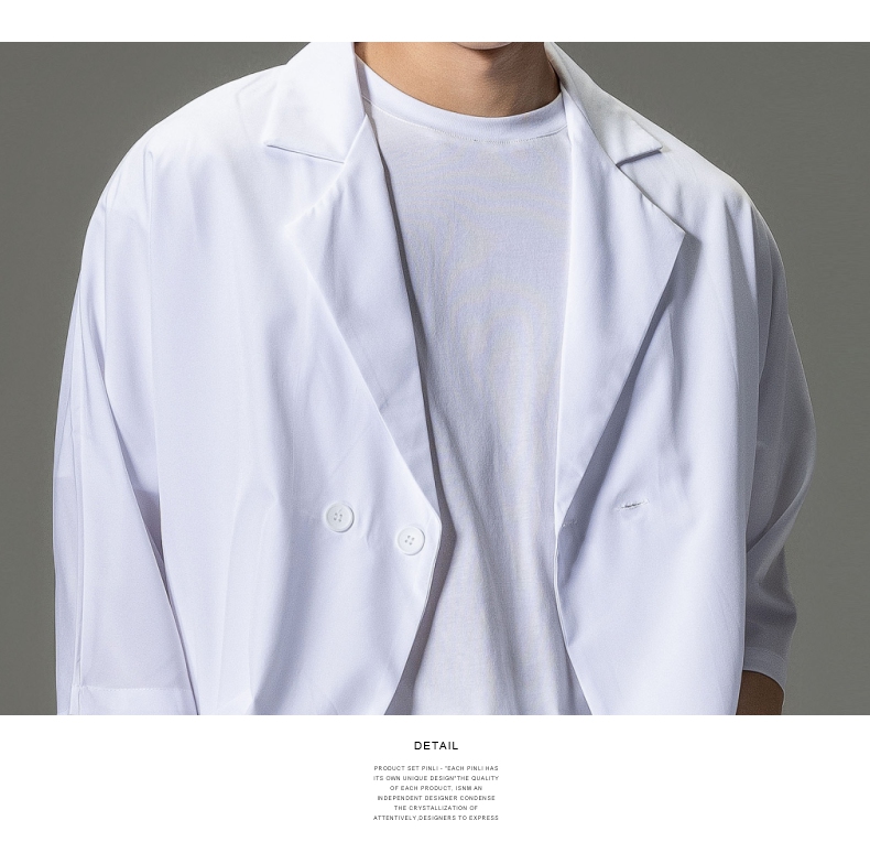 PINLI品立男装夏季薄款宽松七分袖小西装ins西服外套凉感防晒服潮B203106331