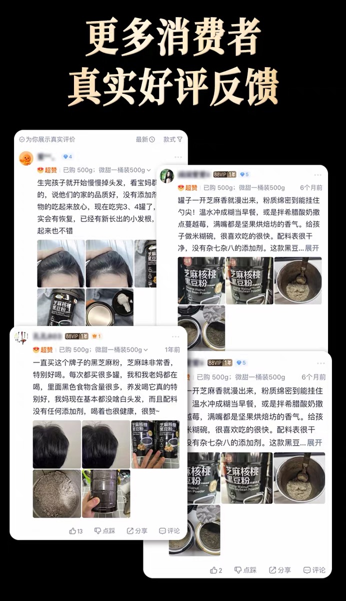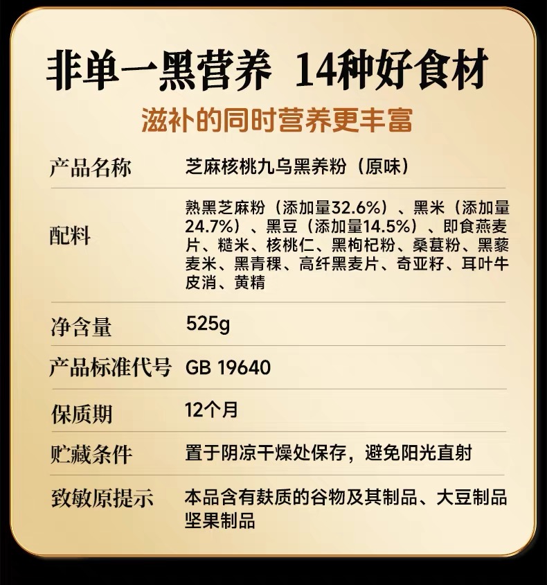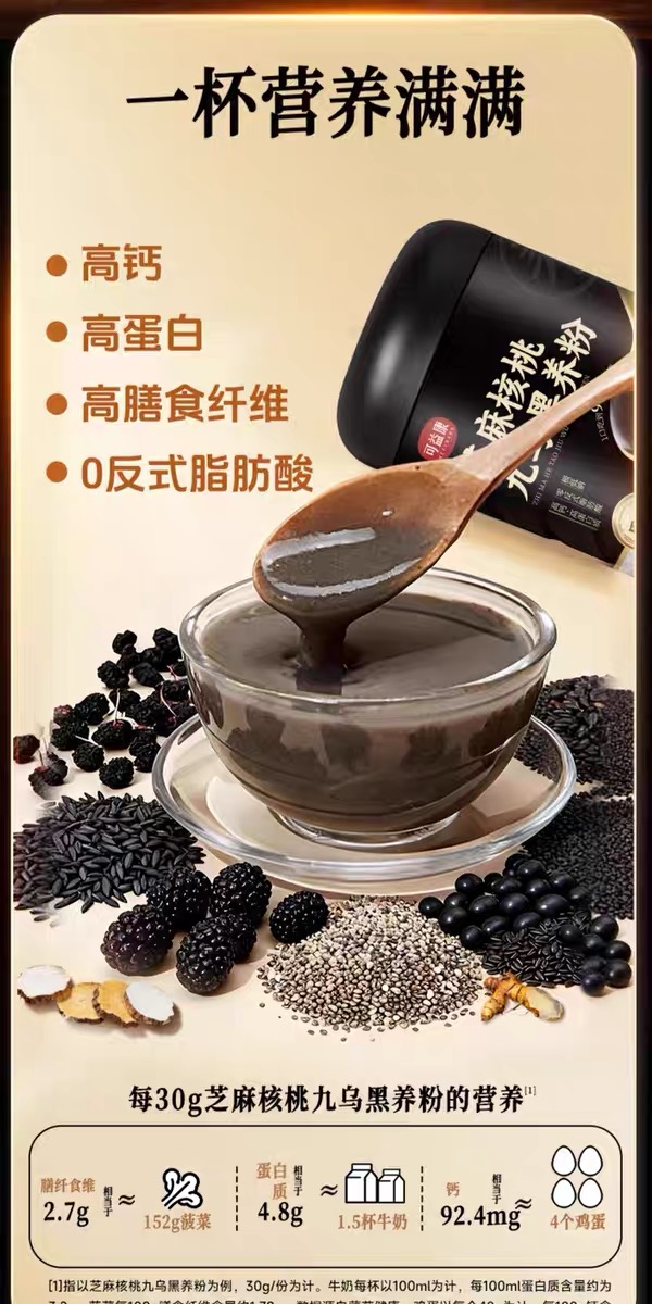 可益康芝麻核桃九乌黑养粉  9种黑色食材  粉质细腻  高钙/高蛋白  醇香饱腹  525g/罐 商品图6