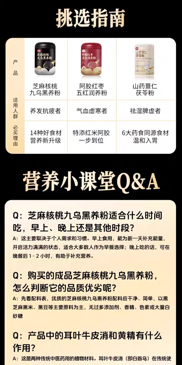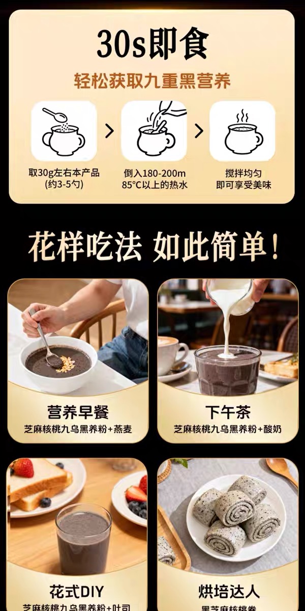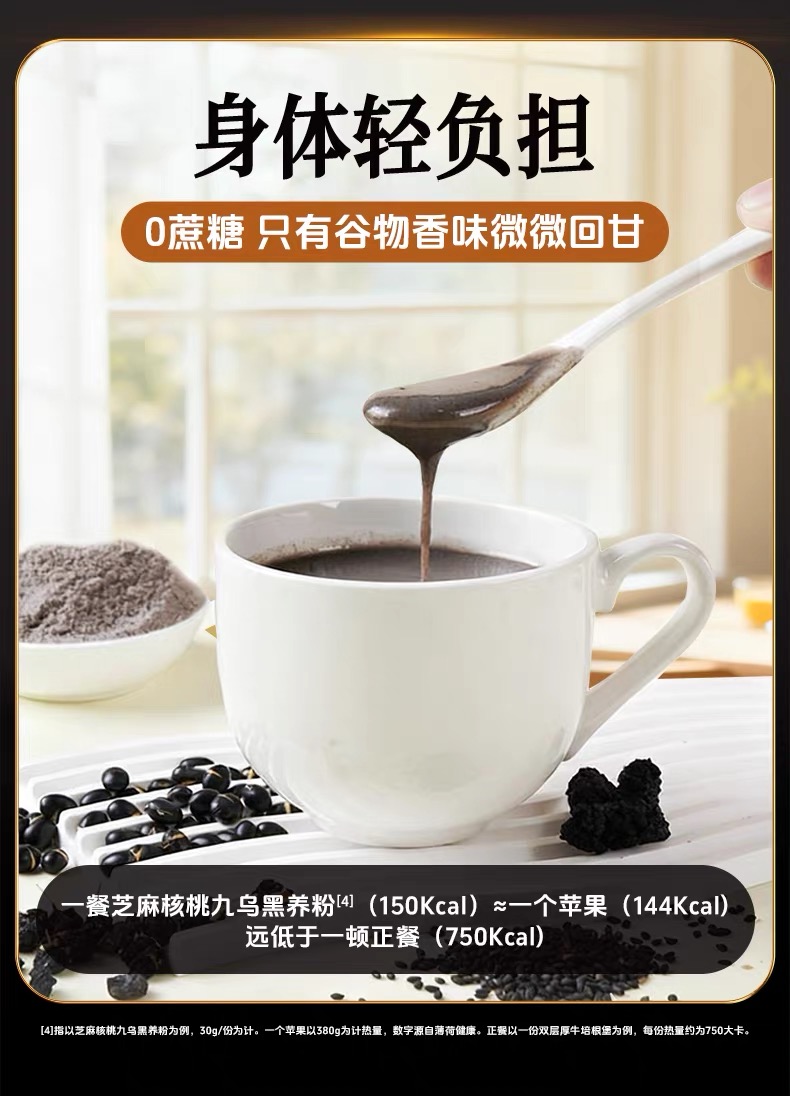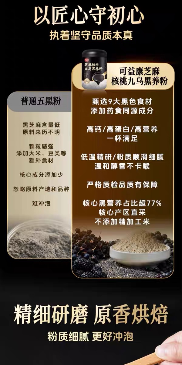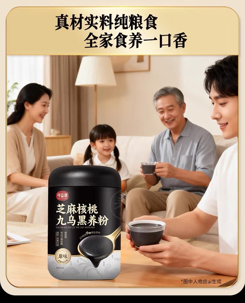 可益康芝麻核桃九乌黑养粉  9种黑色食材  粉质细腻  高钙/高蛋白  醇香饱腹  525g/罐 商品图4