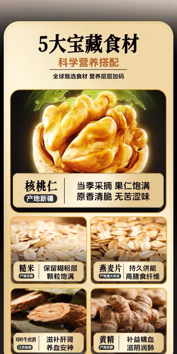 可益康芝麻核桃九乌黑养粉  9种黑色食材  粉质细腻  高钙/高蛋白  醇香饱腹  525g/罐 商品图5