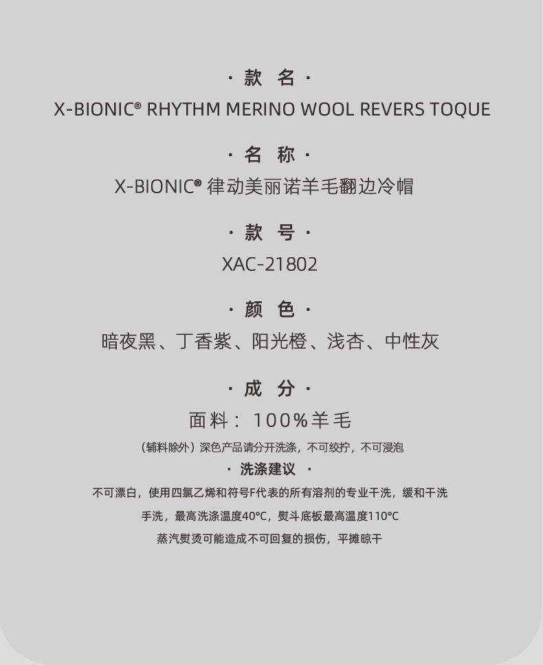 X-BIONIC 律动 羊毛翻边冷帽 运动休闲保暖毛线帽子21802