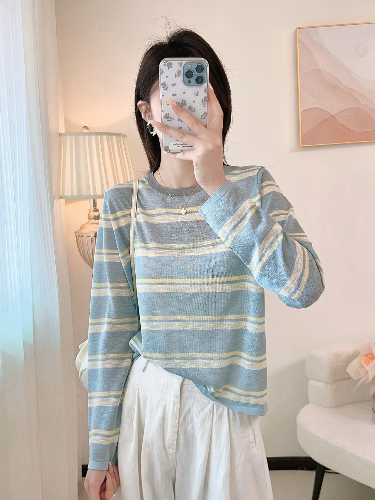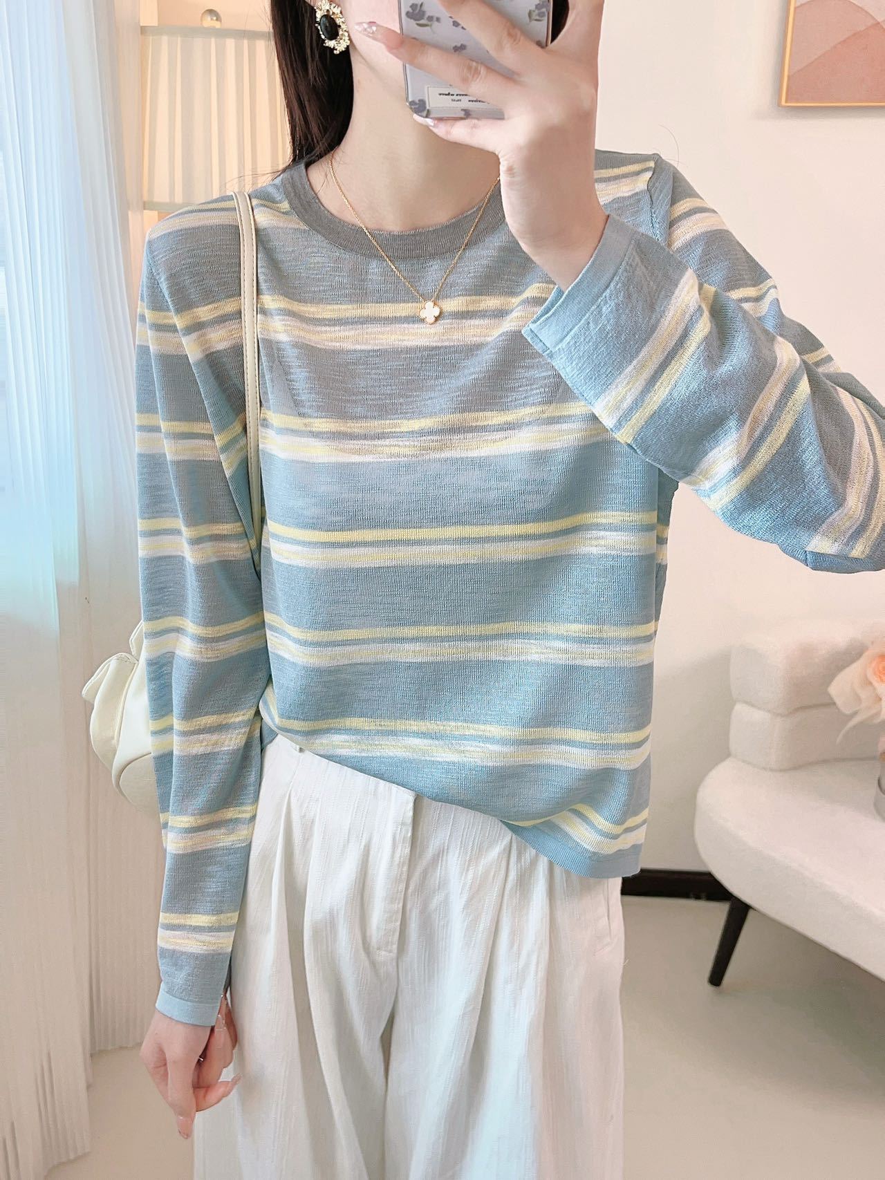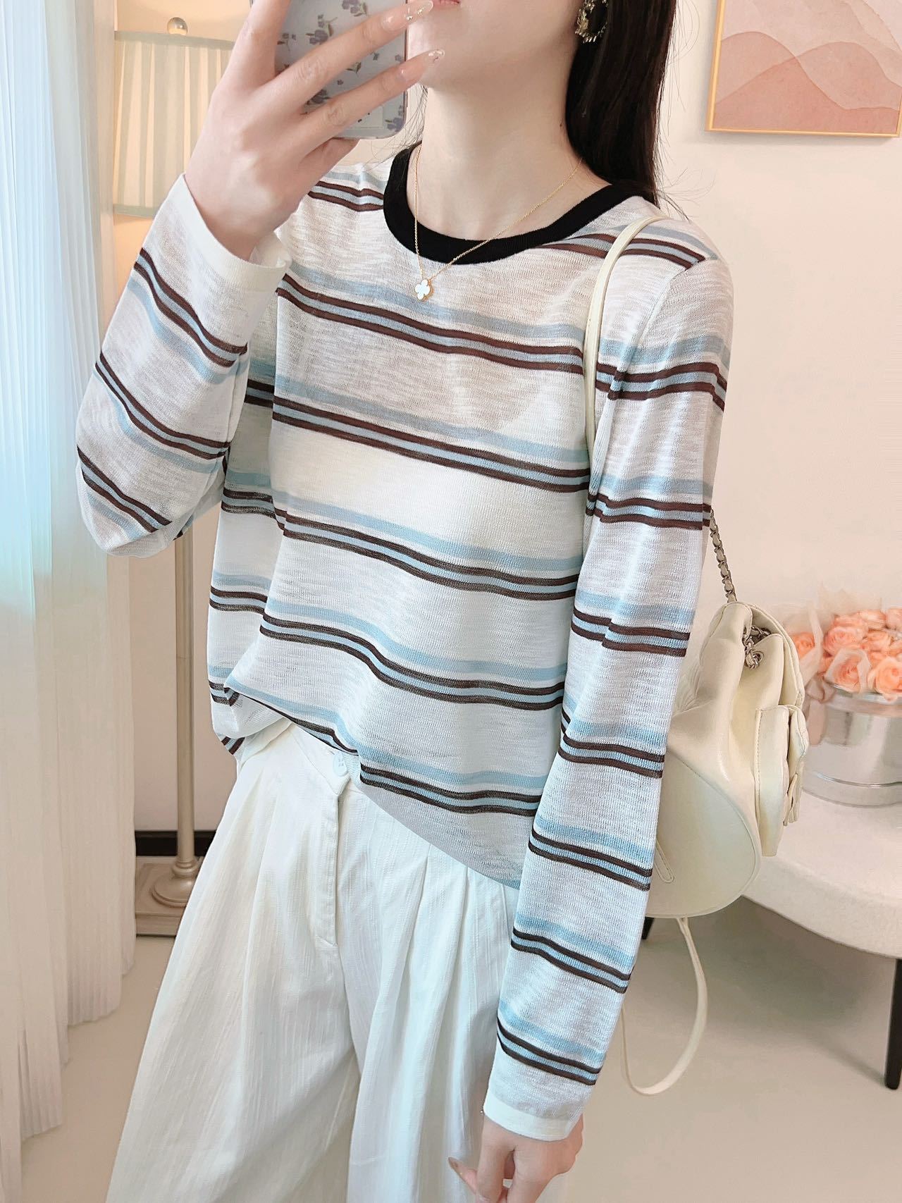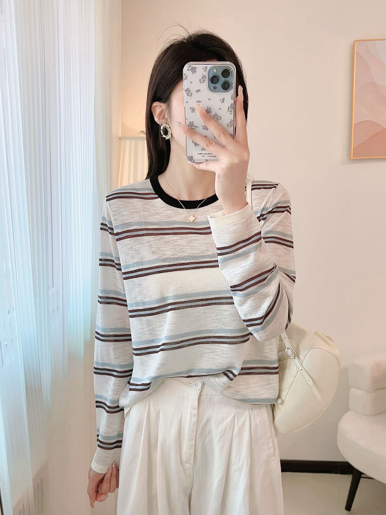 复古低饱和度的一系列配色撞色条纹长袖防晒罩衫