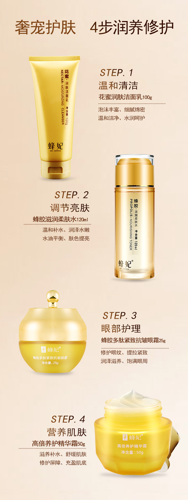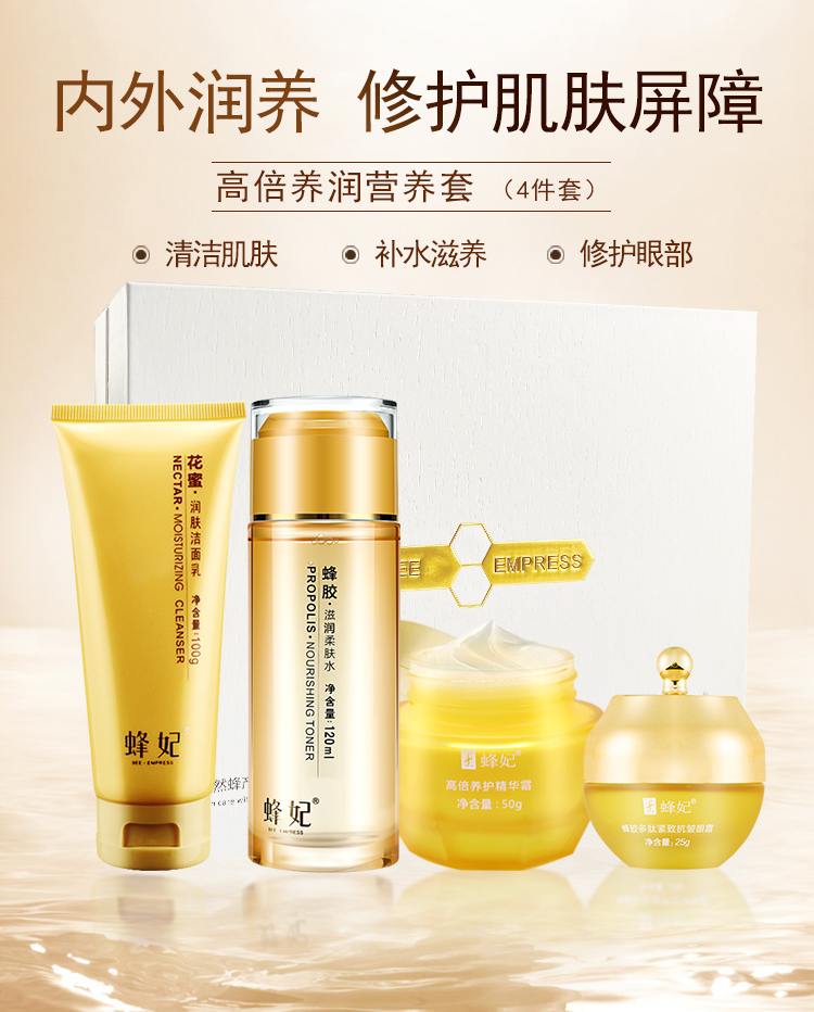 蜂妃高倍养润套装(4件套) 温和洁面\补水调节\修护眼部\强韧屏障
