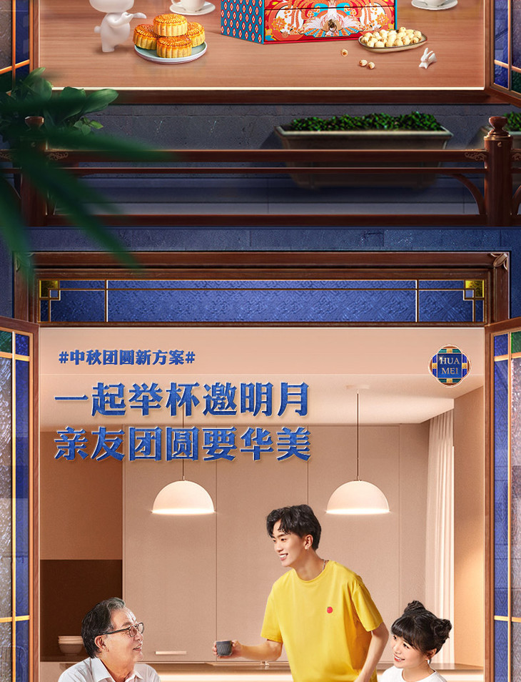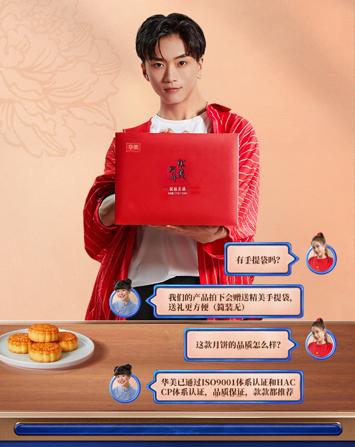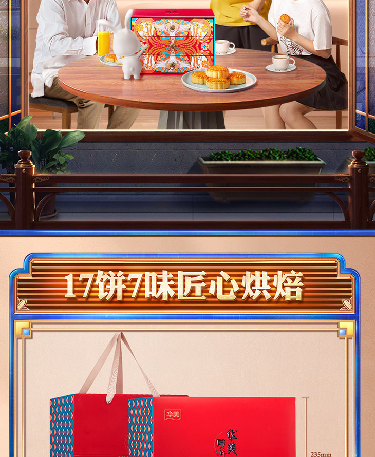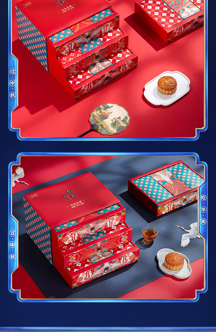 华美中秋月饼礼盒祝福美满1100g(箱装三层礼盒)