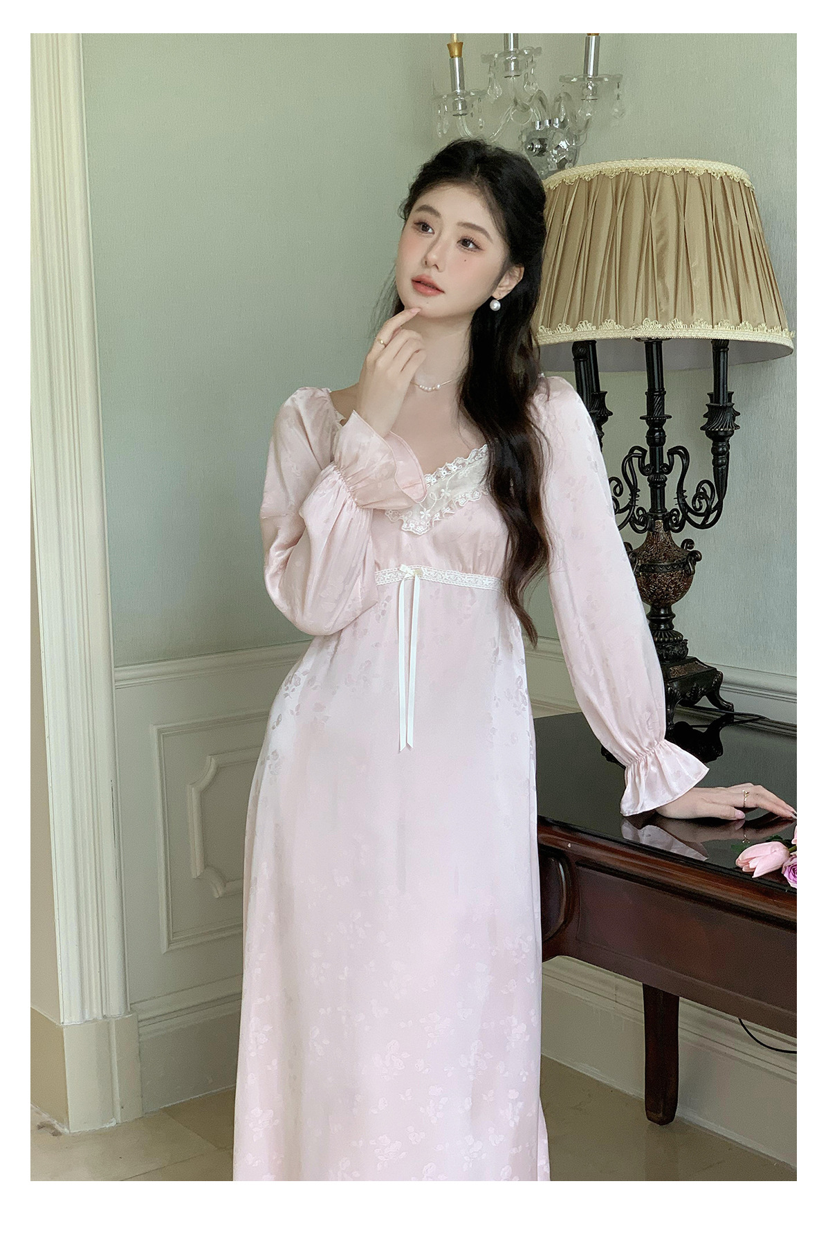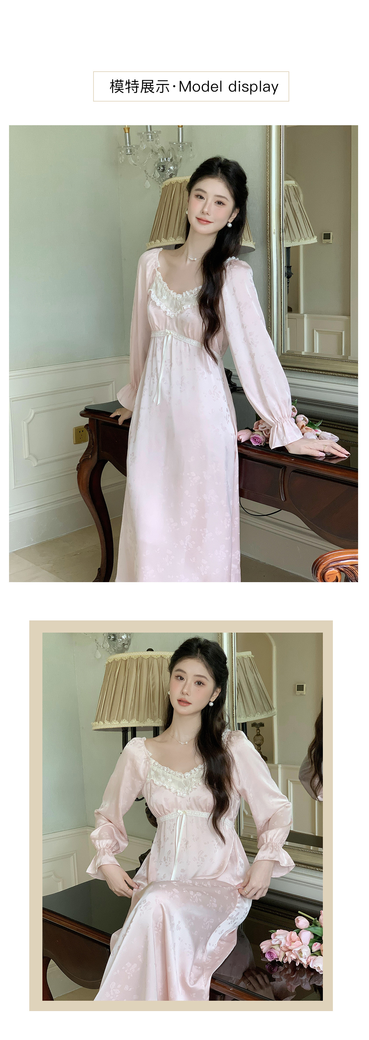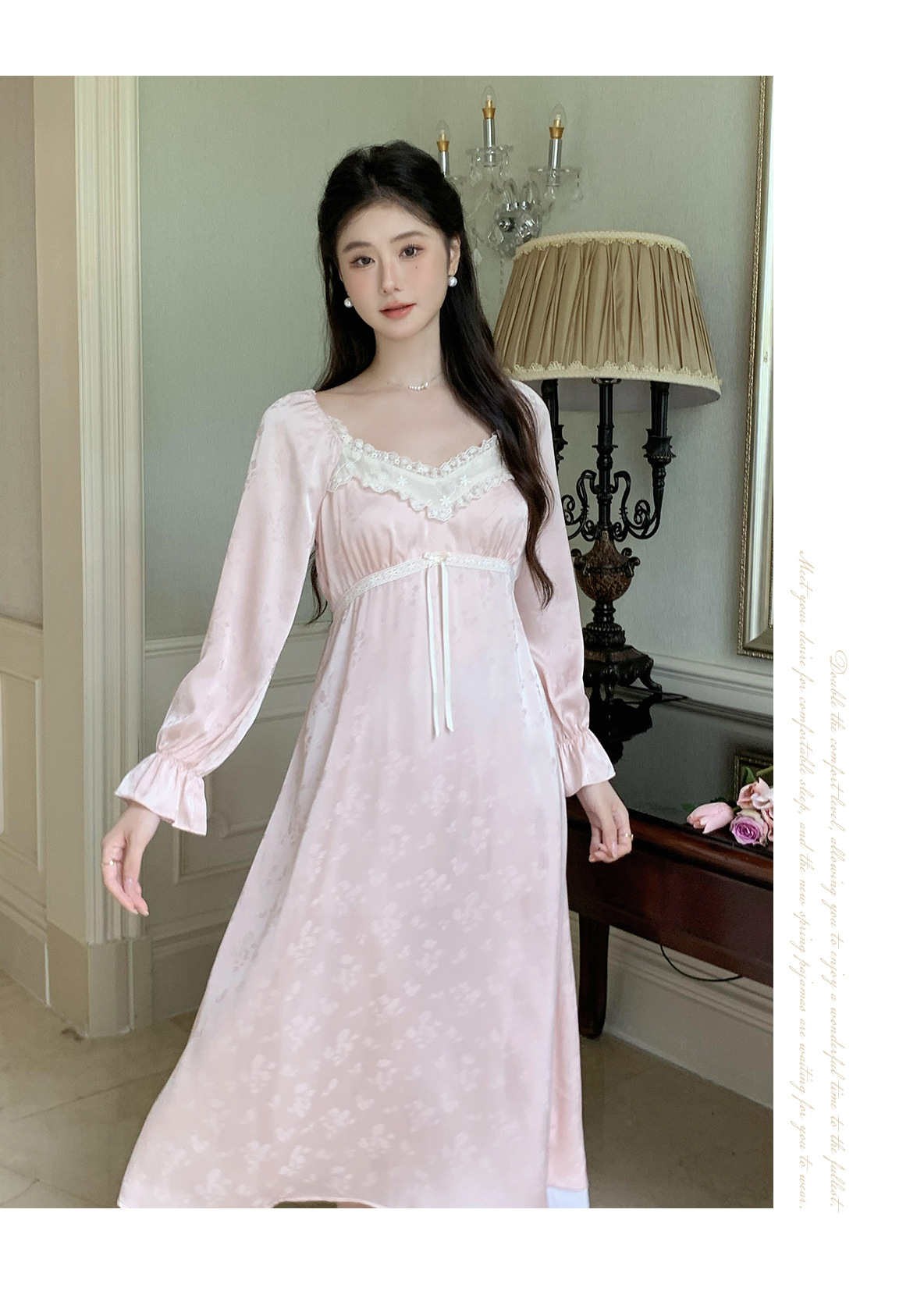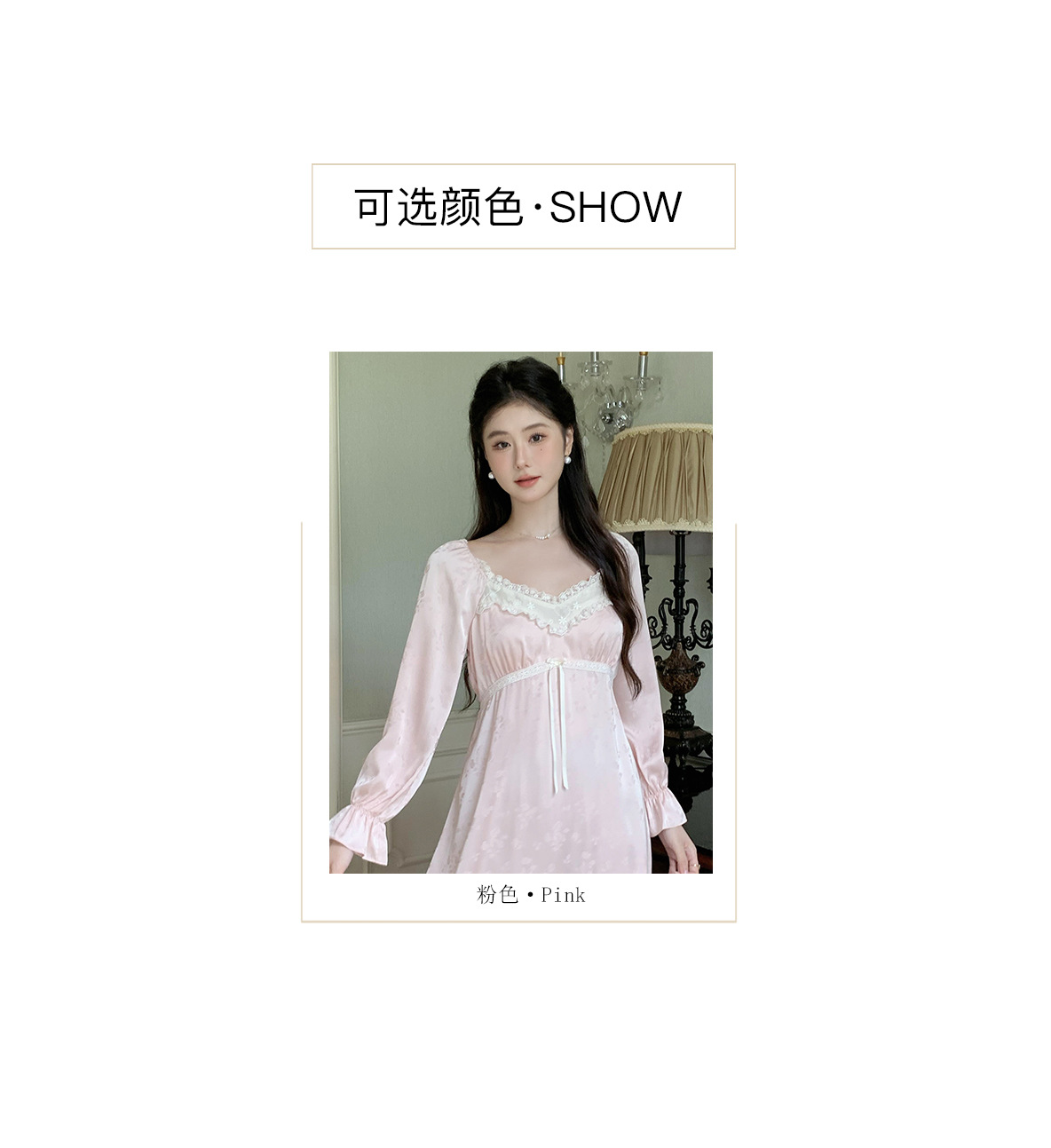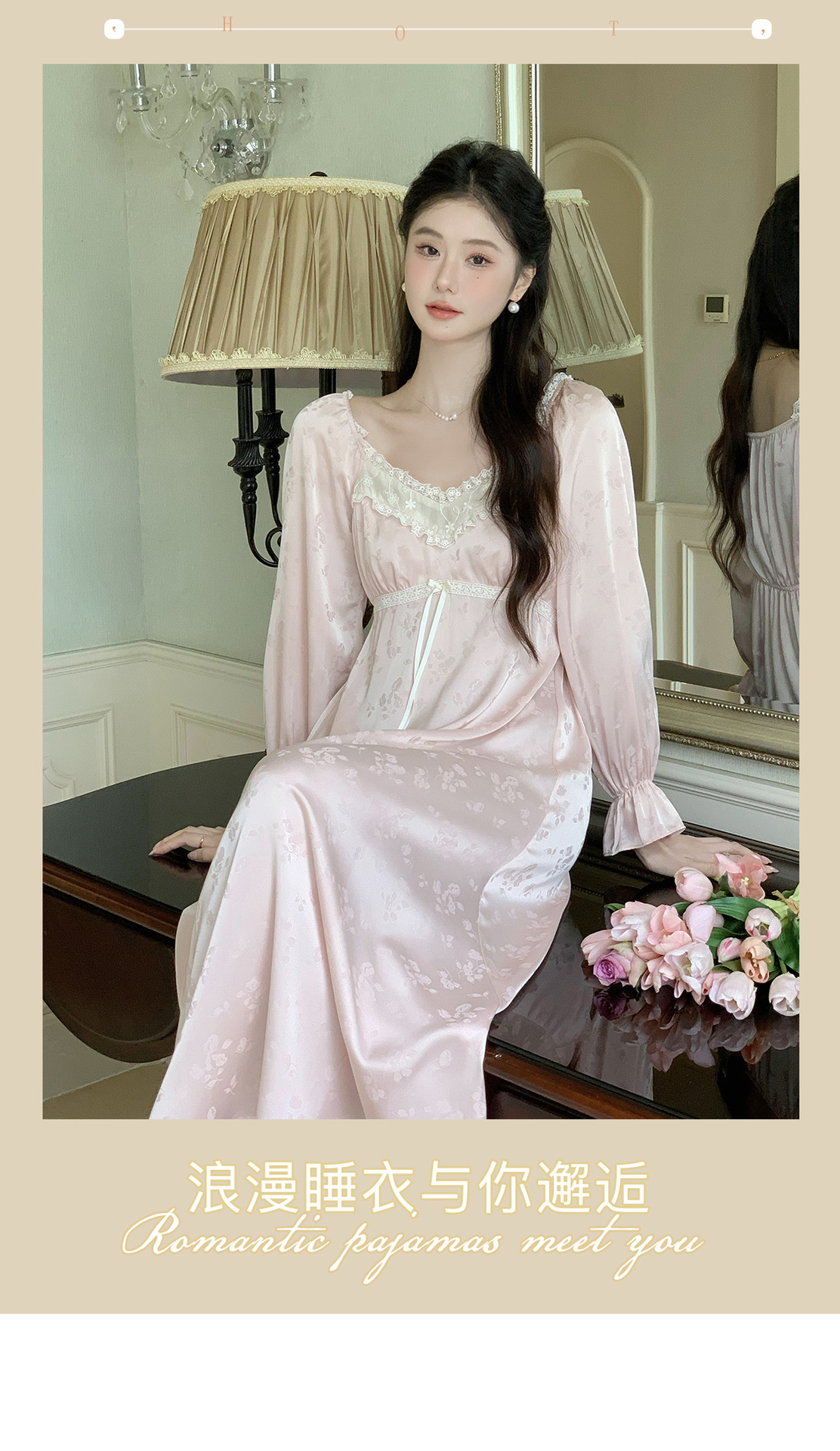 【秋冬严选❗️超仙法式长袖睡裙】自带胸垫,免穿内衣文胸垫,超舒服❗️睡衣新品长款冰丝公主风睡衣薄款可外穿家居服