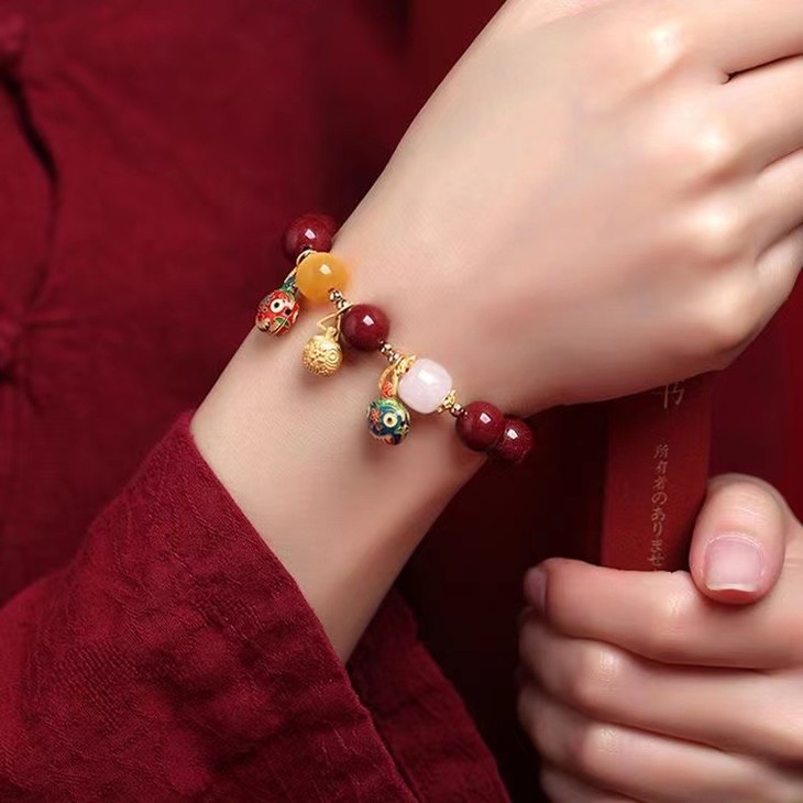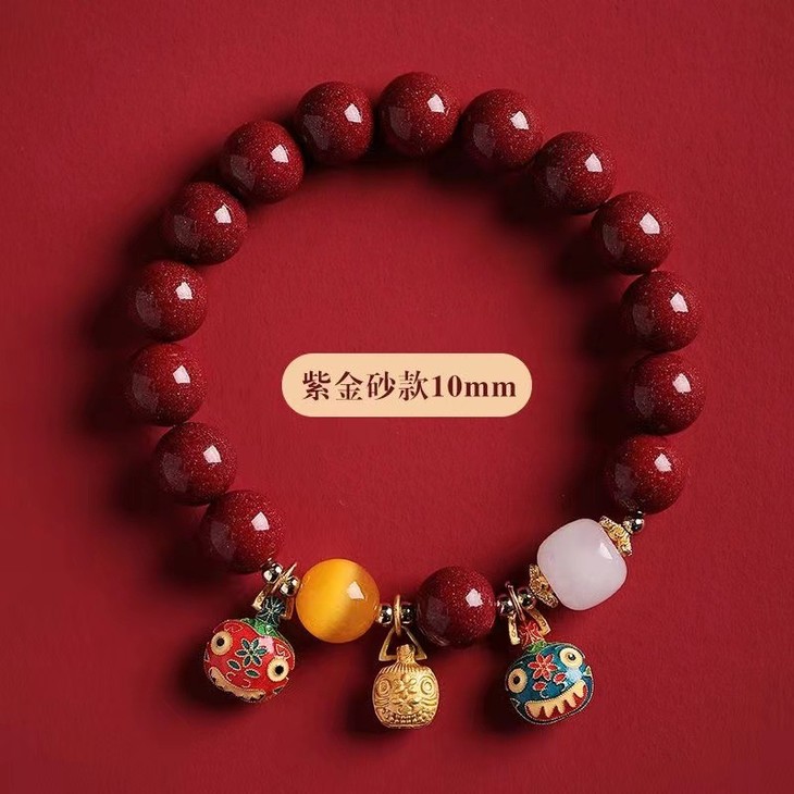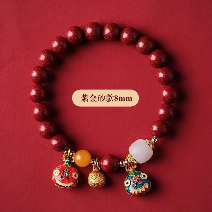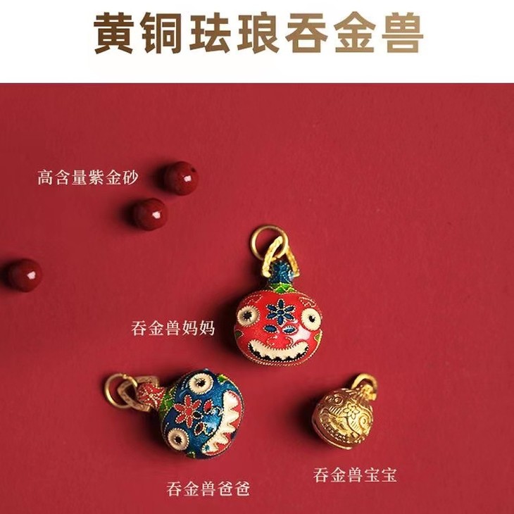 【古法烧蓝吞金兽❗️朱砂手串】手工饰品,本命年招财转运,朱砂吞金兽手链,男女款情侣手串父亲节礼物手工饰品情人节