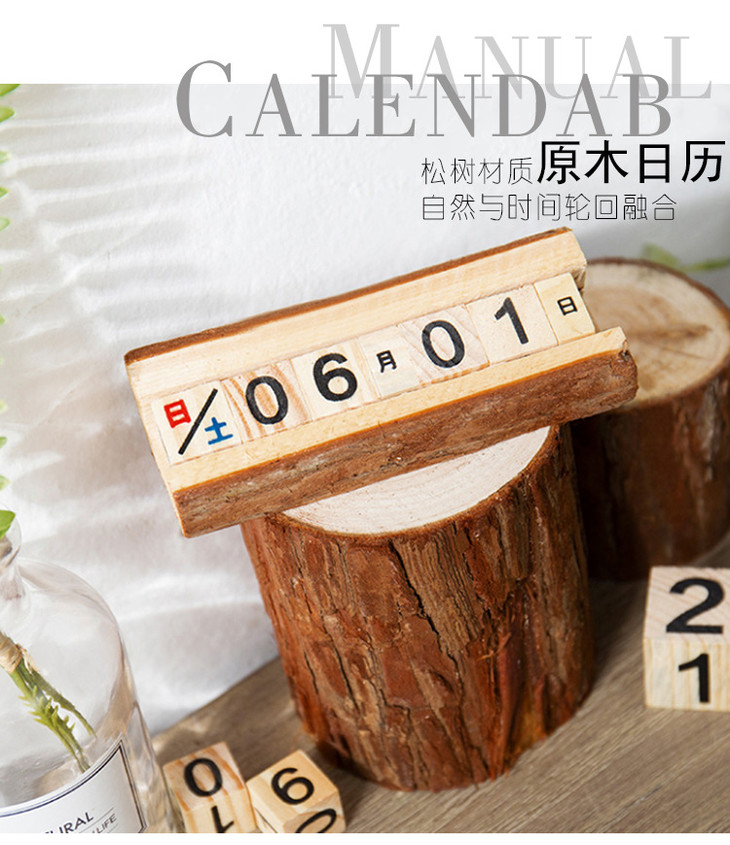 【家居摆件】*新款巨献 手动原木 万年历 手工制作 小台历 家居日用 日历 大号