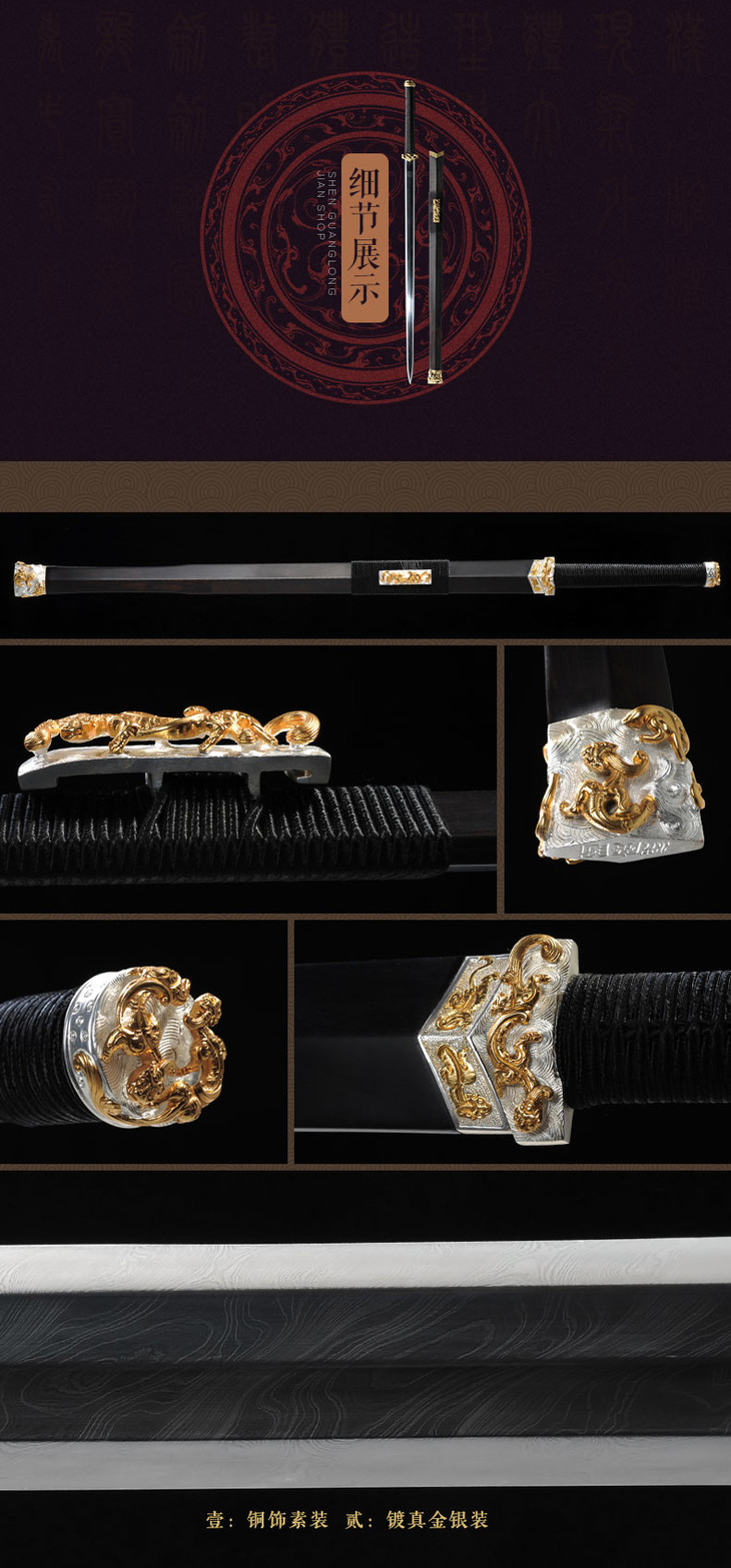 螭龙剑汉剑 沈州作品 龙泉沈广隆宝剑 手工花纹钢传统宝剑 工艺品 未开刃