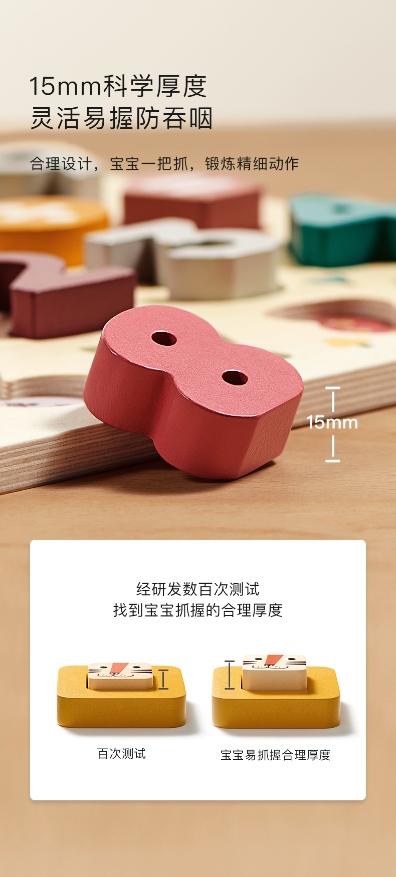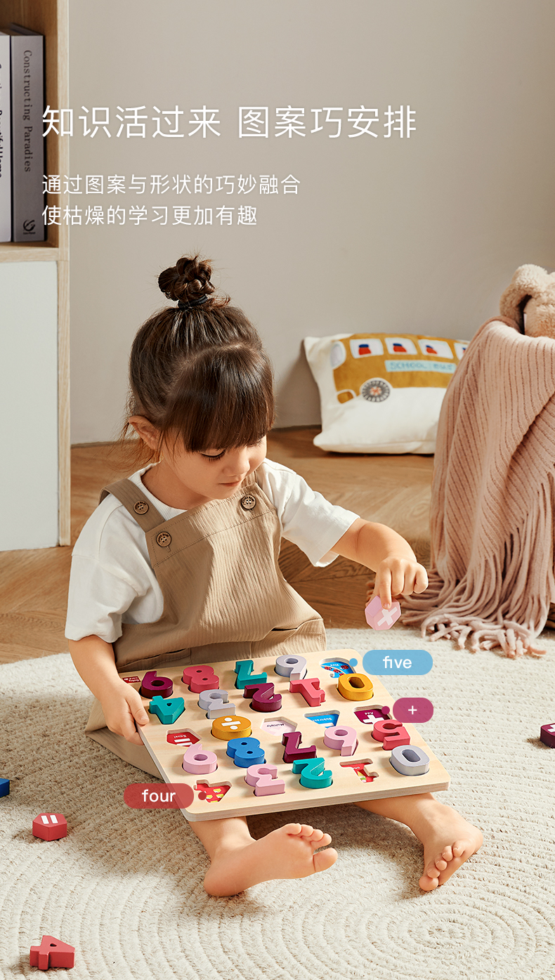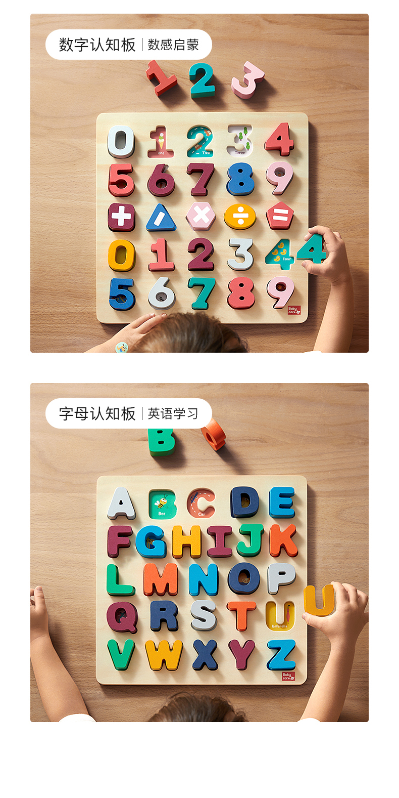 【babycare好物集】拼图儿童益智 数字母手抓板3岁宝宝早教积木质拼图入门级