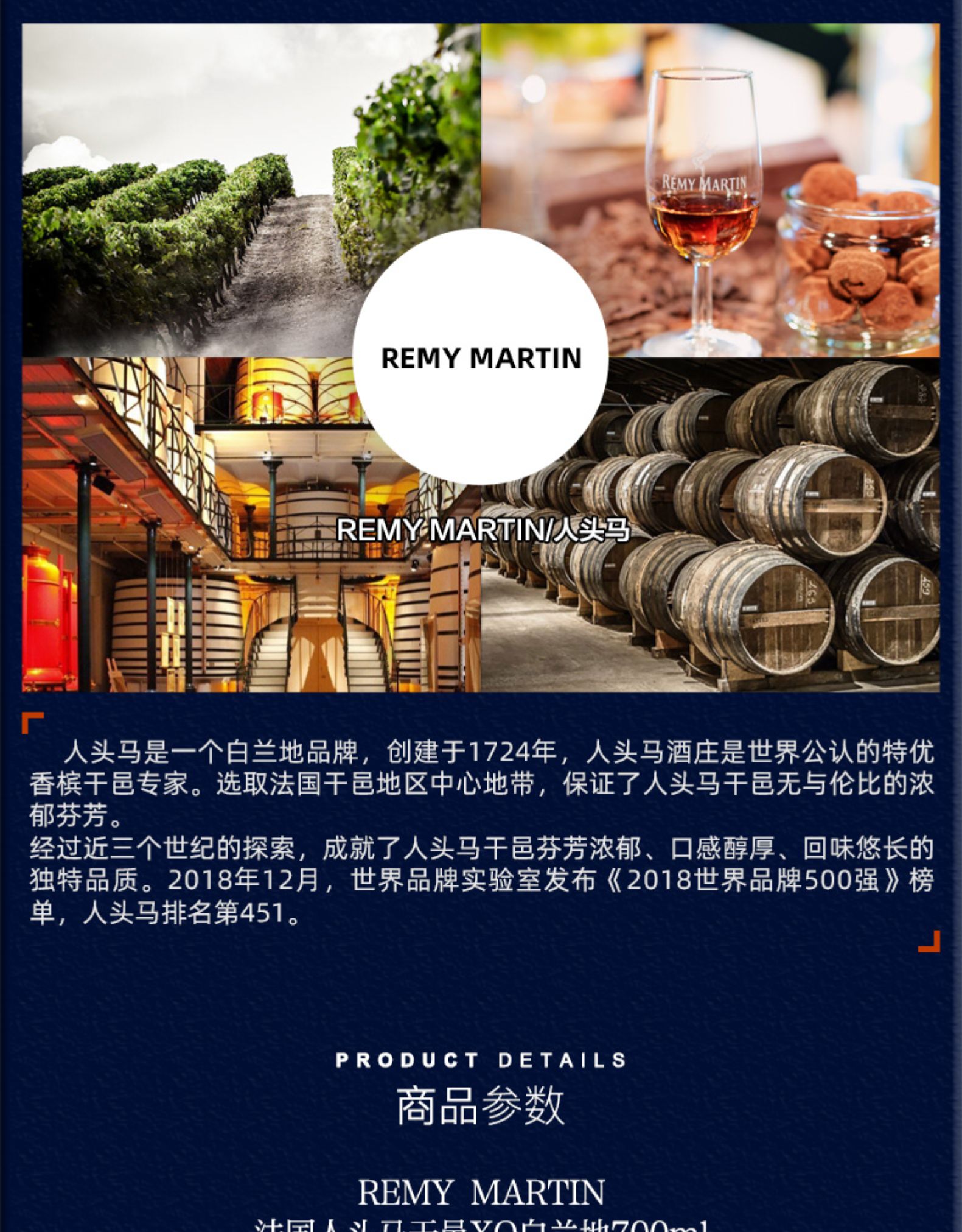 【行货】法国人头马XO干邑白兰地 700ml*1瓶