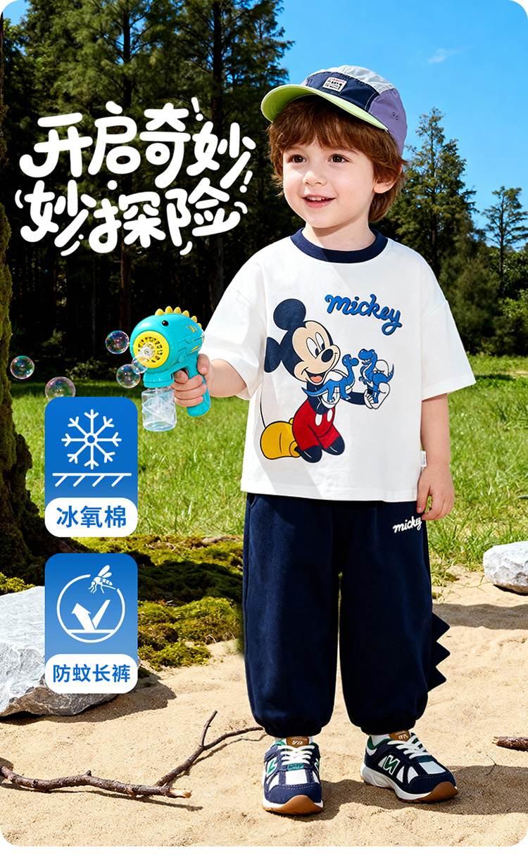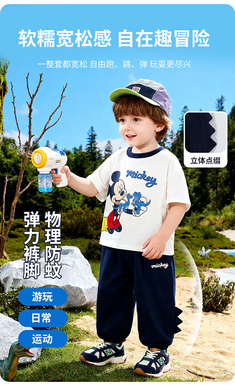 迪士尼夏日玩伴男童夏季短袖长裤套装ZD2FT023