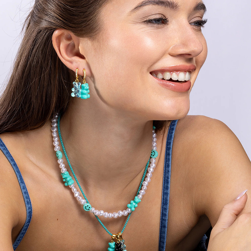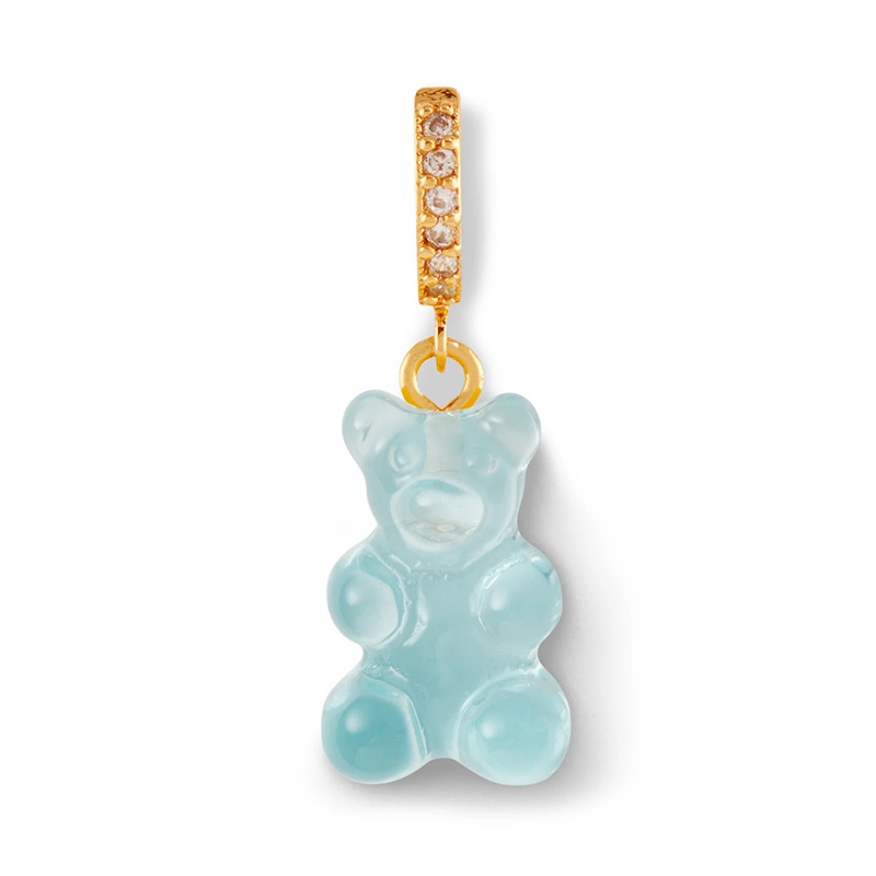 订购6周到|CRYSTAL HAZE-Nostalgia Bear Hoop-pave-天蓝色小熊 单只 耳环 (金色环扣)[挪威设计师]