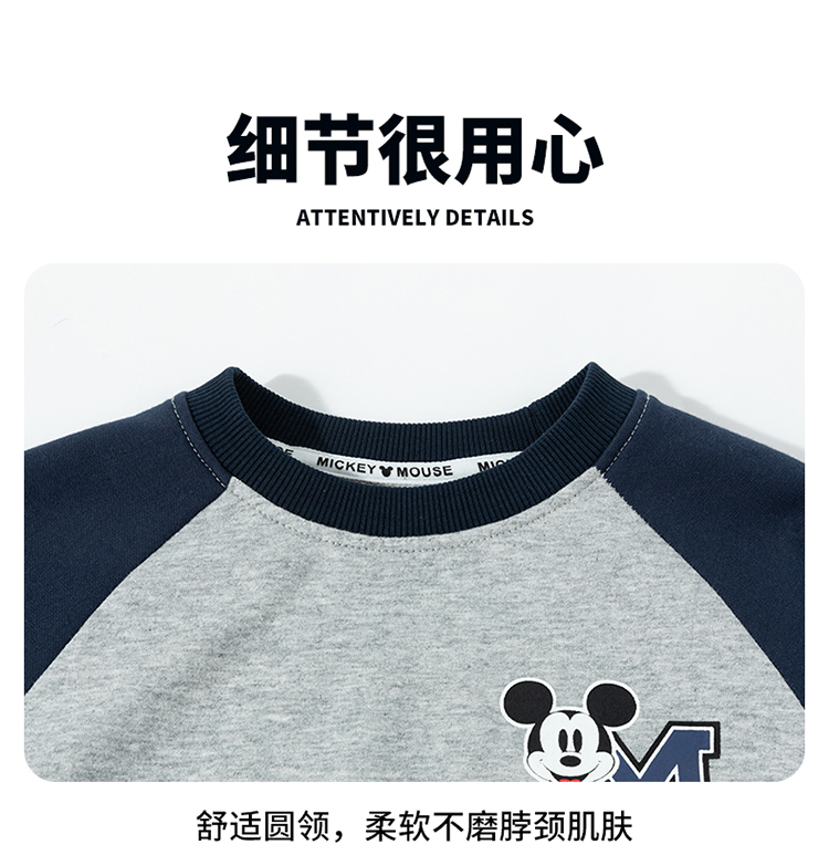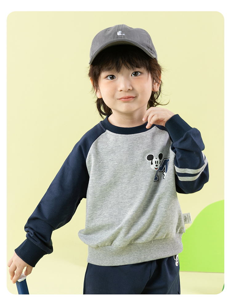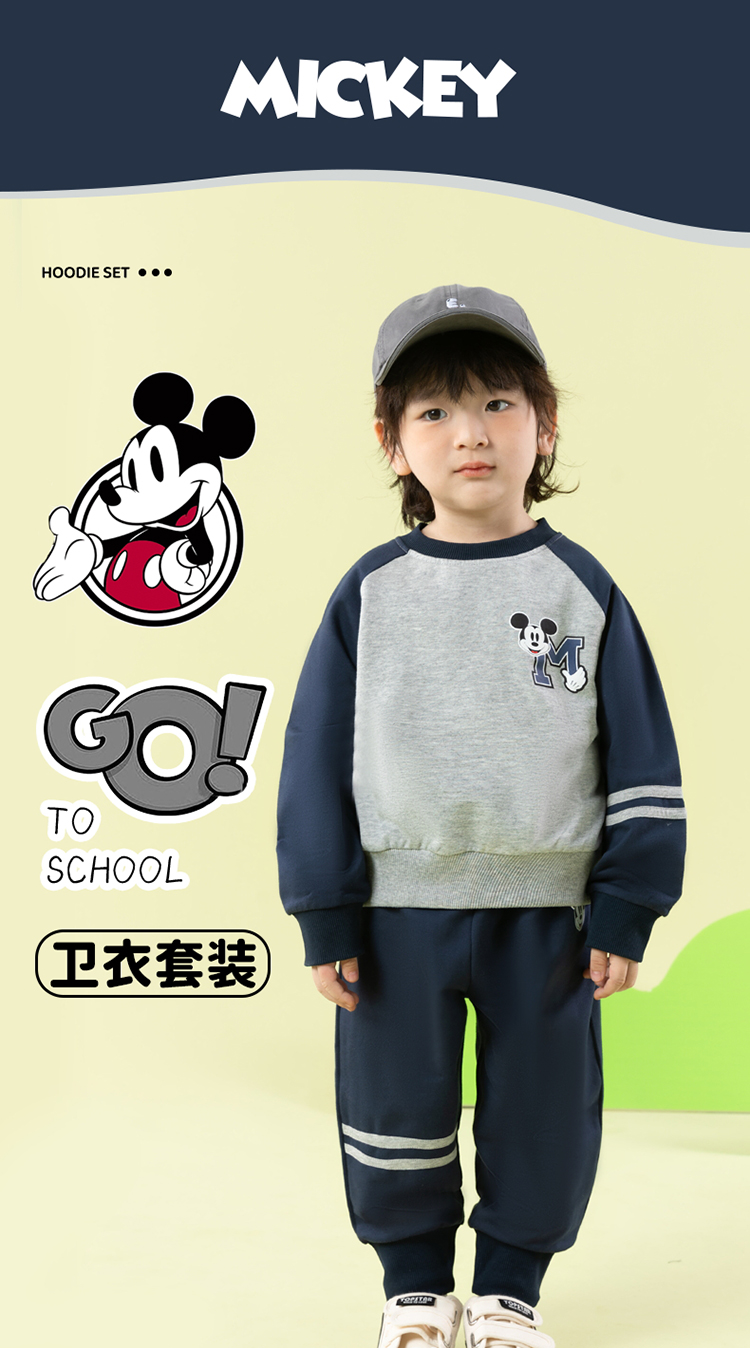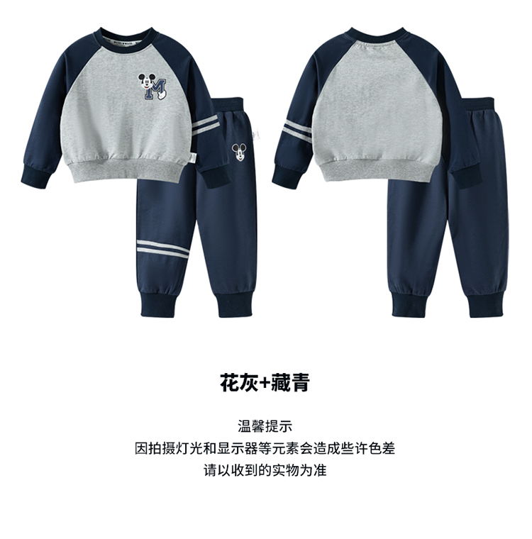 迪士尼春季男童女童撞色纯棉卫衣卫裤运动休闲两件套