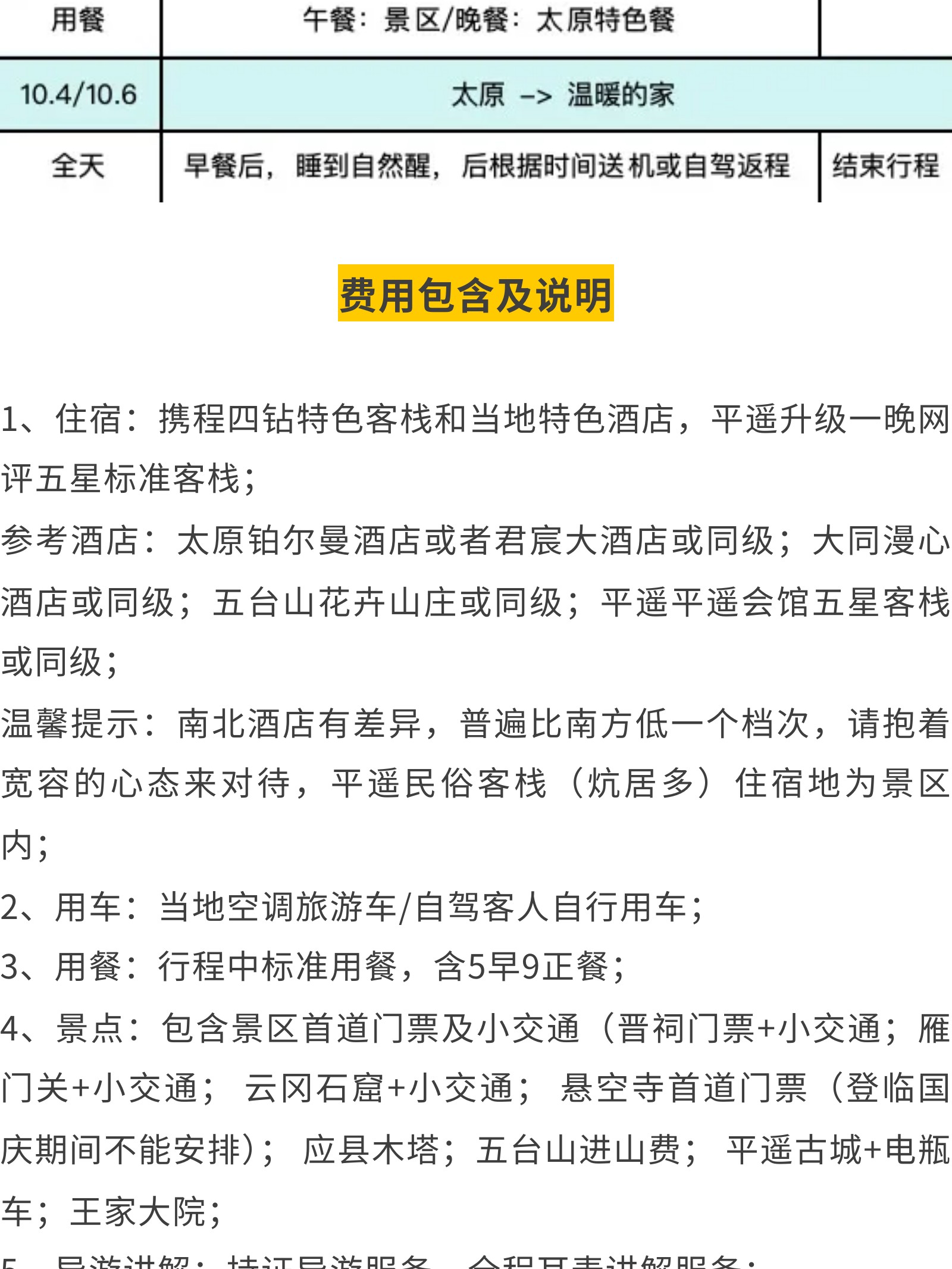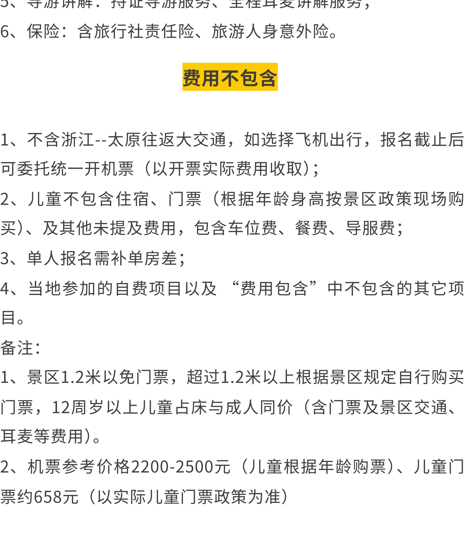 注:儿童不占床、不含门票(含用餐、导服、大巴、景区交通与耳麦等费用)