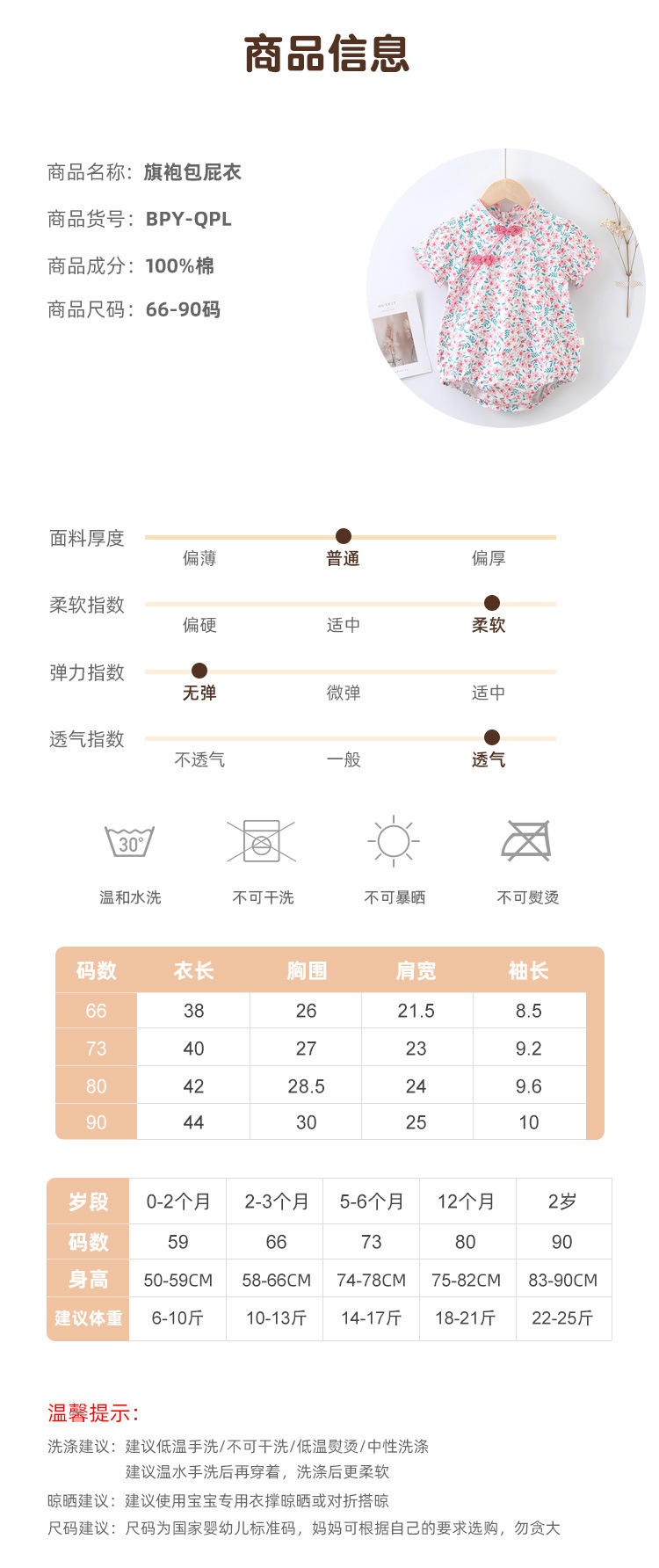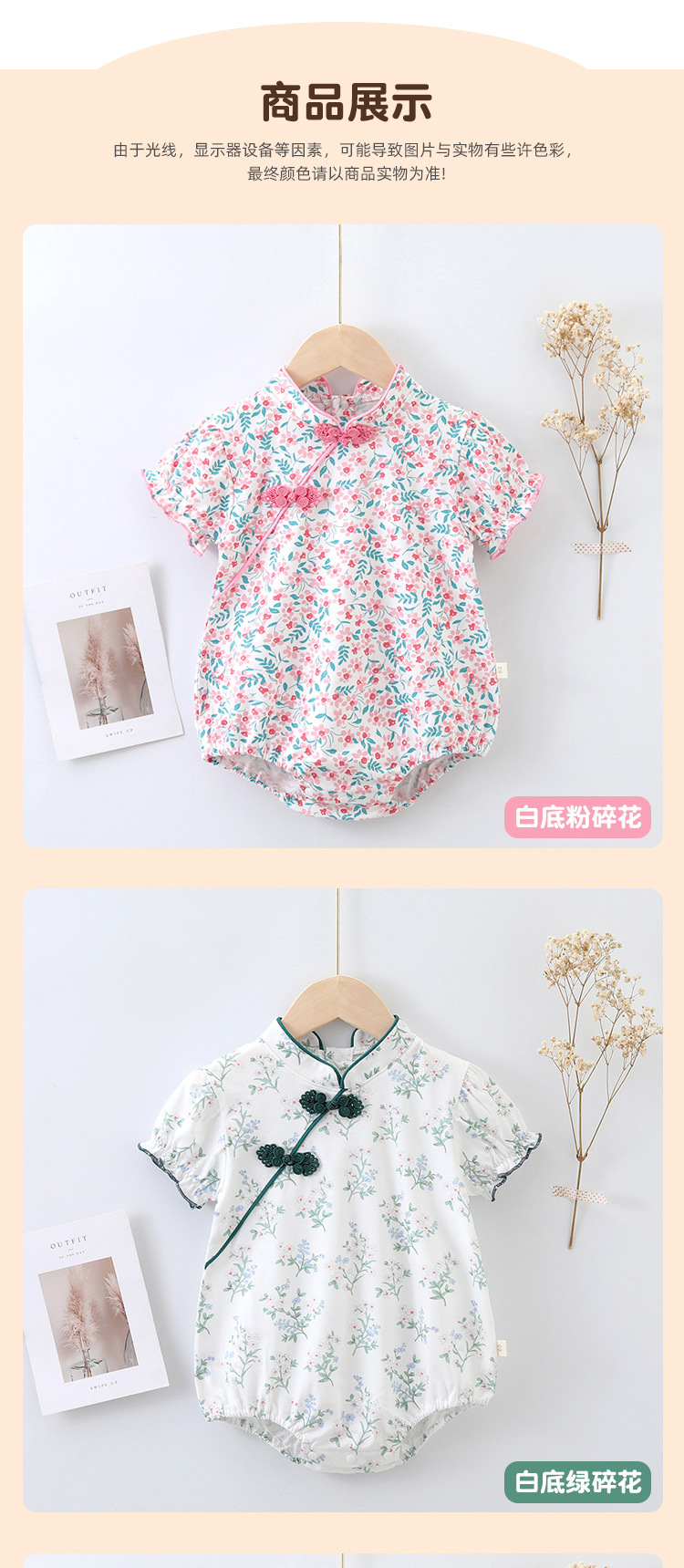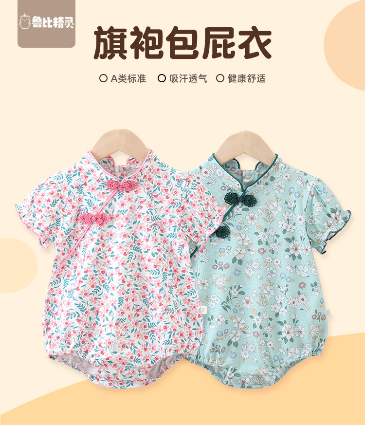 【旗袍包屁衣】婴儿连体衣夏装2023新生儿短袖爬爬服宝宝三角包屁哈衣旗袍国风潮