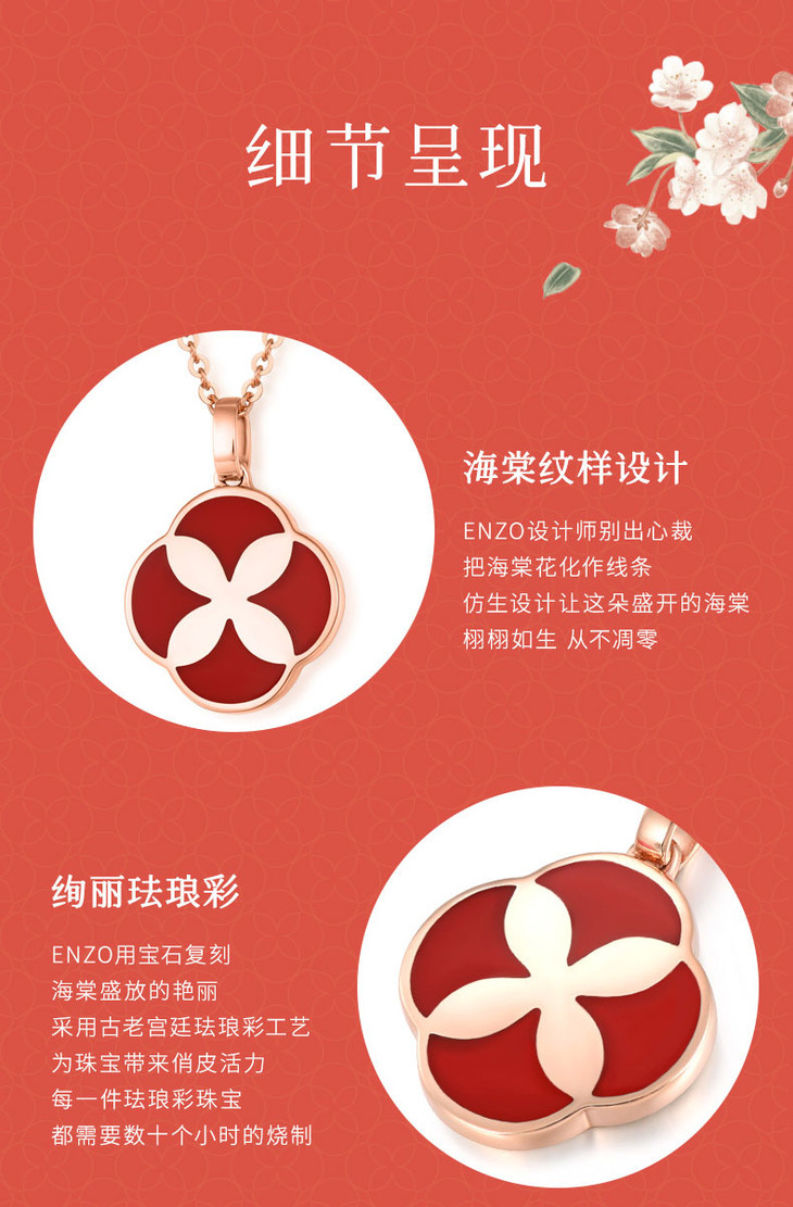 海棠系列14K玫瑰金镶珐琅吊坠 故宫宫廷文化×ENZO