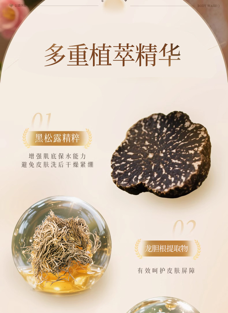 【优雅香氛❗️金钻黑松露香水沐浴露】1瓶≈沐浴露+身体乳+香水,多重自然植萃,轻奢养肤深层滋润,温柔洗净肌肤污垢,细腻肌肤持久留香清爽滋润保湿QQ