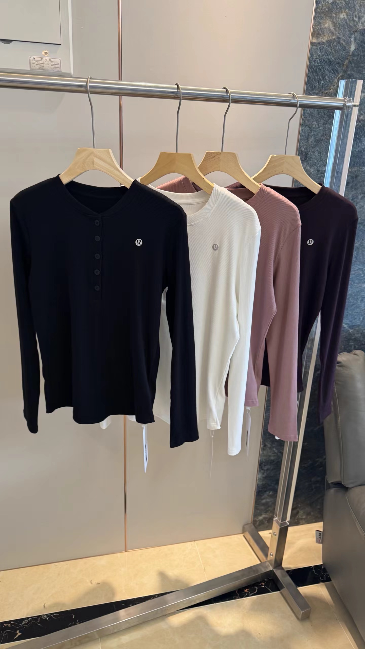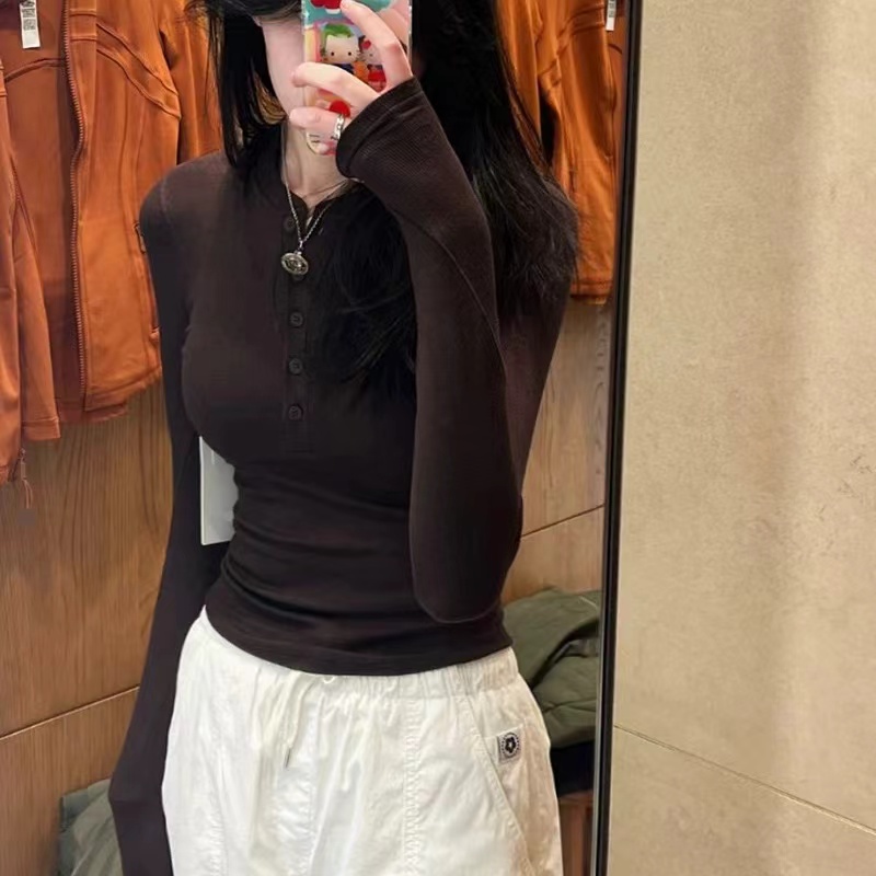 显瘦气质美式亨利领T恤打底衫瑜伽运动修身正肩长袖【亨利领坑条修身长袖上衣】高弹修身剪裁,贴合身形不紧绷,下摆弧形收腰,凸显腰线、拉长比例,显瘦显身材。精典亨利领+半开纽扣门襟,简约利落,可调节露肤度,修饰颈部线条,温柔又带小性感。细腻坑条针织面料,软糯亲肤、高弹透气,垂坠感好,久穿不易变形,舒适百搭。纯欲风、轻熟风、日常通勤风,单穿内搭都合适,轻松穿出氛围感与好身材。