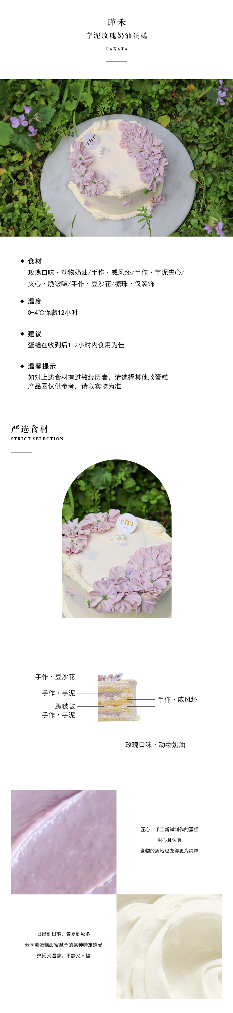 瑾禾·芋泥玫瑰奶油蛋糕丨(可备注少糖)