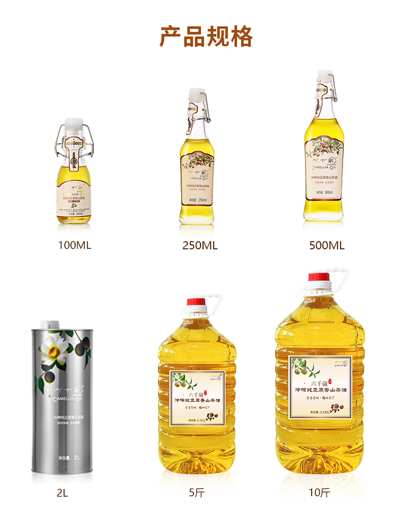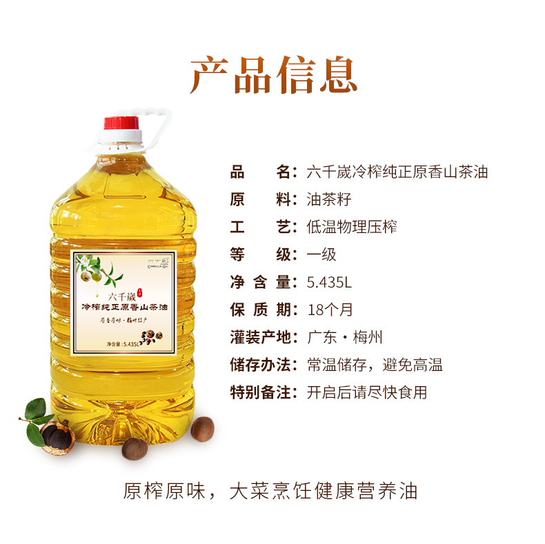 六千岁冷榨纯正原香山茶油 健康食用油茶籽油家庭装孕妇月子油 5.435L