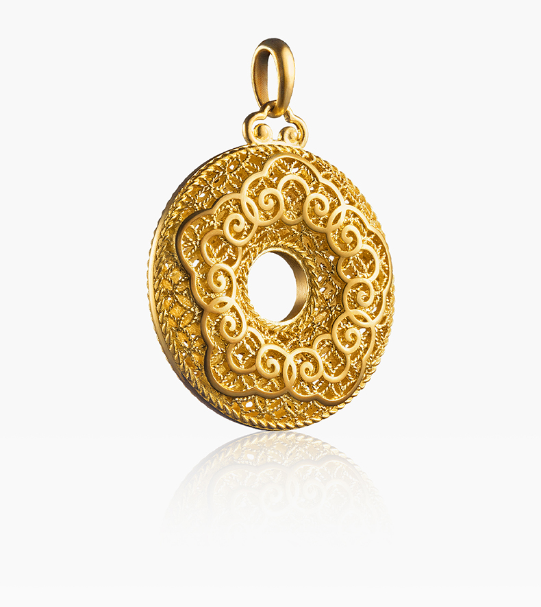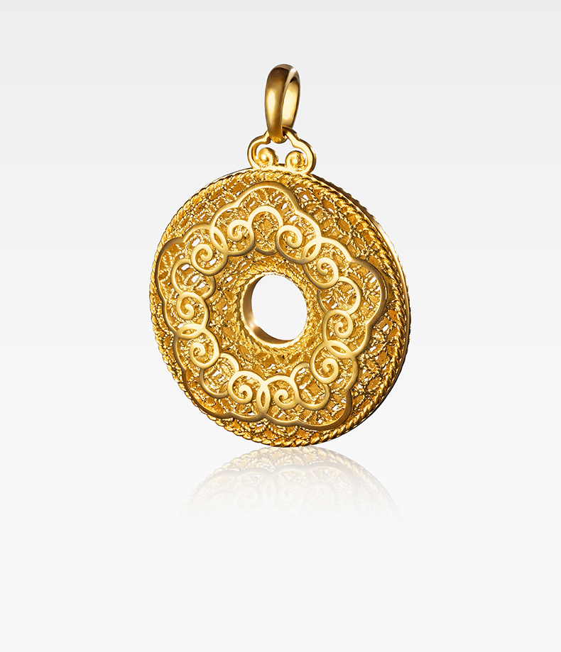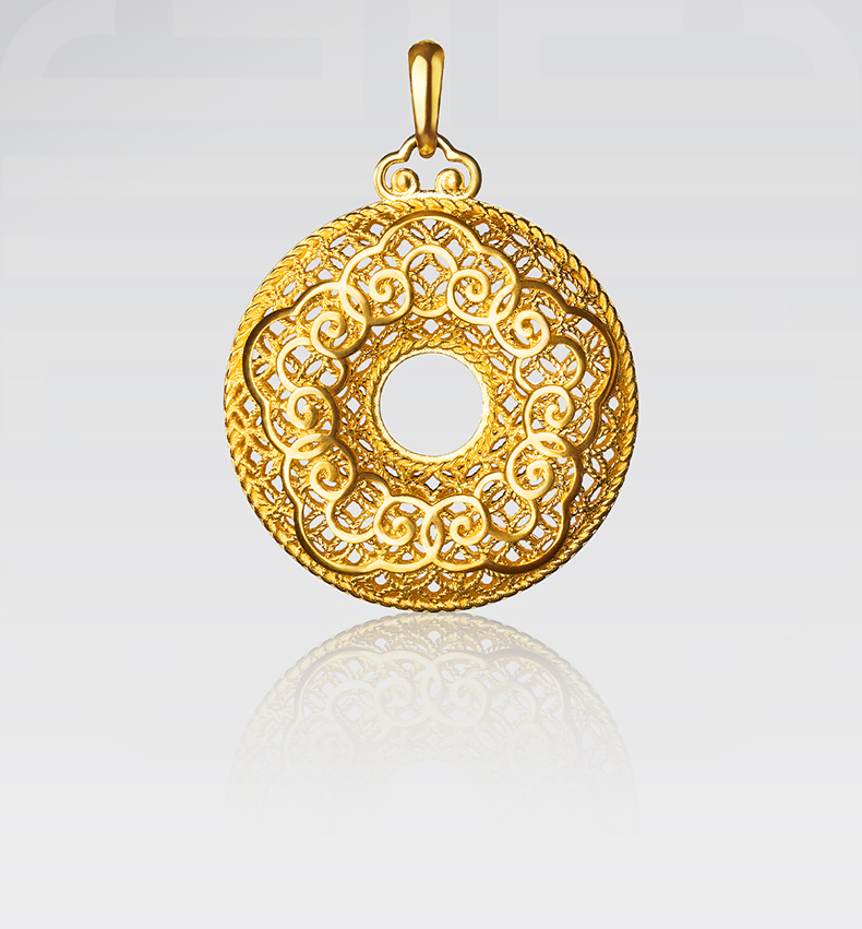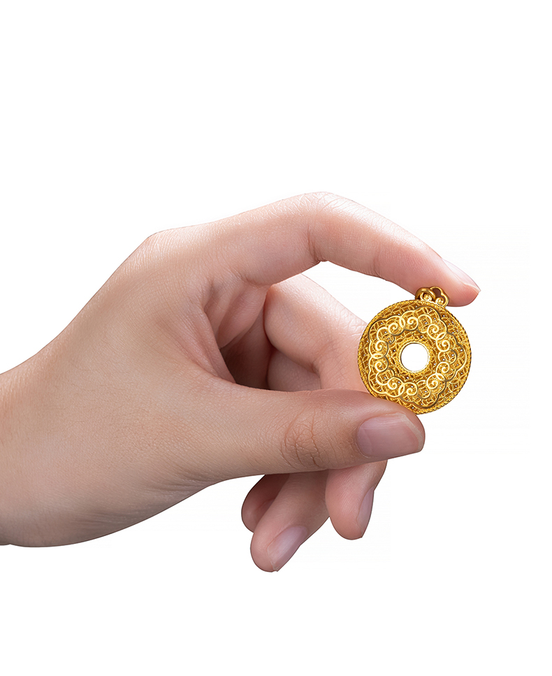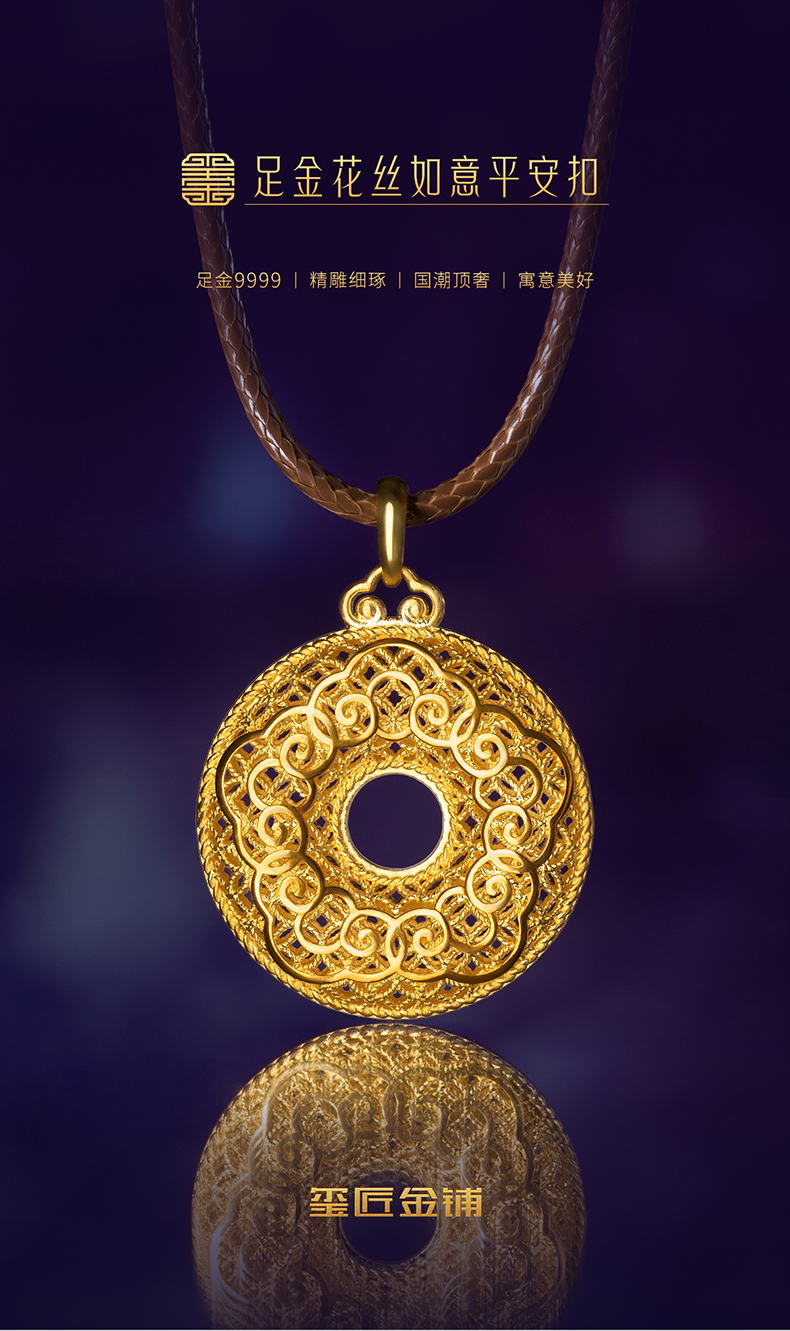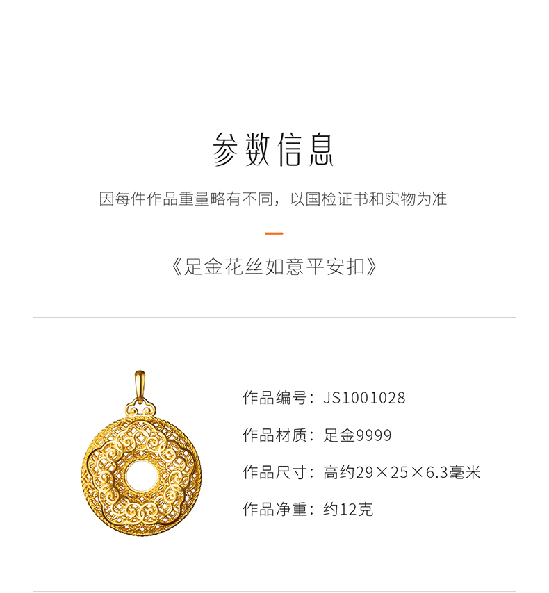 玺匠金铺《足金花丝如意平安扣》足金9999黄金吊坠 吉祥饰品挂件