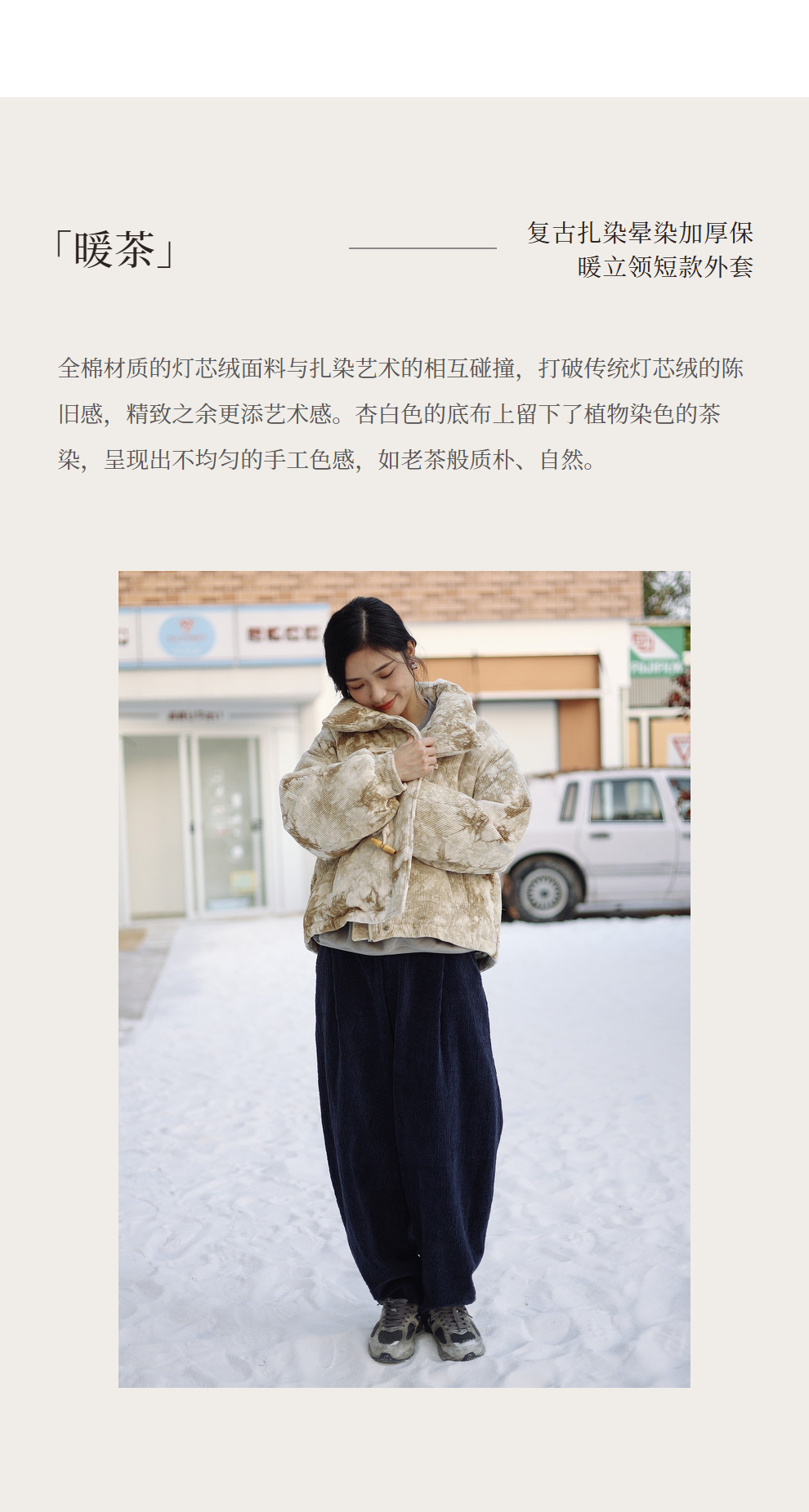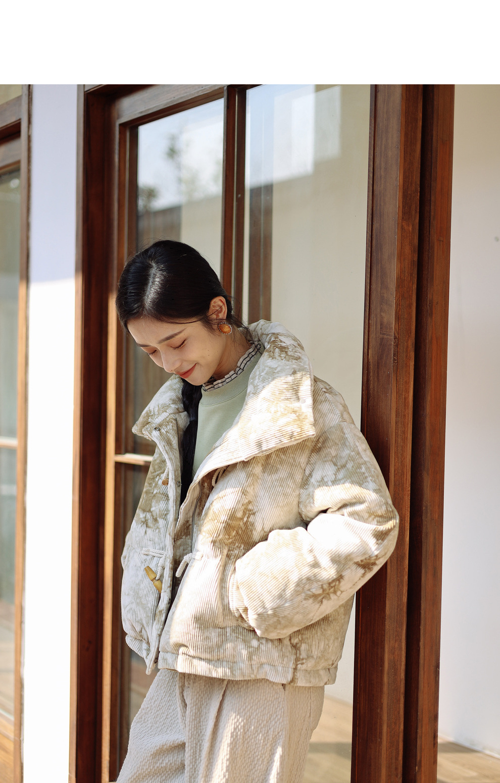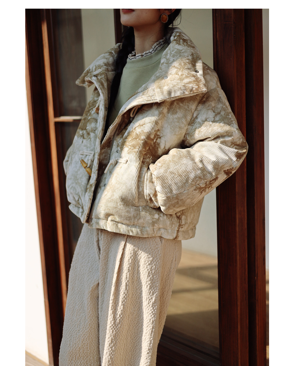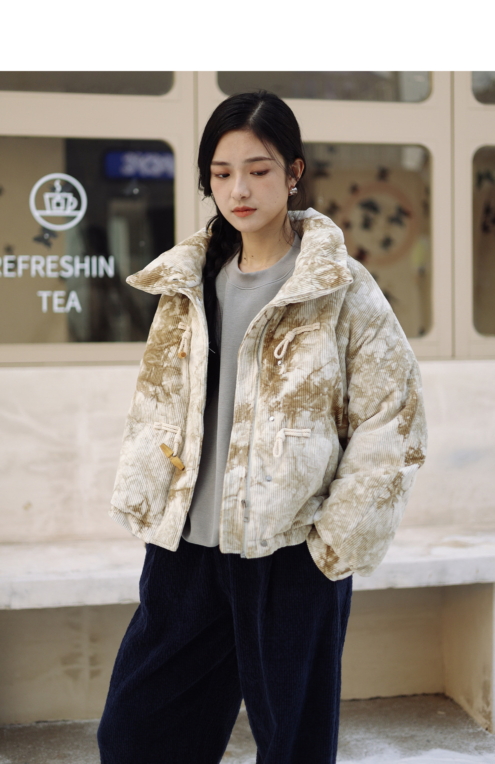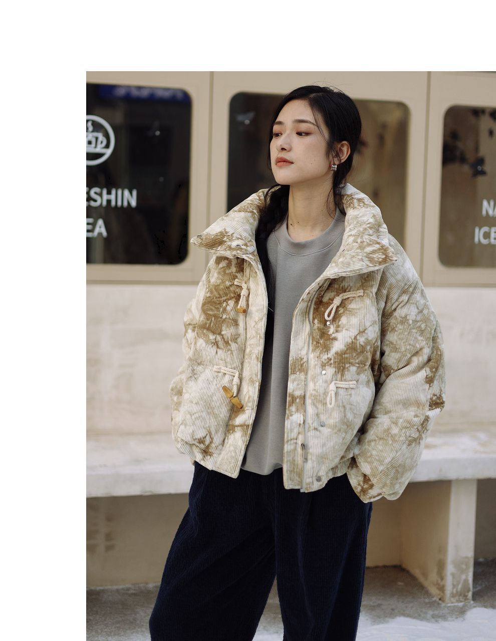 绽放984朵/2023冬新款文艺复古花色扎染晕染大立领防风加厚羽绒服