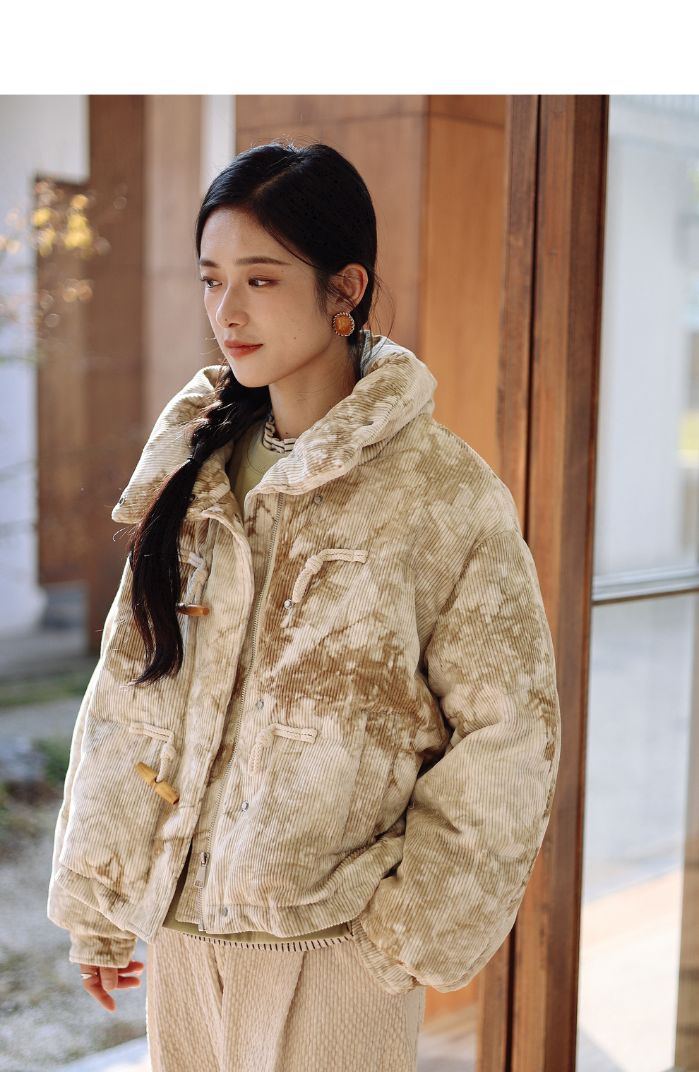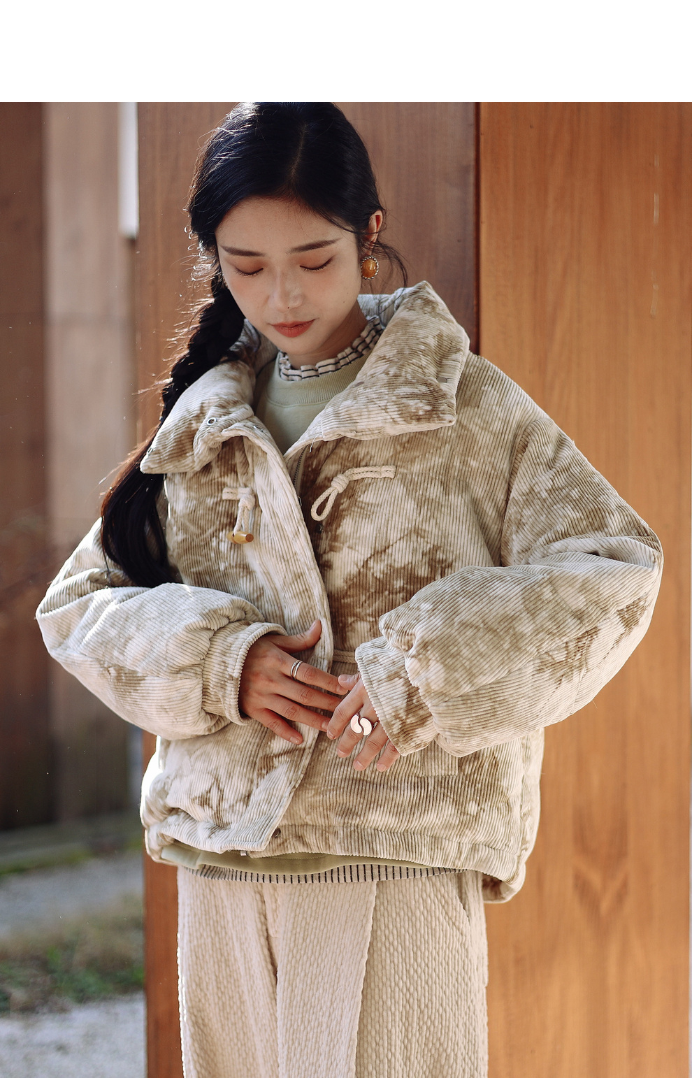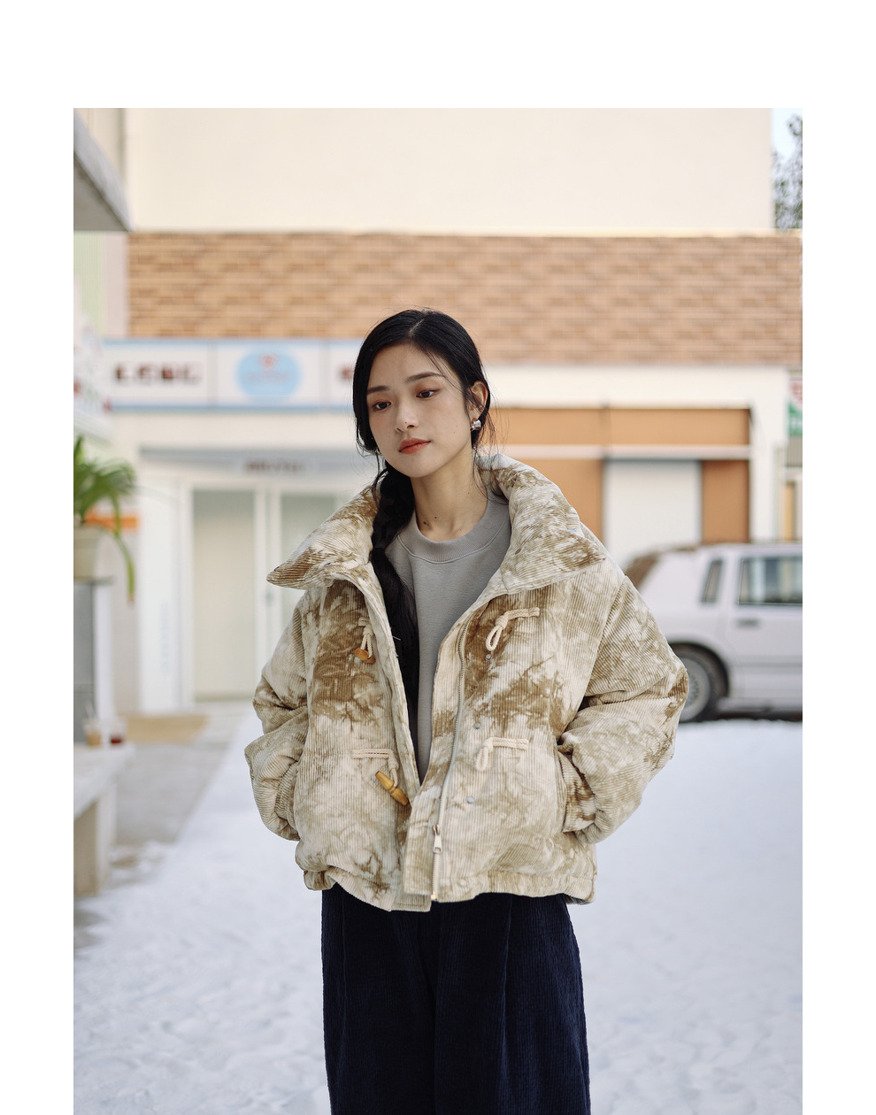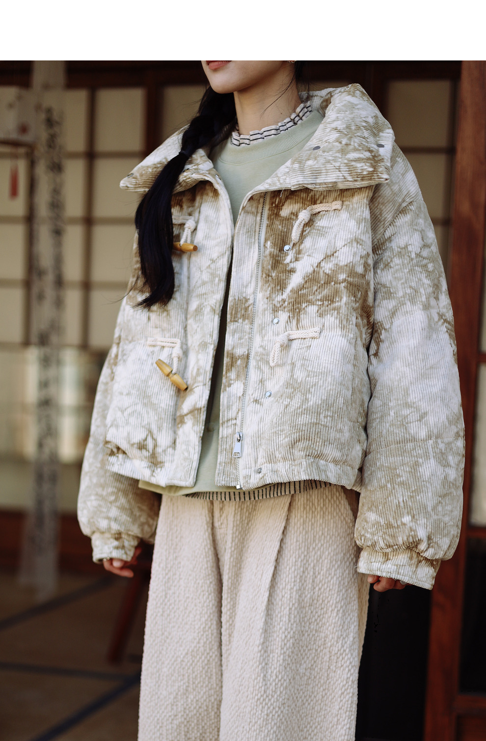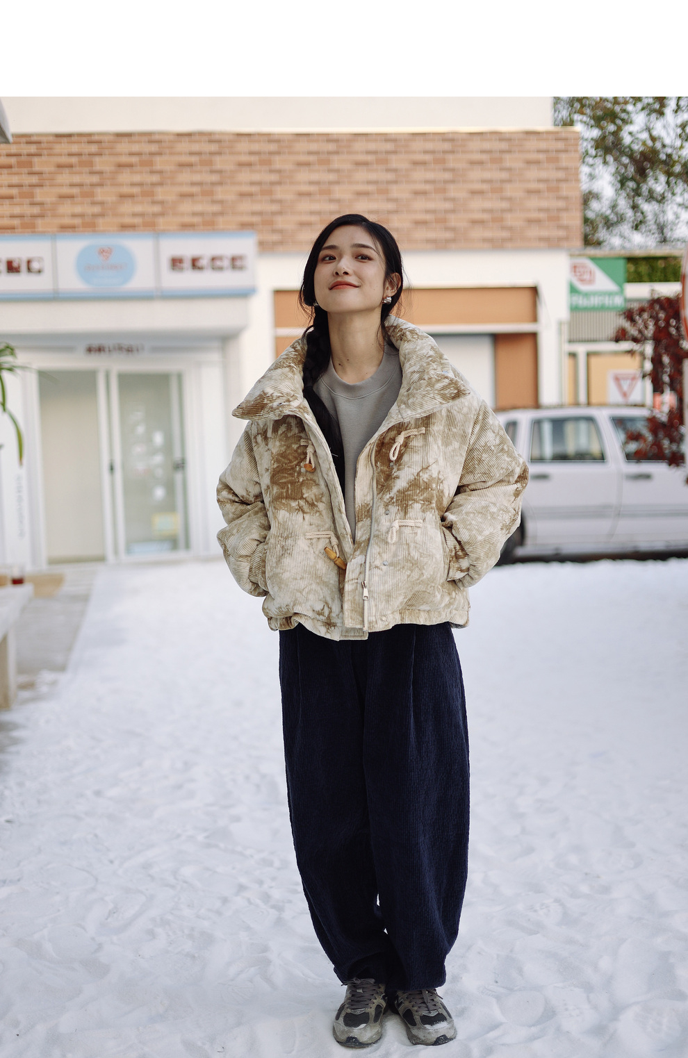 绽放984朵/2023冬新款文艺复古花色扎染晕染大立领防风加厚羽绒服