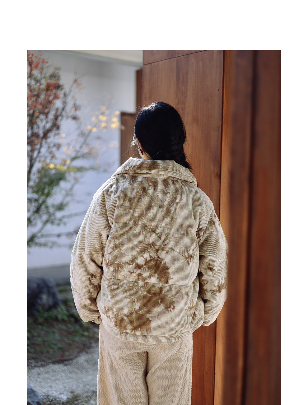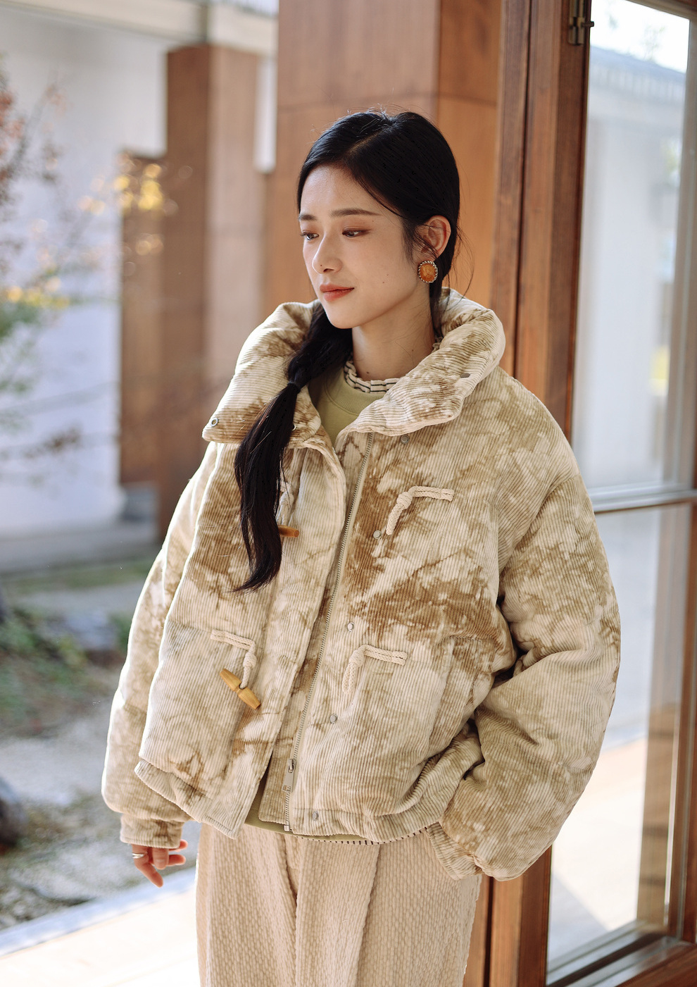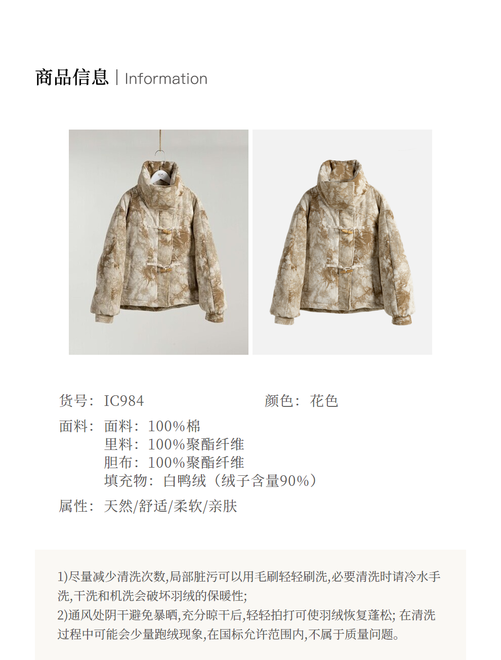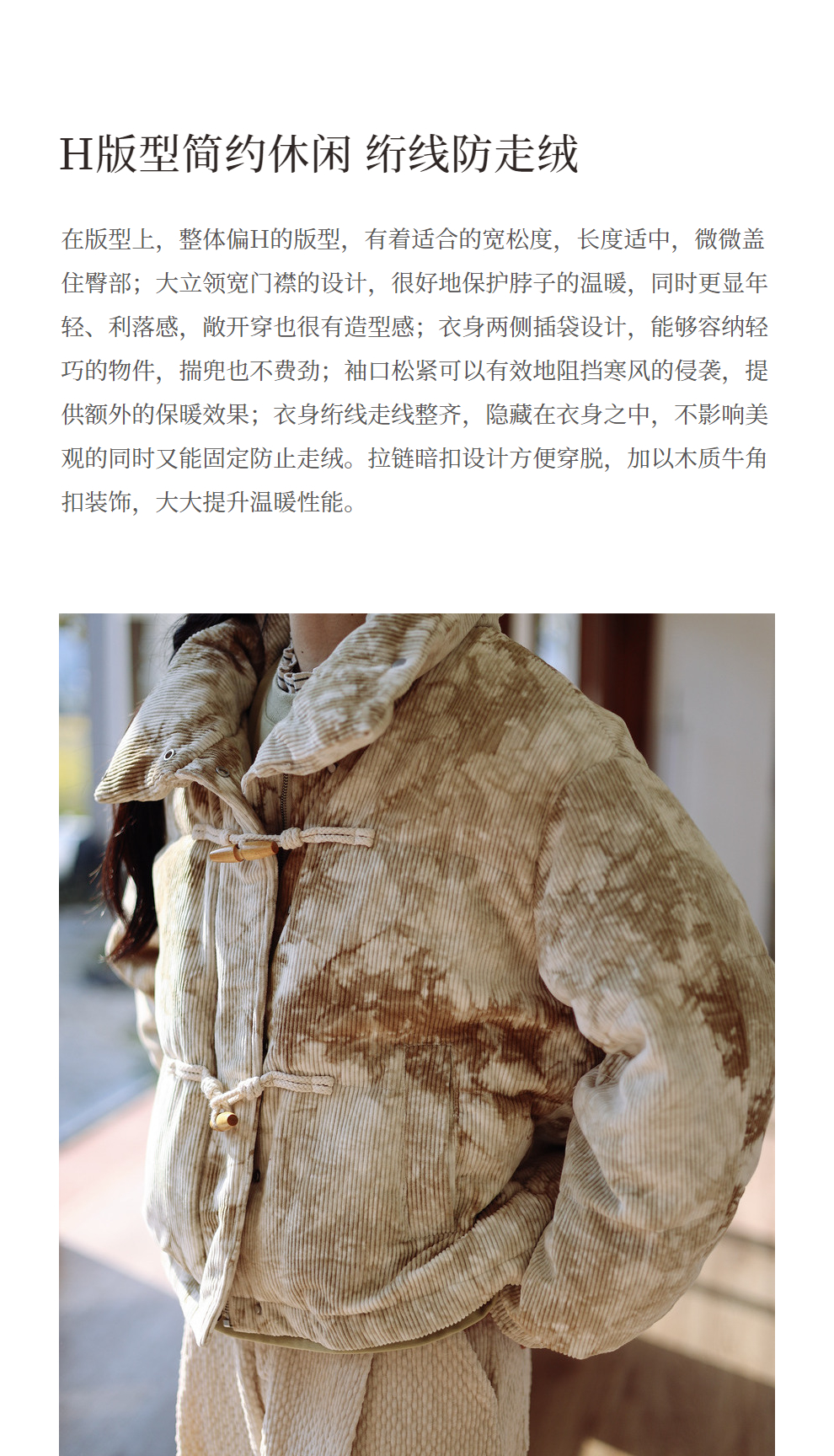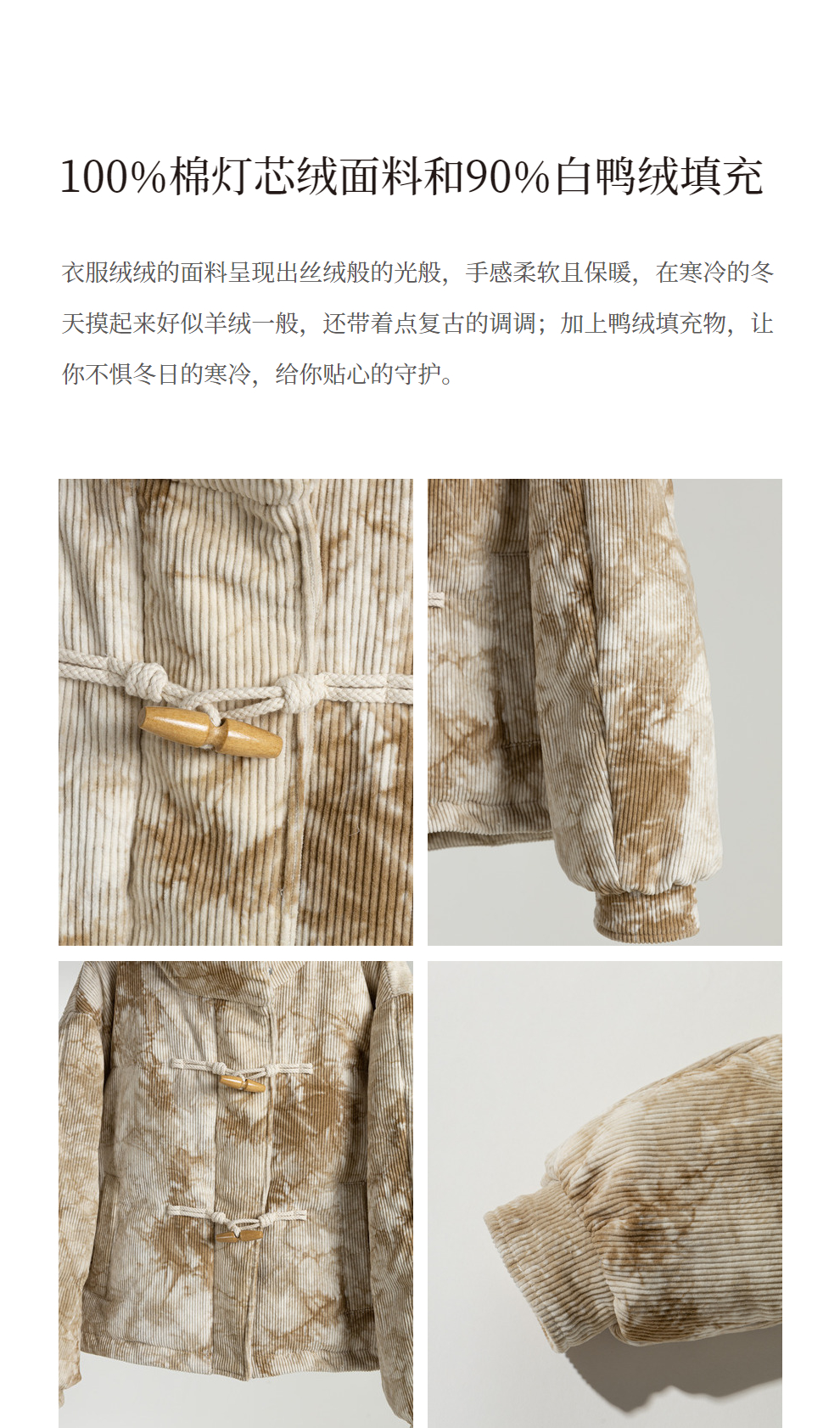 绽放984朵/2023冬新款文艺复古花色扎染晕染大立领防风加厚羽绒服