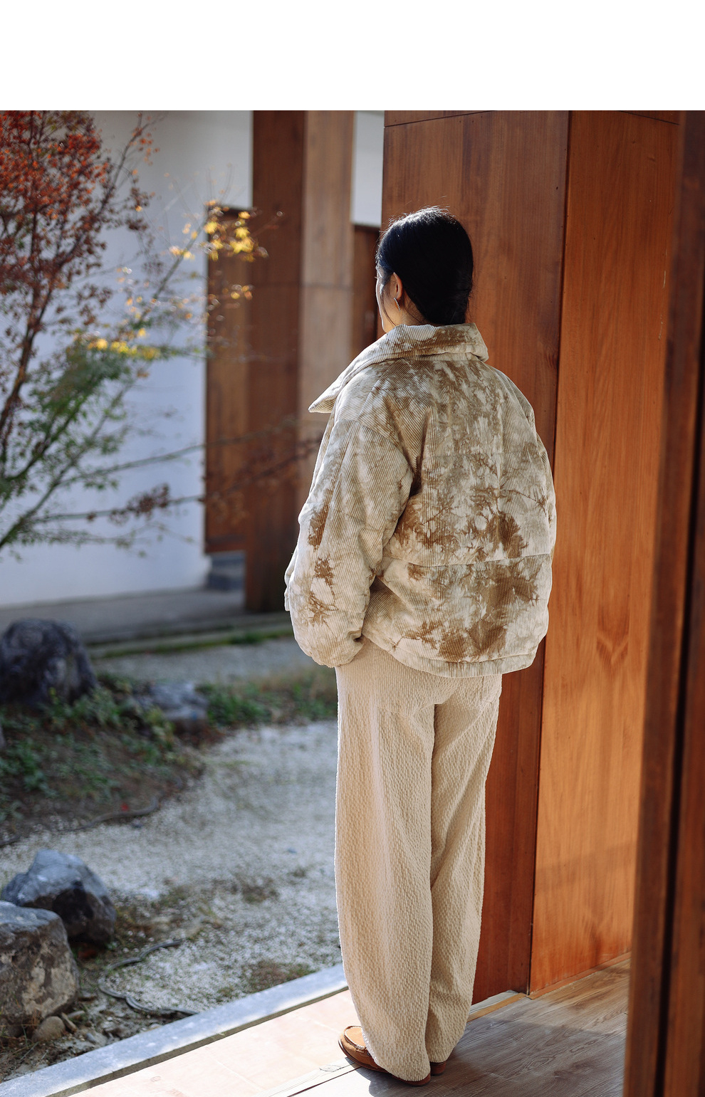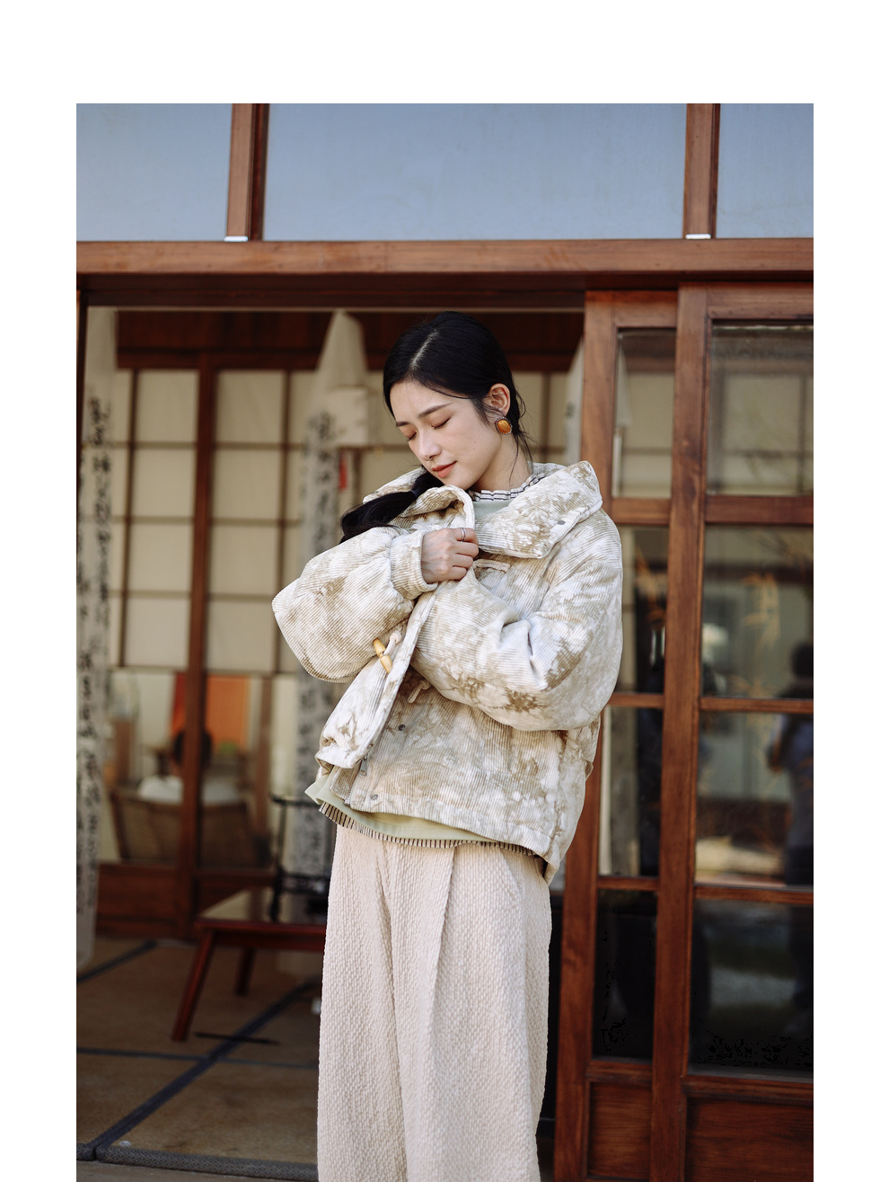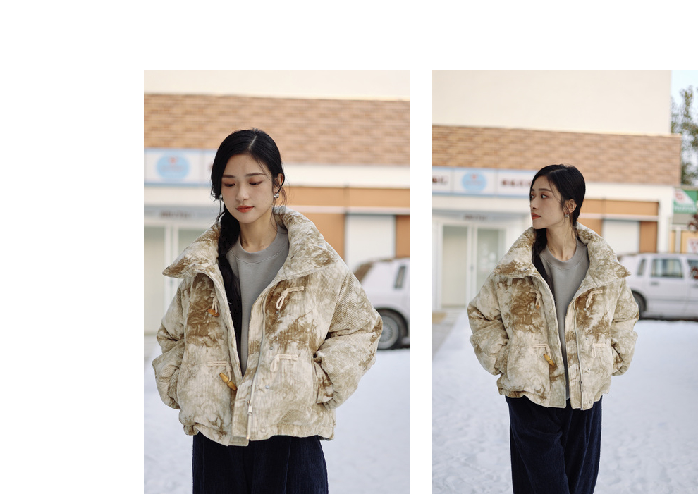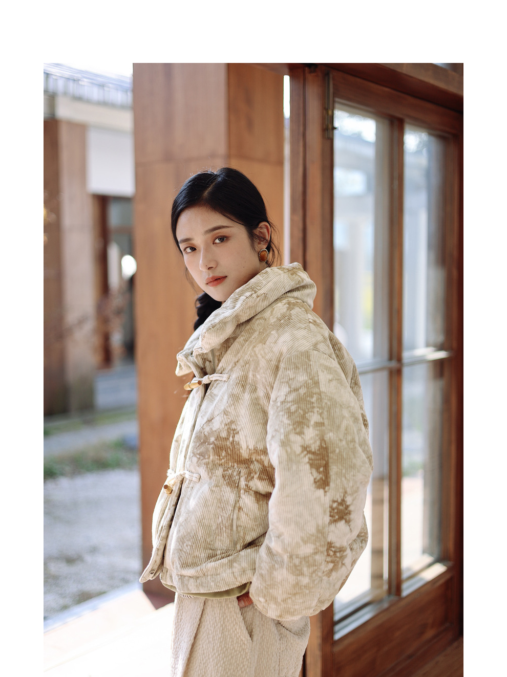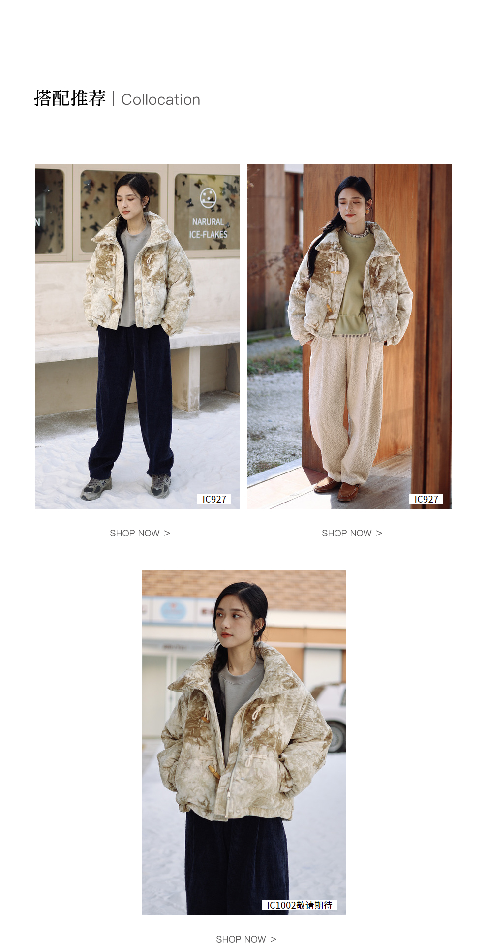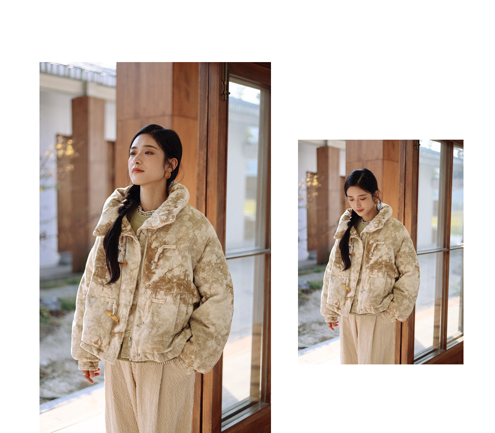 绽放984朵/2023冬新款文艺复古花色扎染晕染大立领防风加厚羽绒服