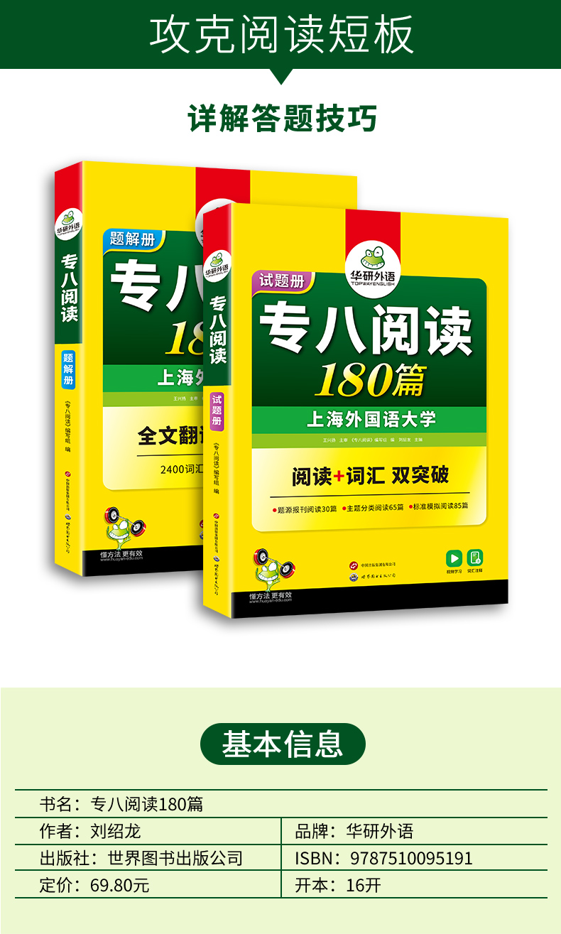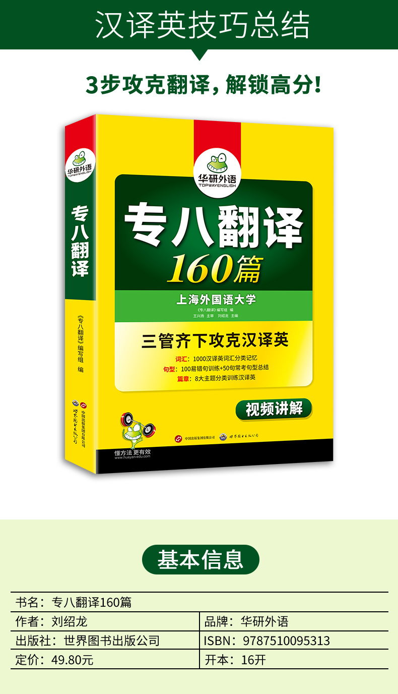 2.专八翻译160篇汉译英训练:20篇句句分析+50篇分类特训+90篇强化;