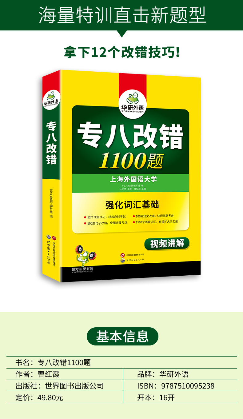 2. 归纳专八改错技巧,帮助考生熟悉命题规律;