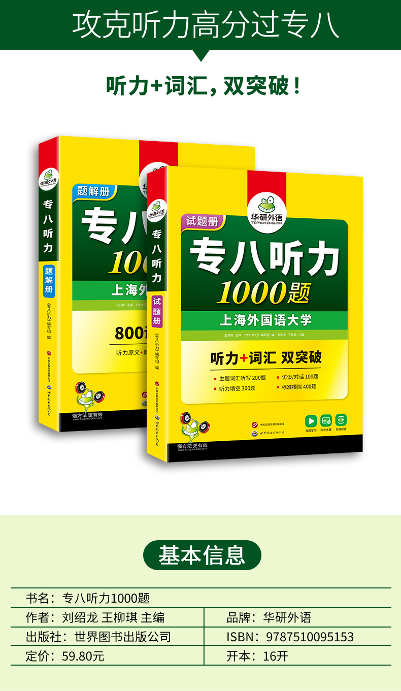 2. 根据专八新题型改革大纲编写,上海外国语大学名师审订,适用于专八听力新题型;