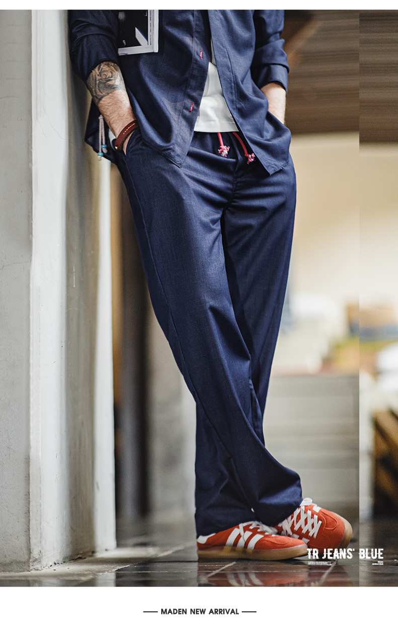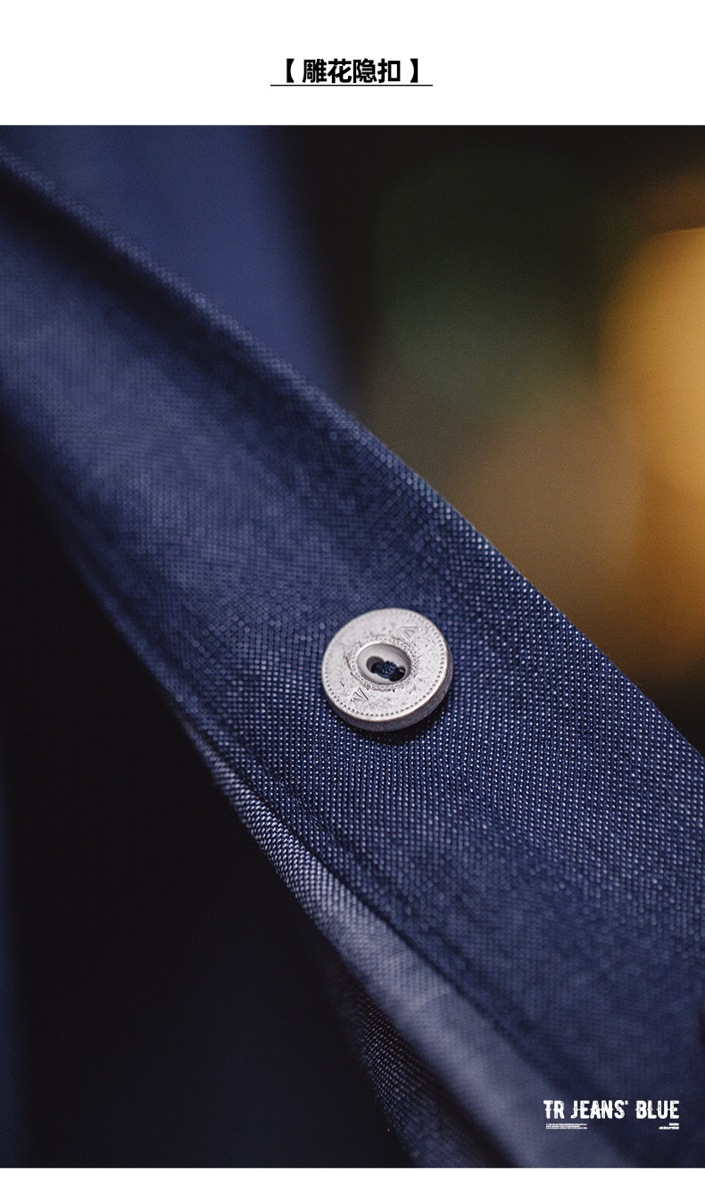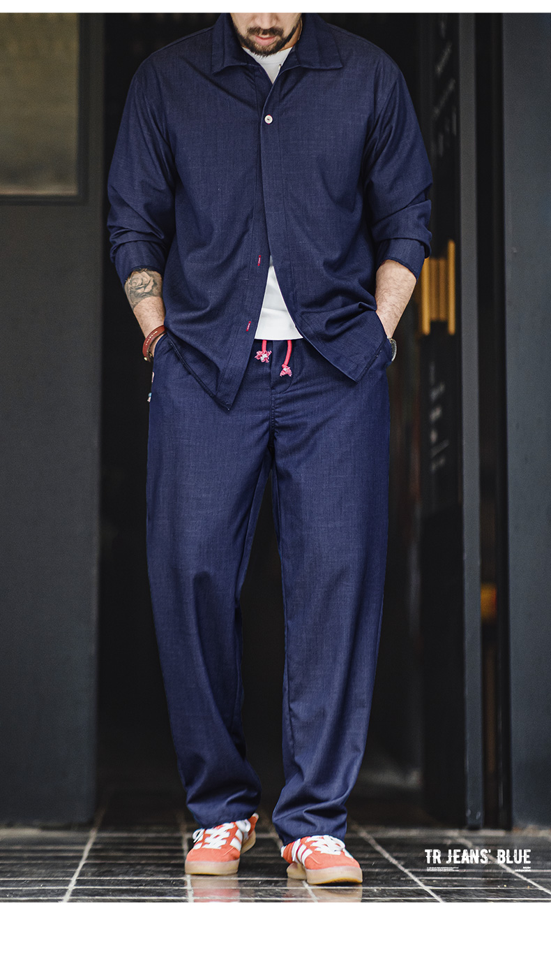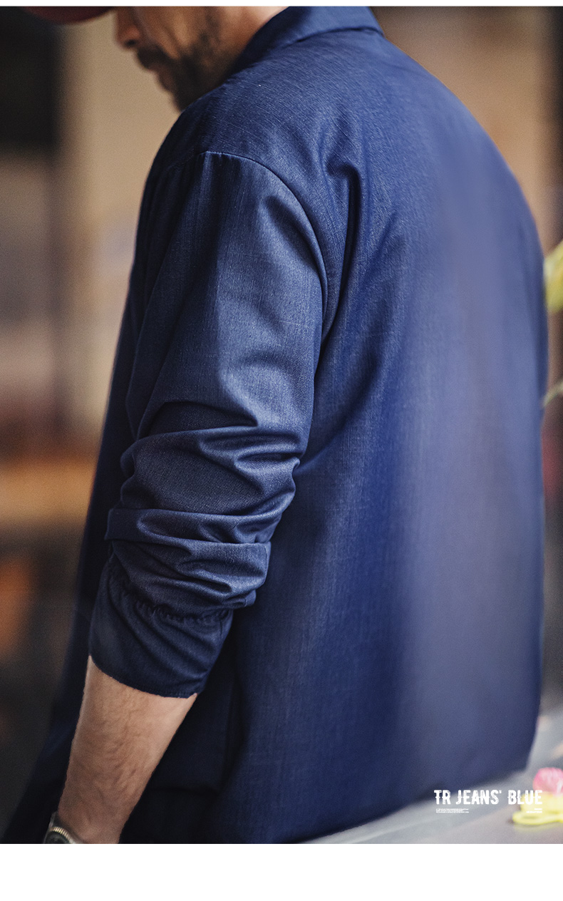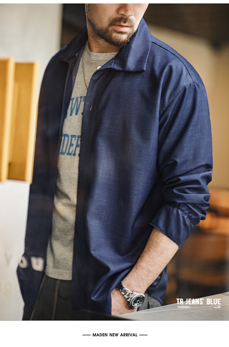 工装优选 美式复古仿天丝牛仔衬衫丹宁宽松翻领薄款长袖衬衣男春