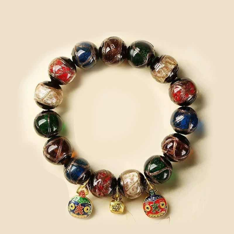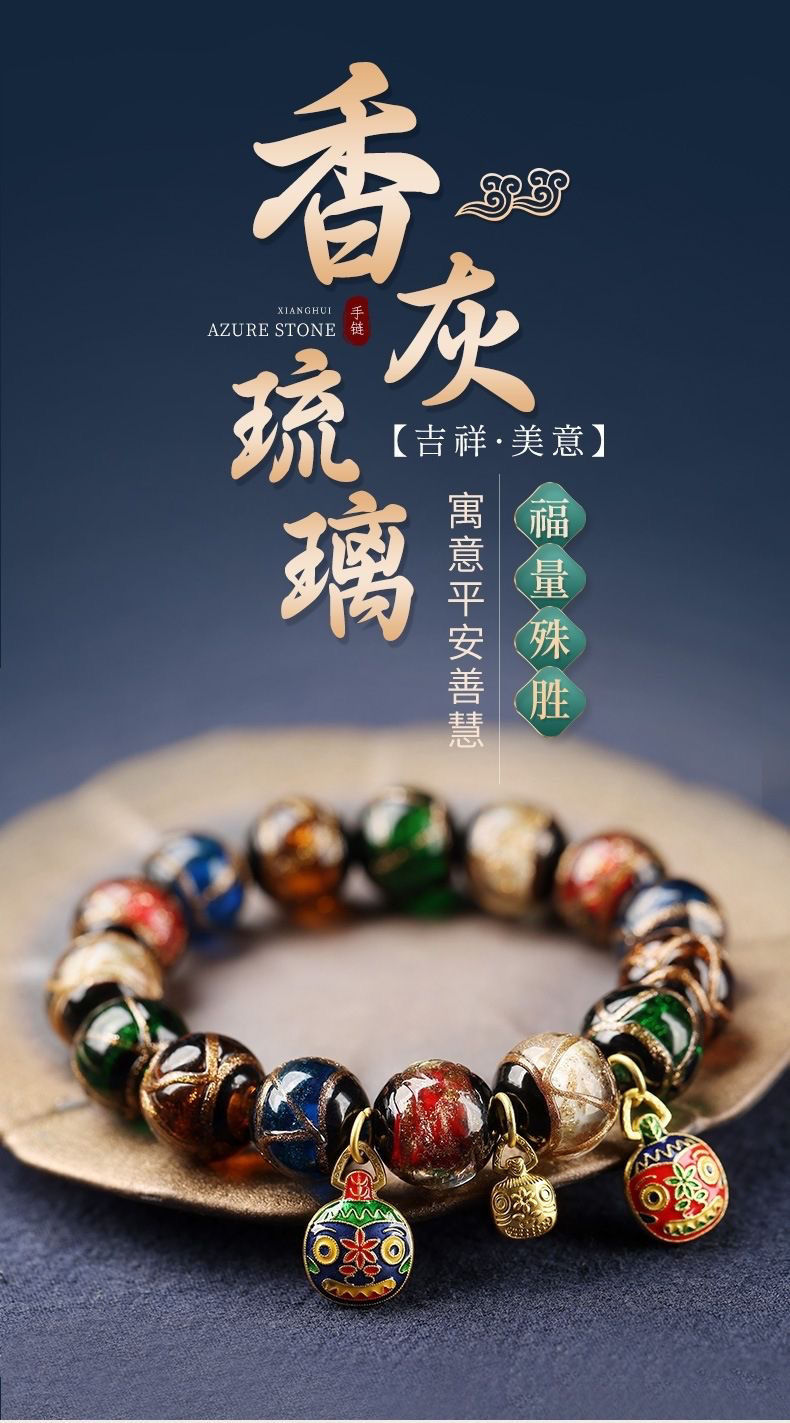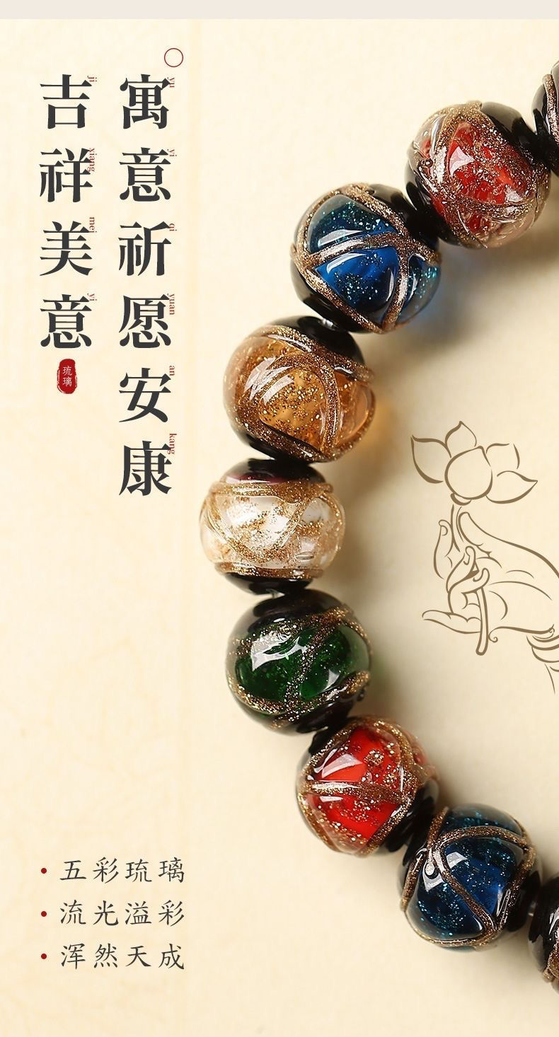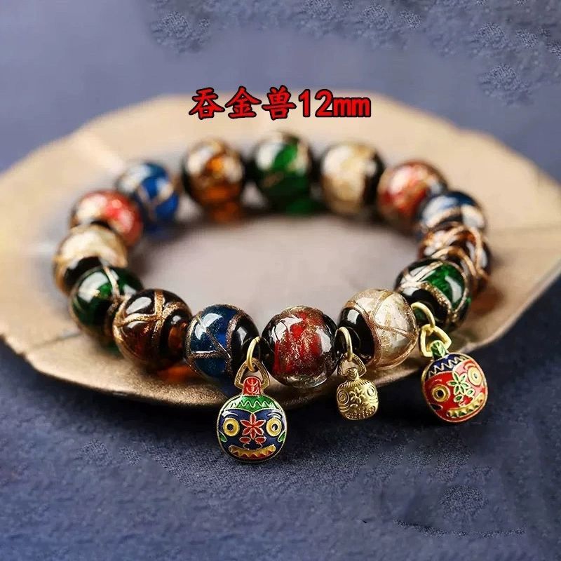 香灰琉璃手串女款五彩多宝吞金兽佛珠本命年情侣手链