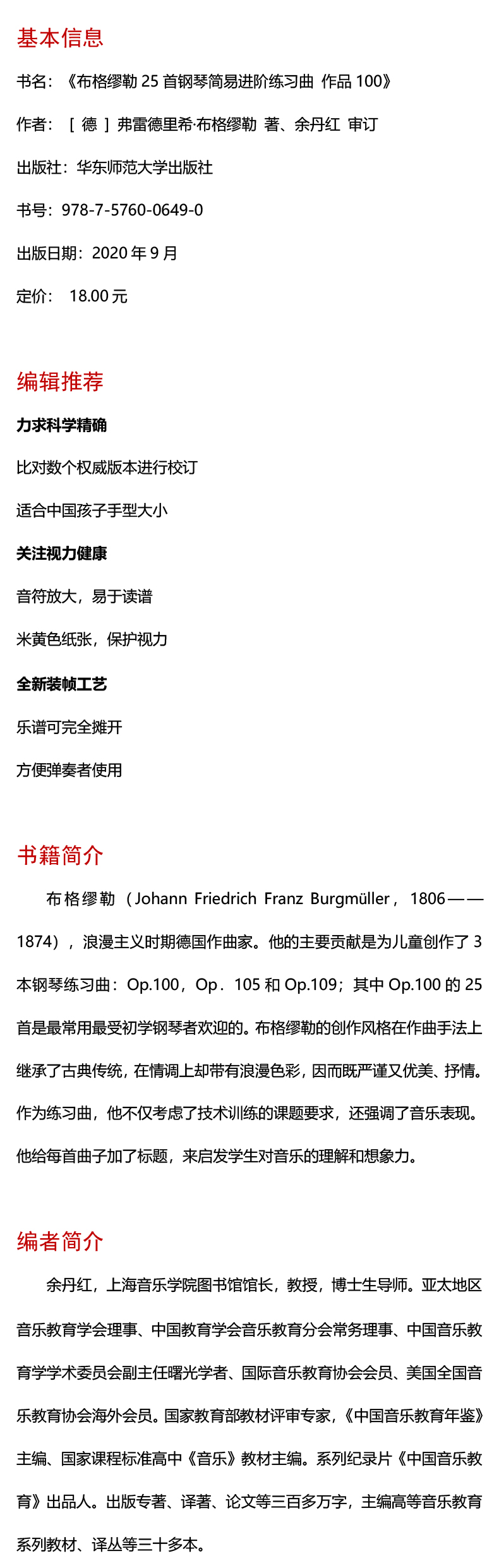 布格缪勒25首钢琴简易进阶练习曲 作品100 音悦人生 钢琴教学系列乐谱 钢琴学习入门乐谱 正版 华东师范大学出版社