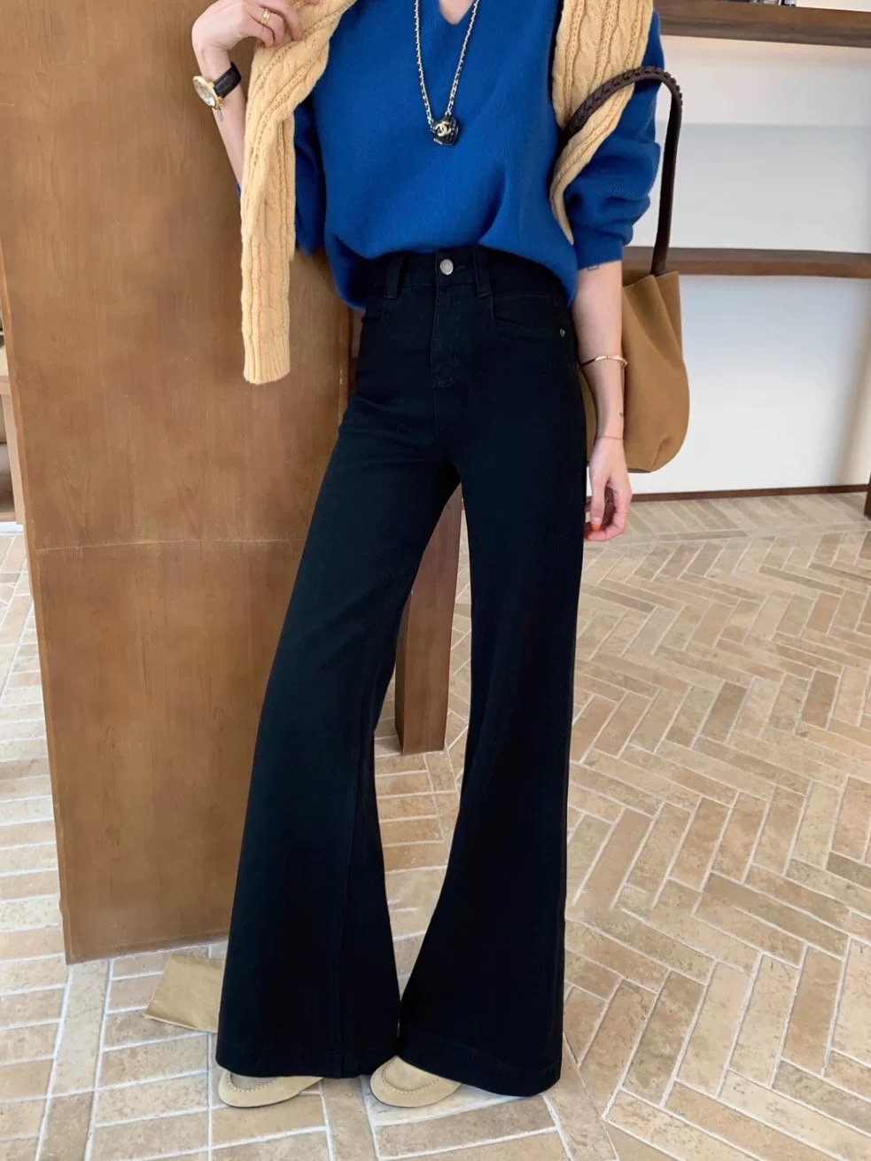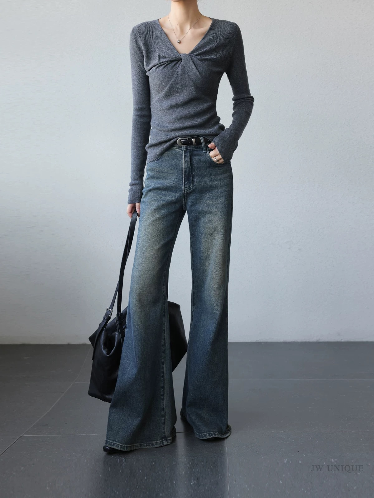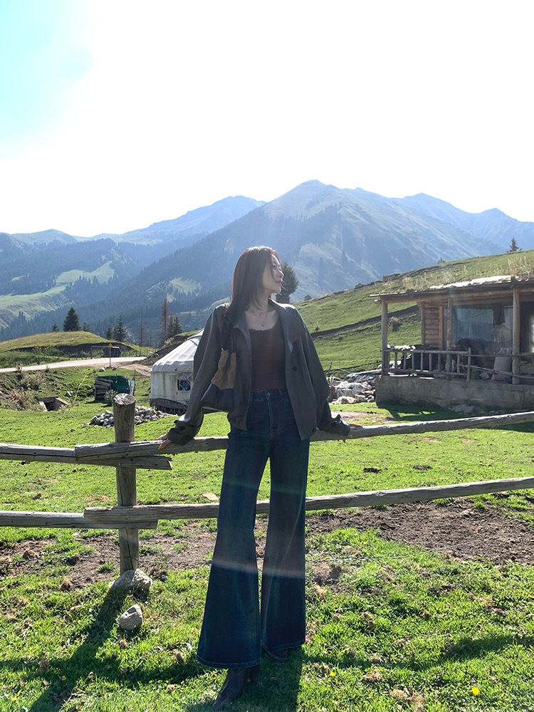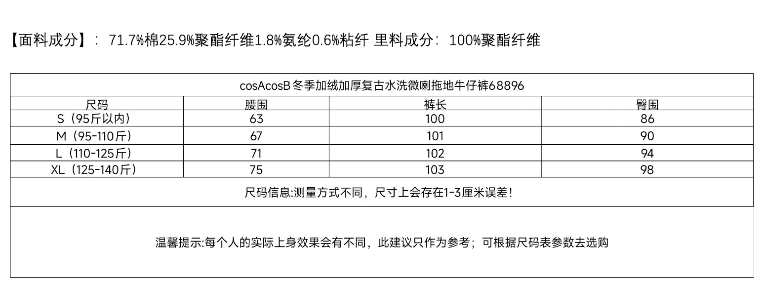 cosAcosB冬季加绒加厚复古水洗微喇拖地牛仔裤68896(下单3-5天发货)